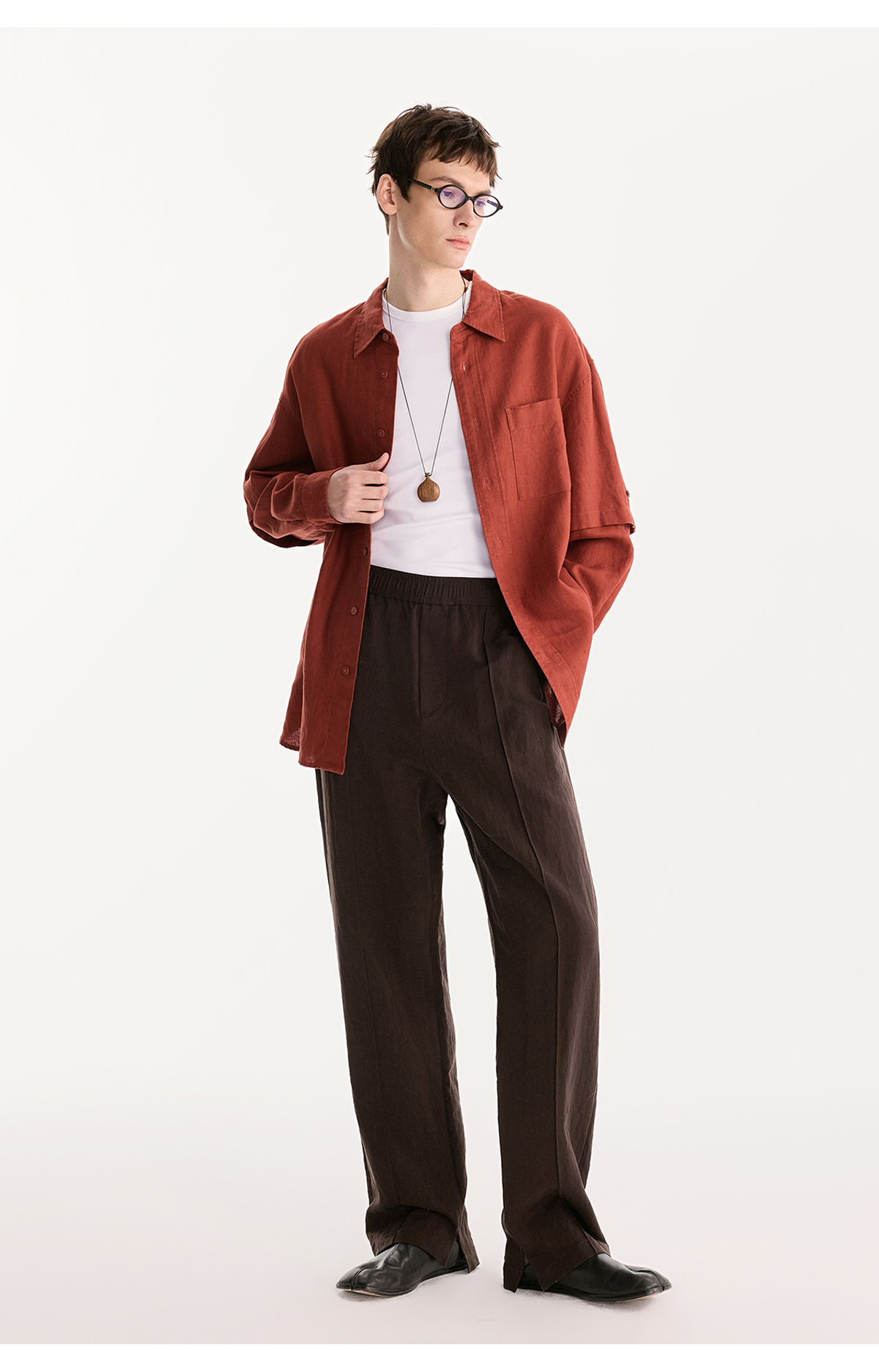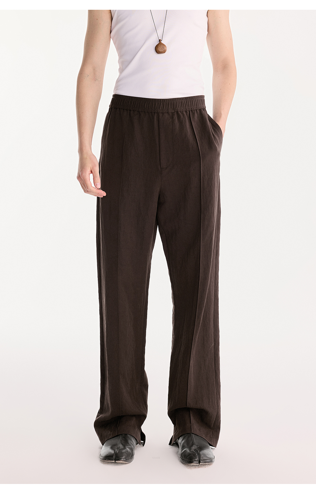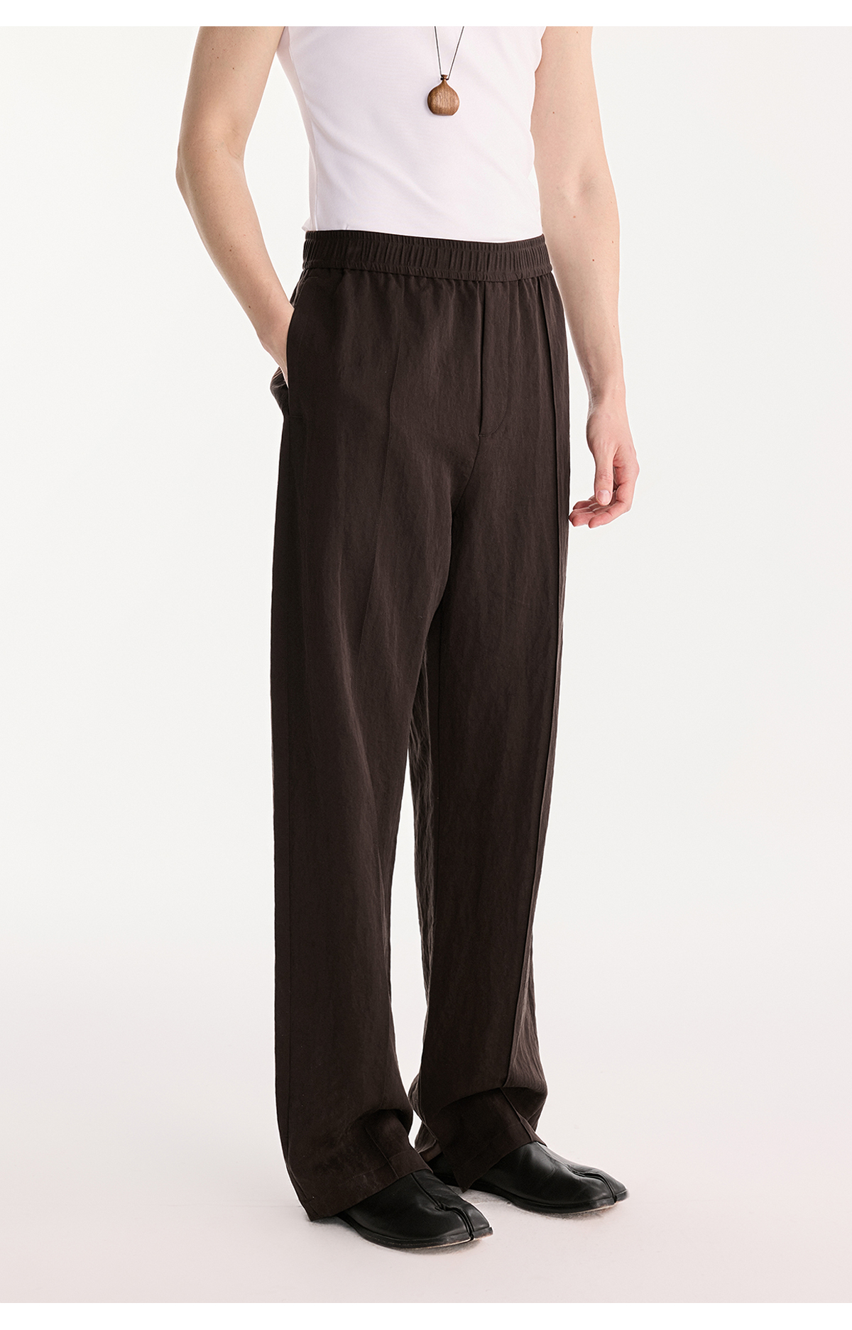 棉仓3621018003-【深咖情节】松弛感松紧腰锥形休闲长裤