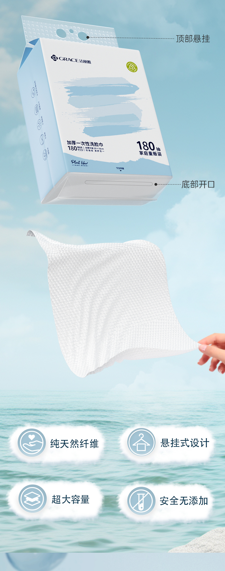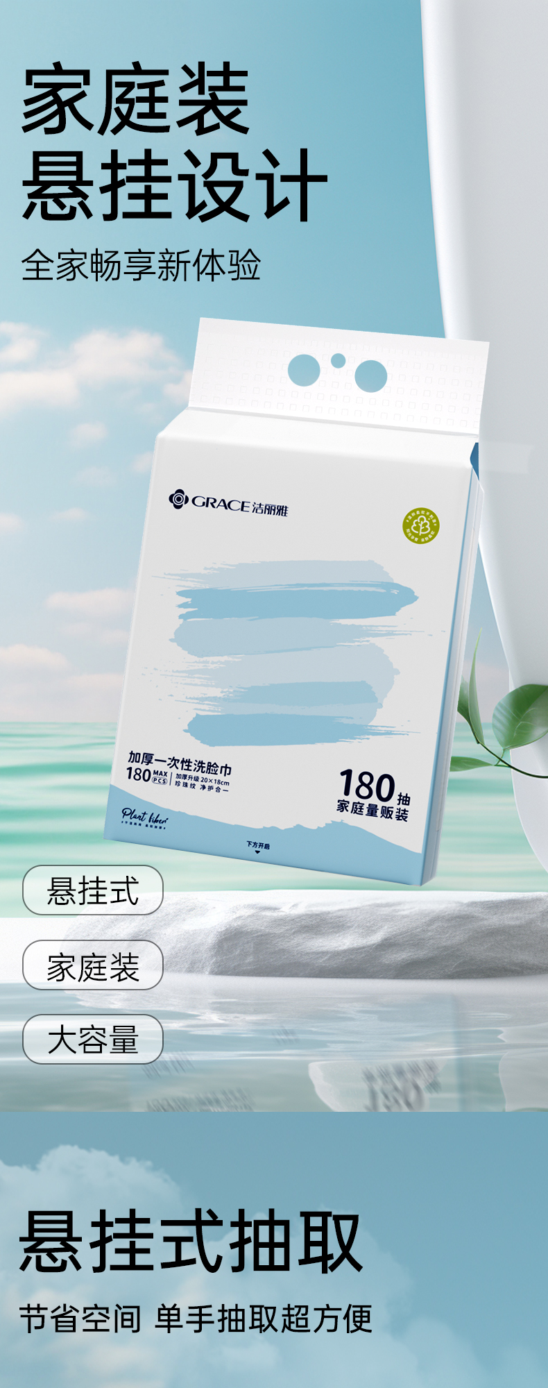 【家庭装180抽】悬挂抽取式 加厚一次性洗脸巾 送挂钩#grace