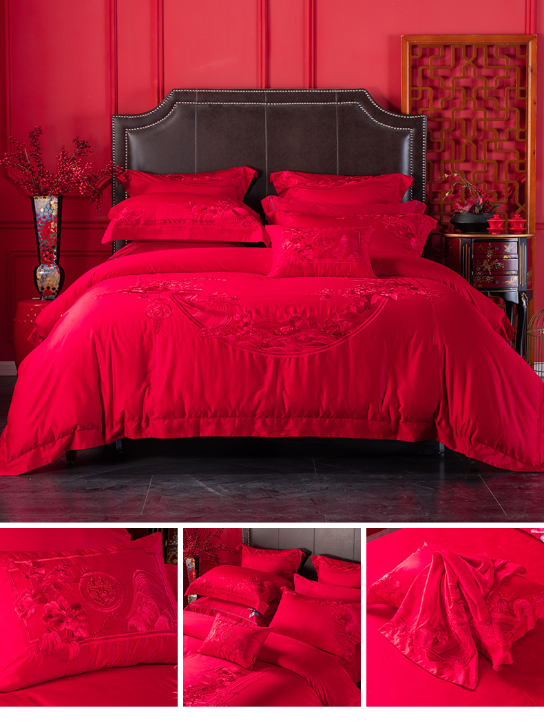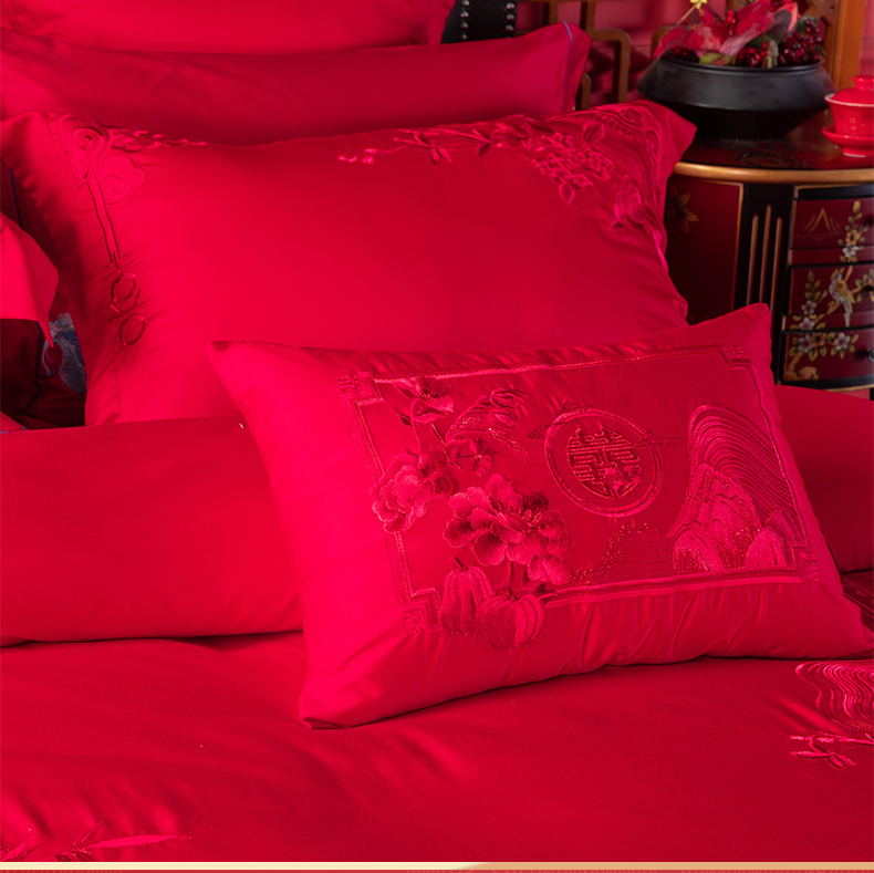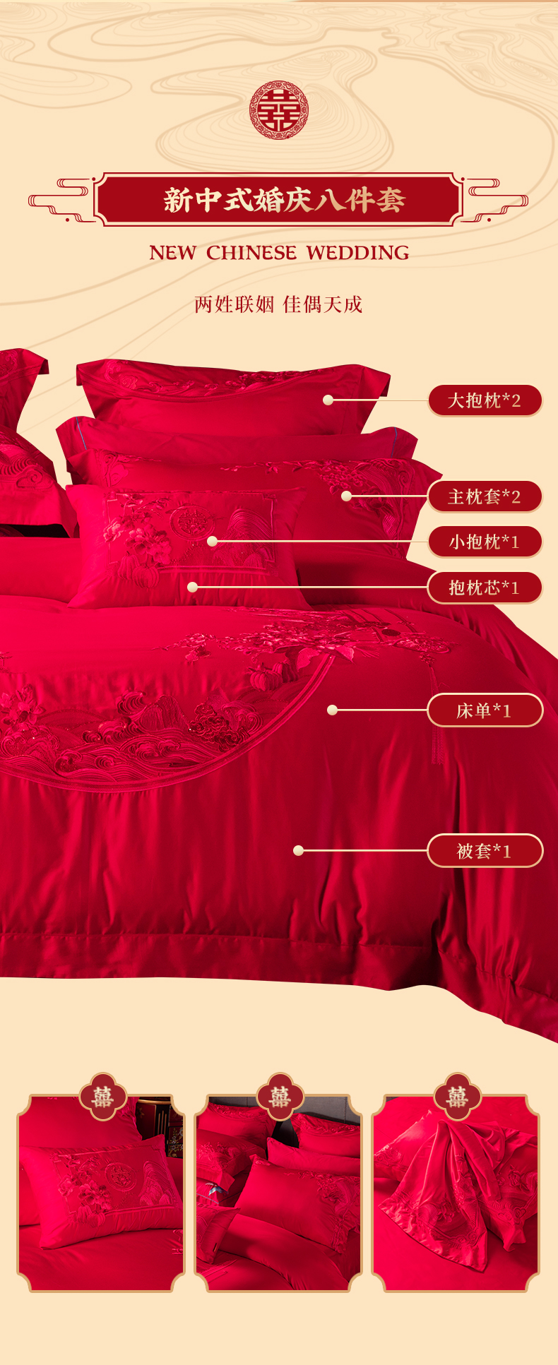 多喜爱 喜玫瑰婚庆新绒棉缎纹床上用品八件套 美满人生(红) cs