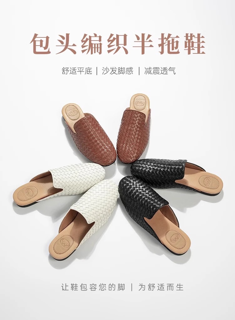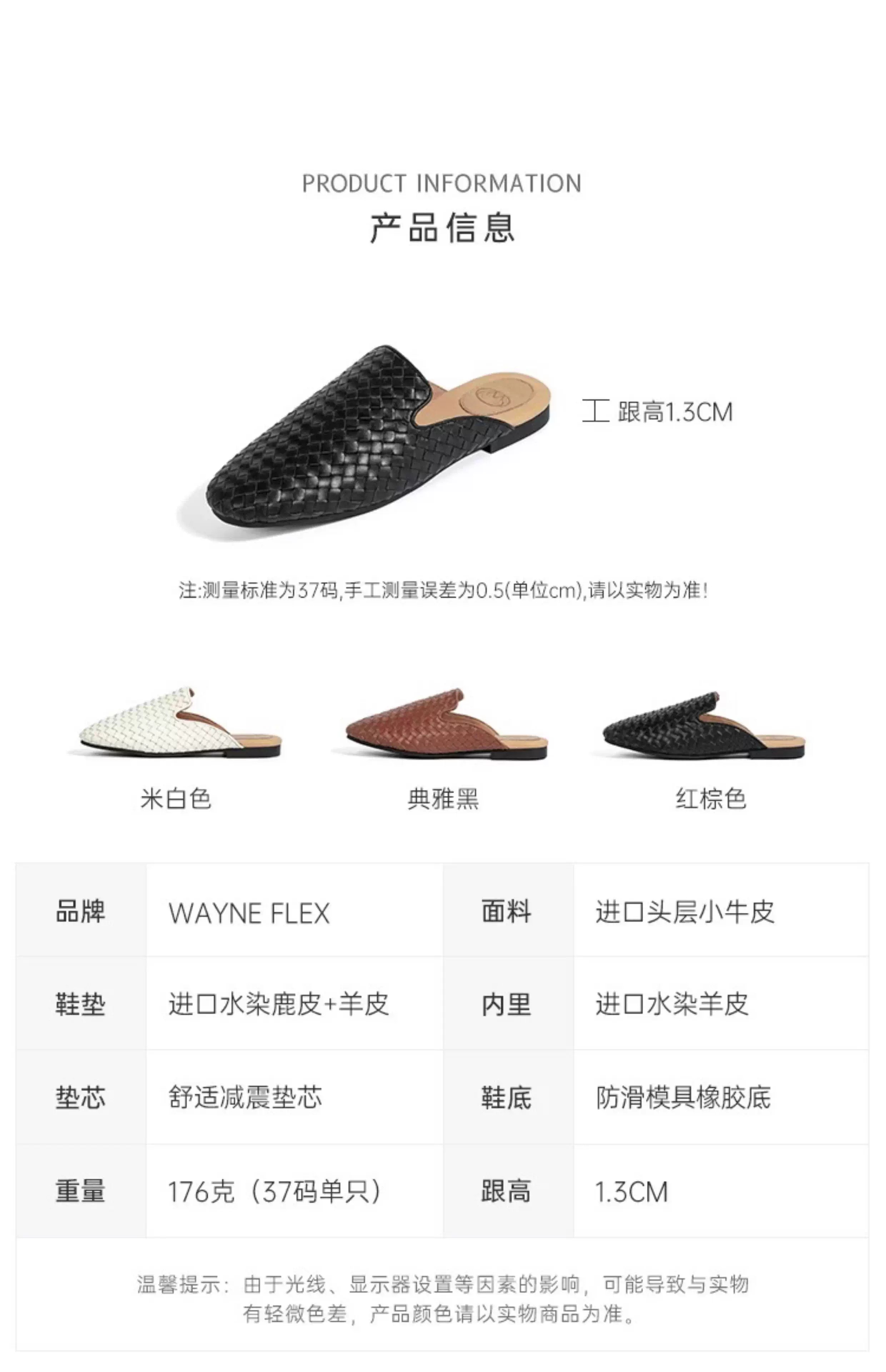 韦恩WAYNE FLEX包头编织半拖鞋平底穆勒鞋一脚蹬时尚半凉拖女WF5082