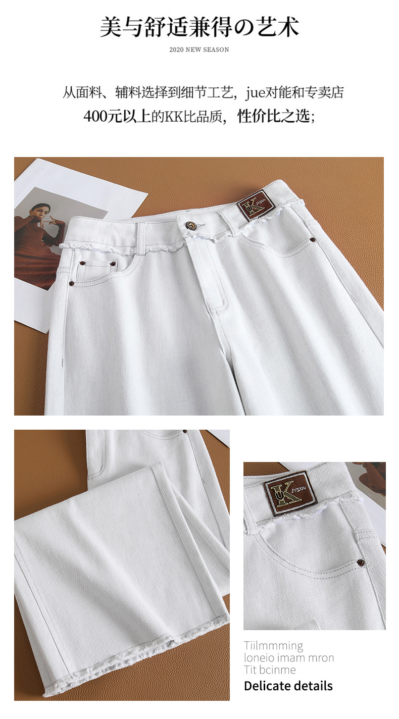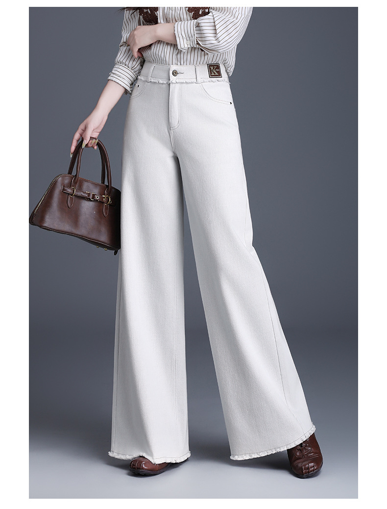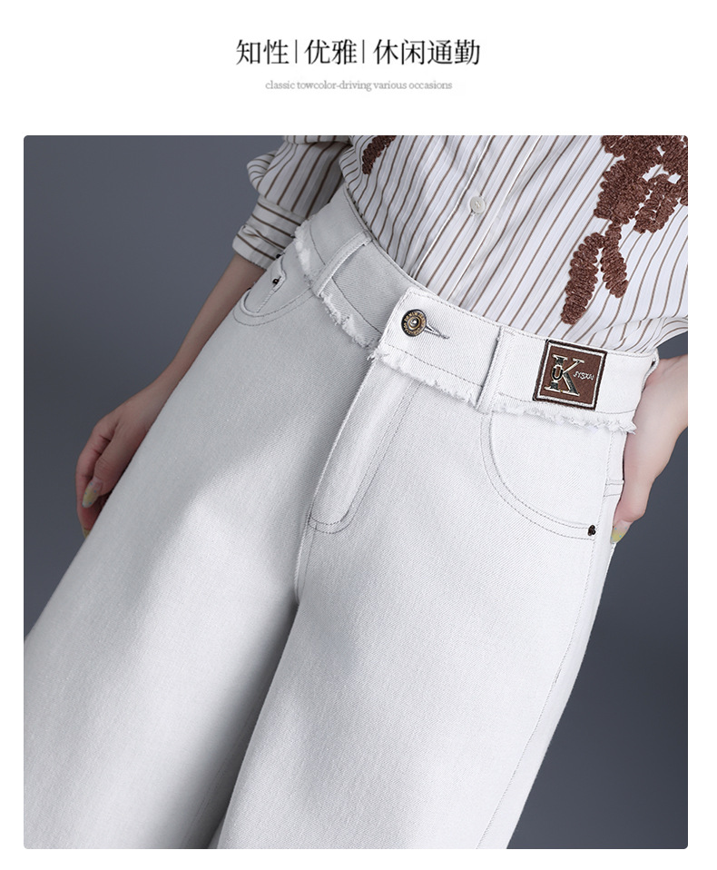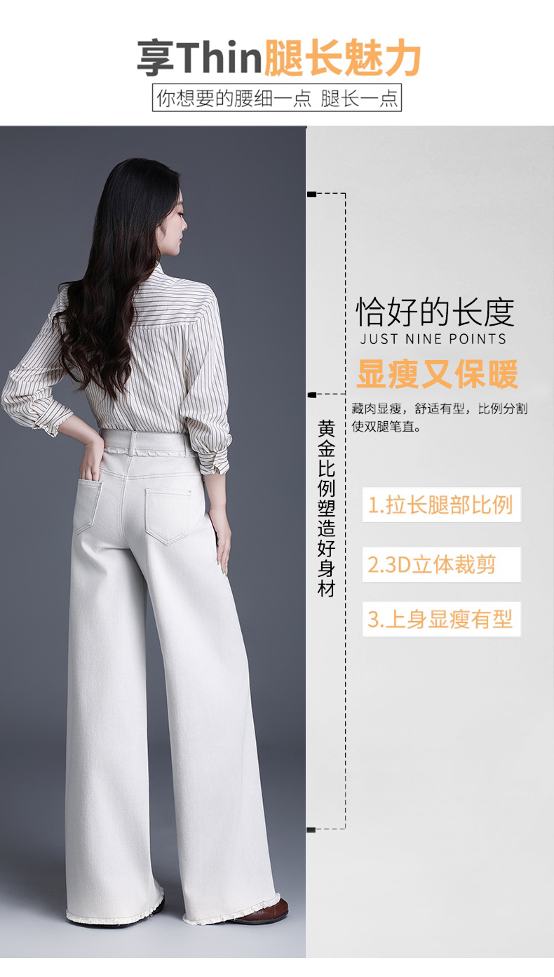 YM 9843毛边拼接时髦减龄牛仔阔腿裤加绒保暖高腰垂感裤 商品图4