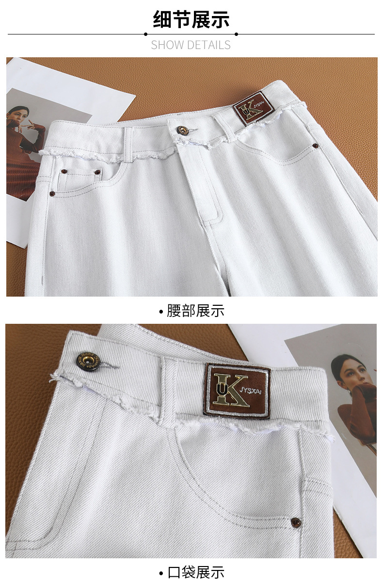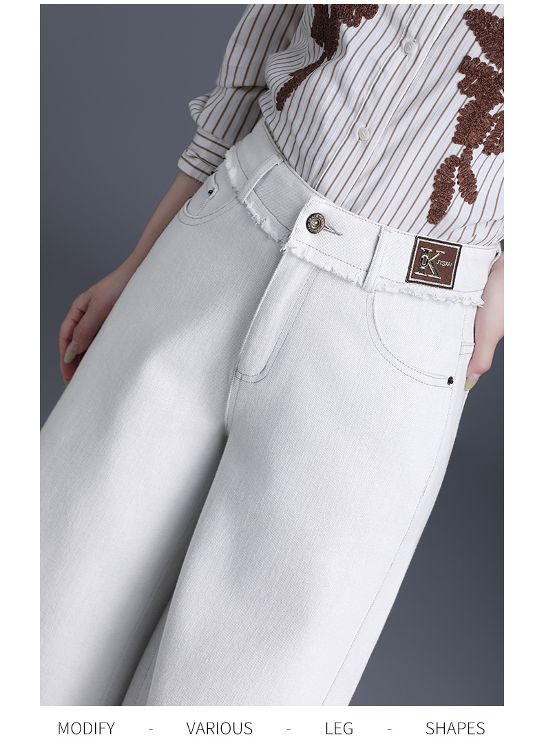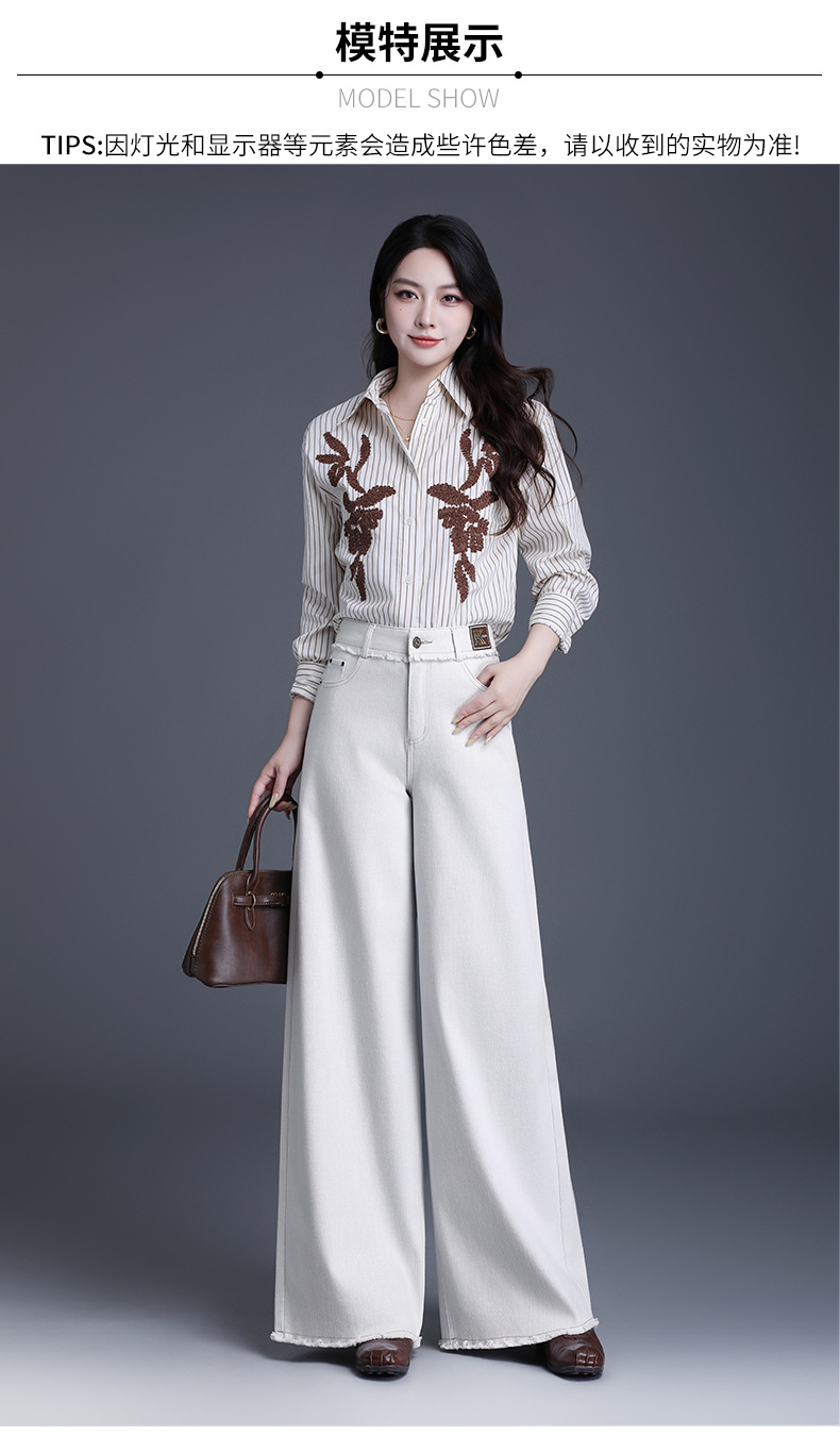 YM 9843毛边拼接时髦减龄牛仔阔腿裤加绒保暖高腰垂感裤 商品图4
