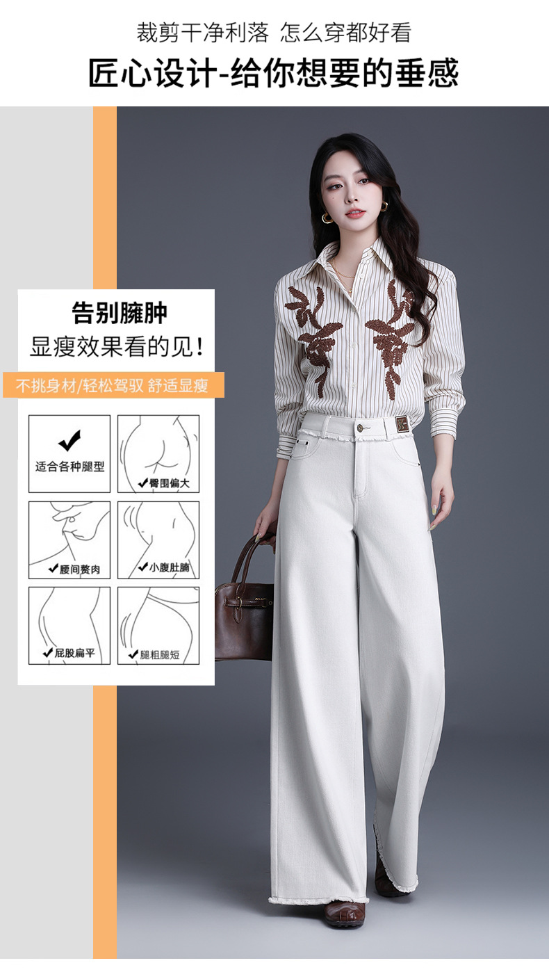 YM 9843毛边拼接时髦减龄牛仔阔腿裤加绒保暖高腰垂感裤 商品图0
