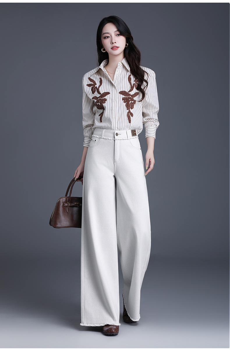 YM 9843毛边拼接时髦减龄牛仔阔腿裤加绒保暖高腰垂感裤