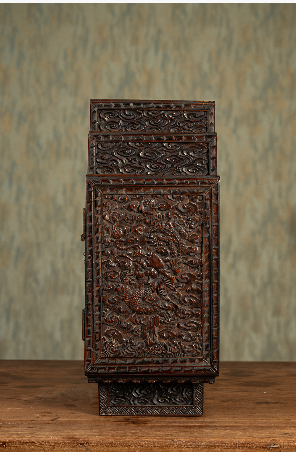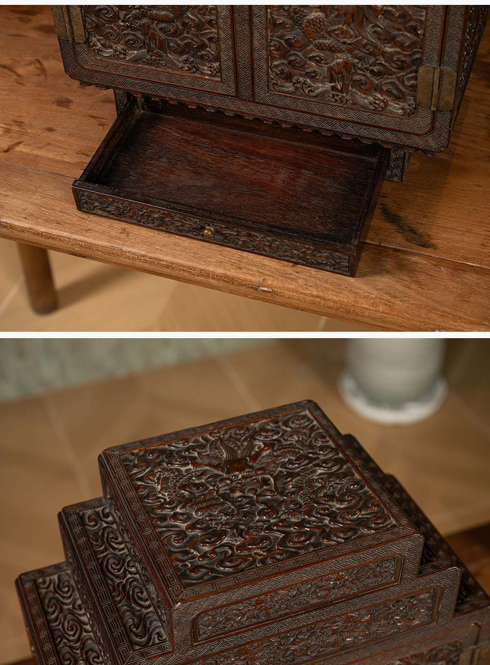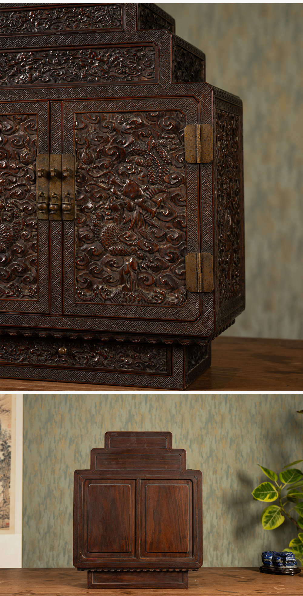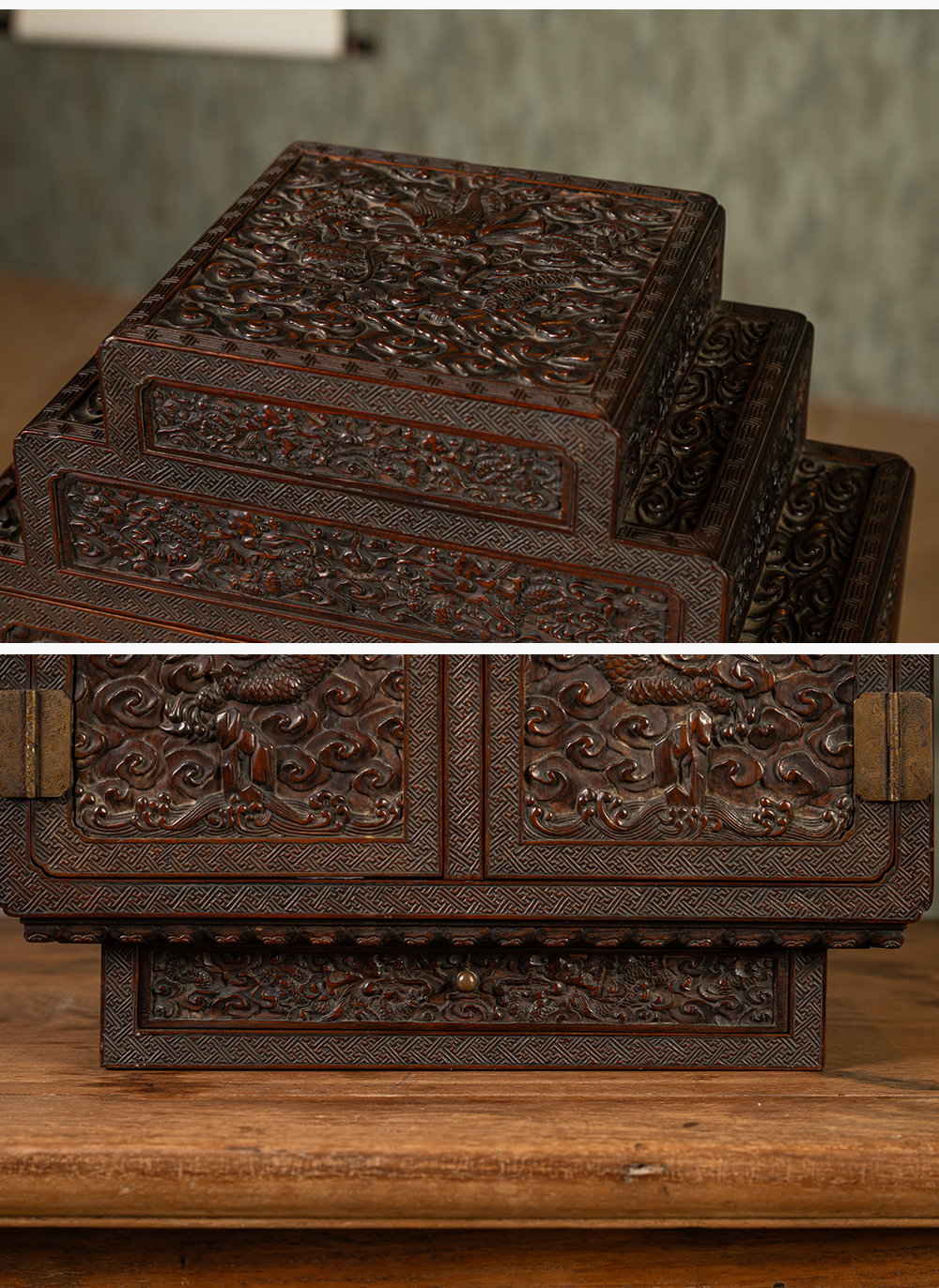 二十世纪 黄花梨卷草纹三弯腿带托泥方香几(一对)