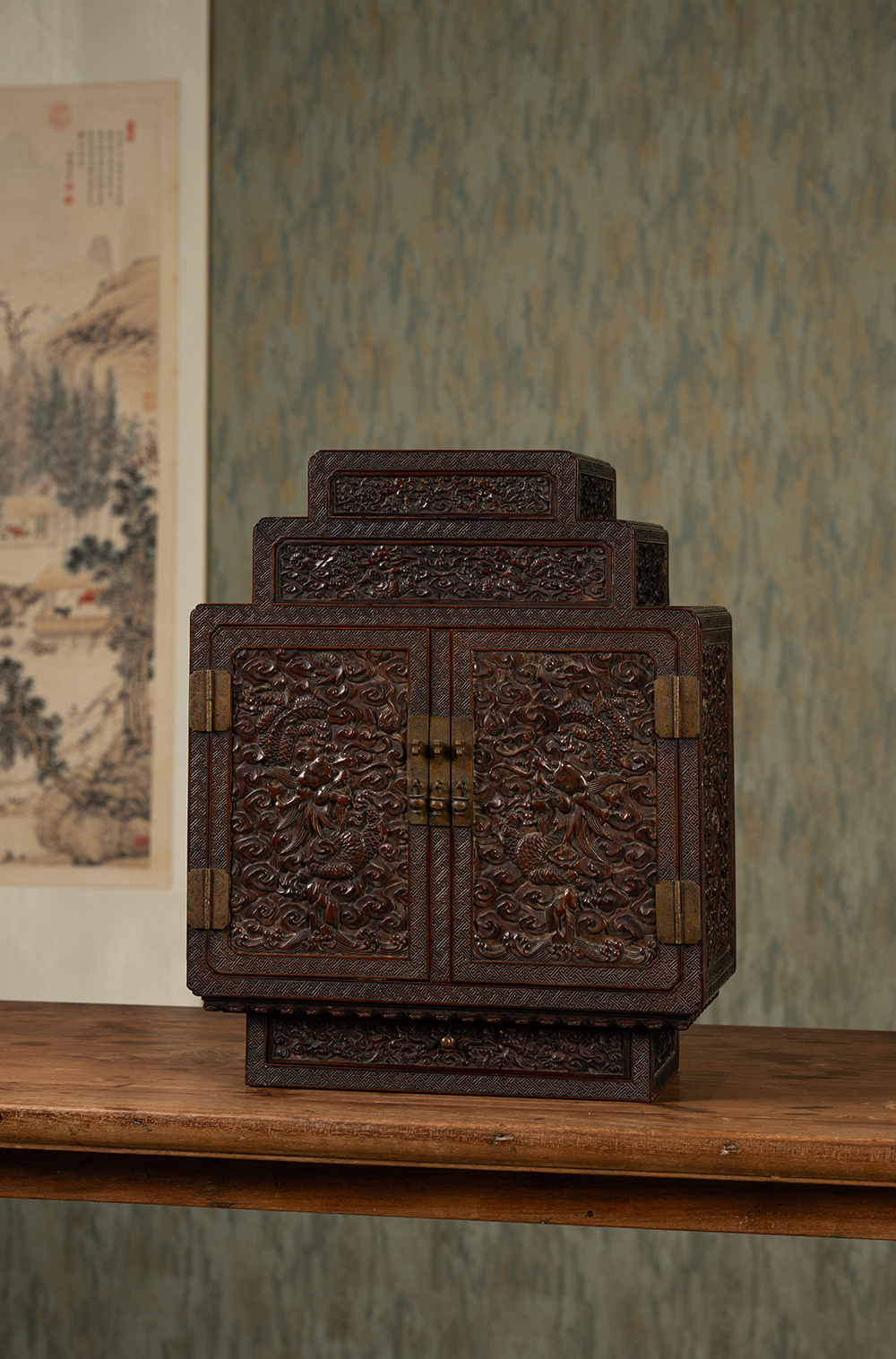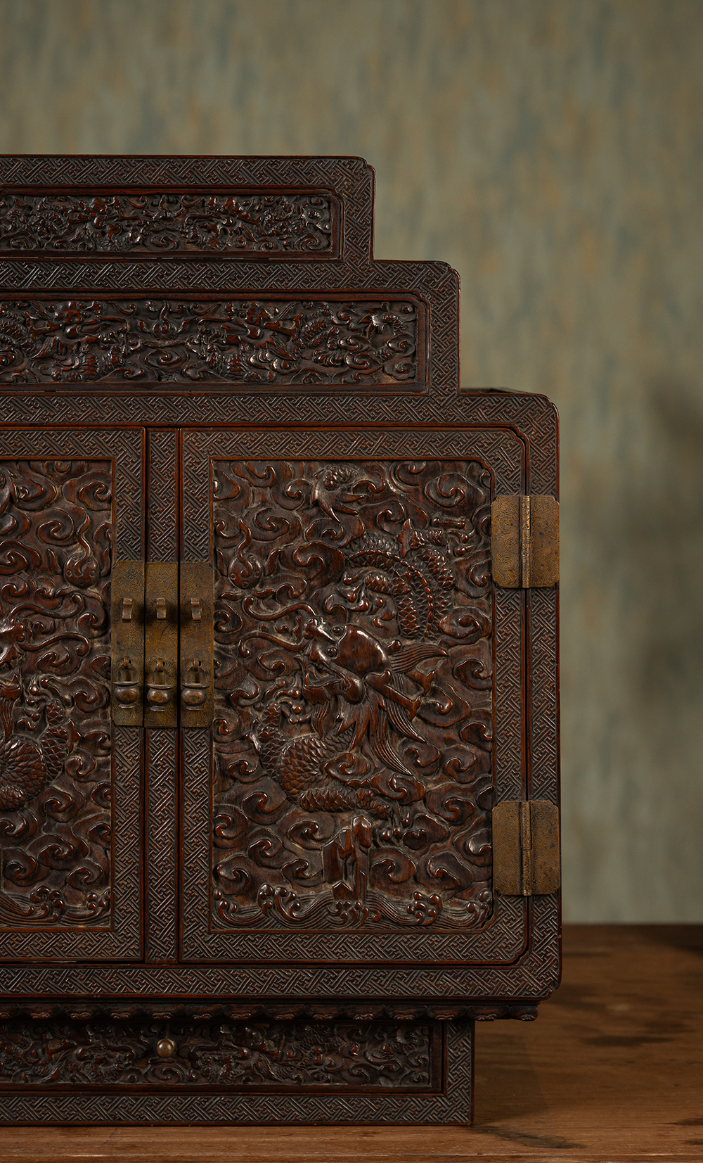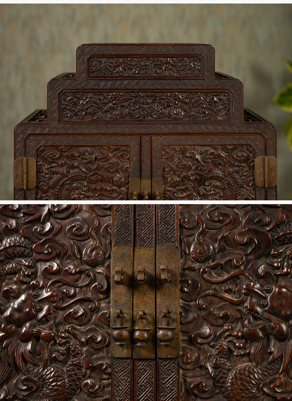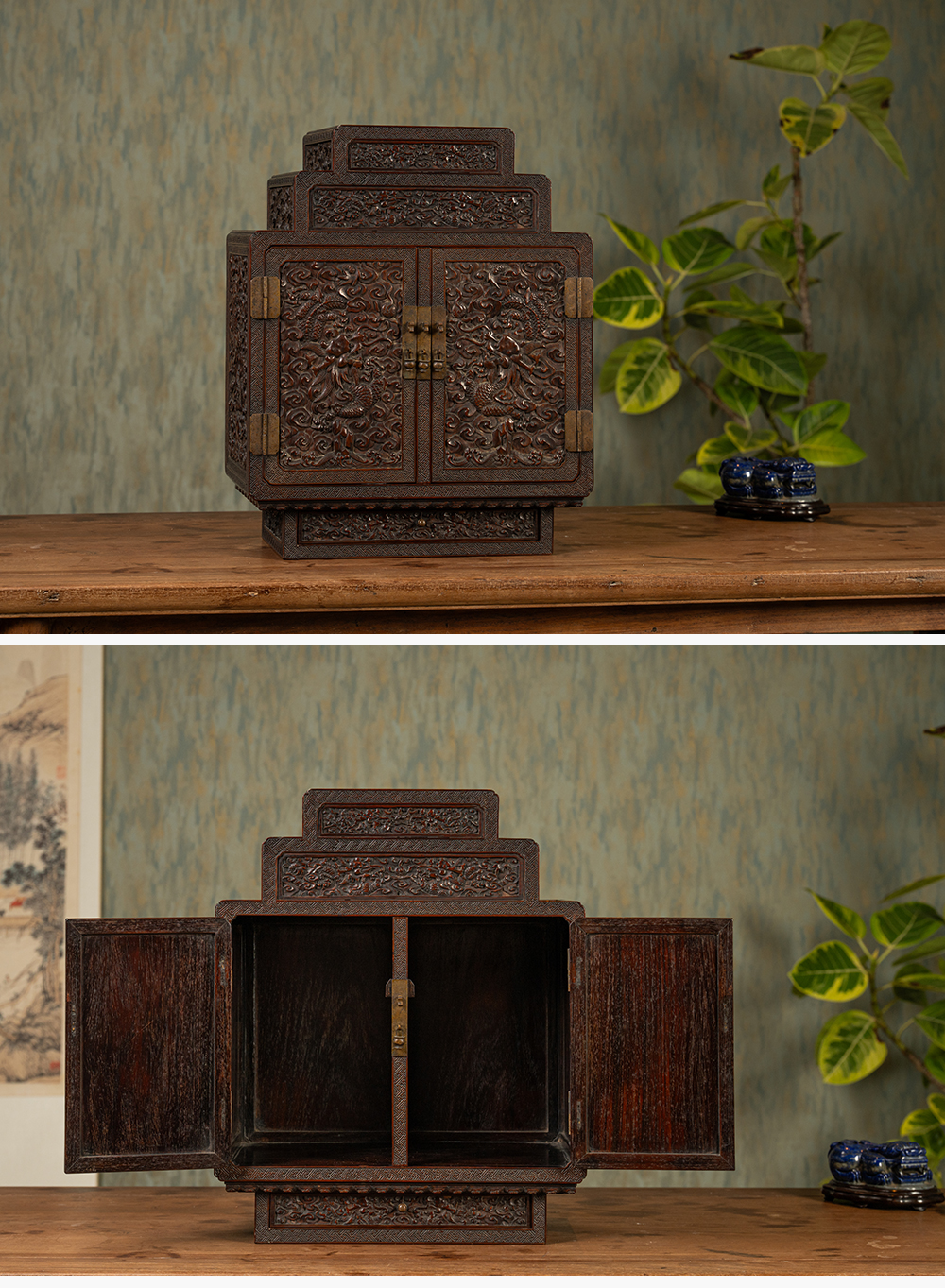 二十世纪 黄花梨卷草纹三弯腿带托泥方香几(一对)