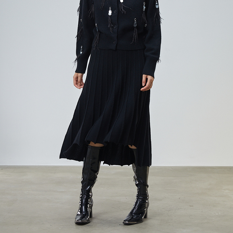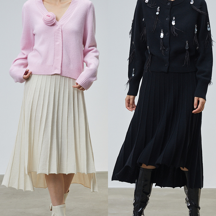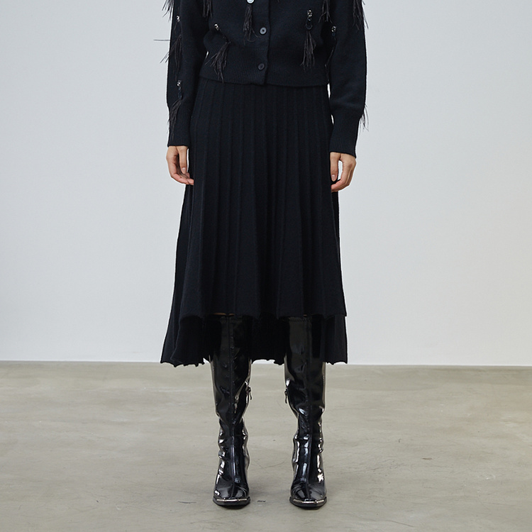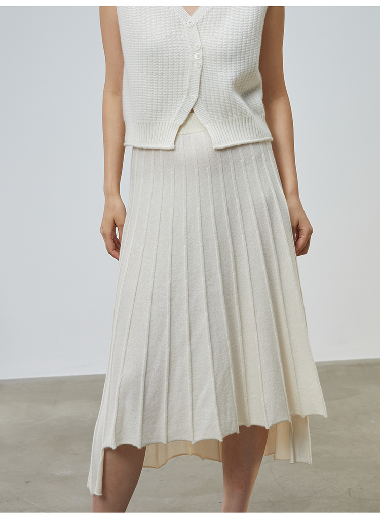 VogoPetite 不对称伞裙100%山羊绒半身裙 BP131E3307