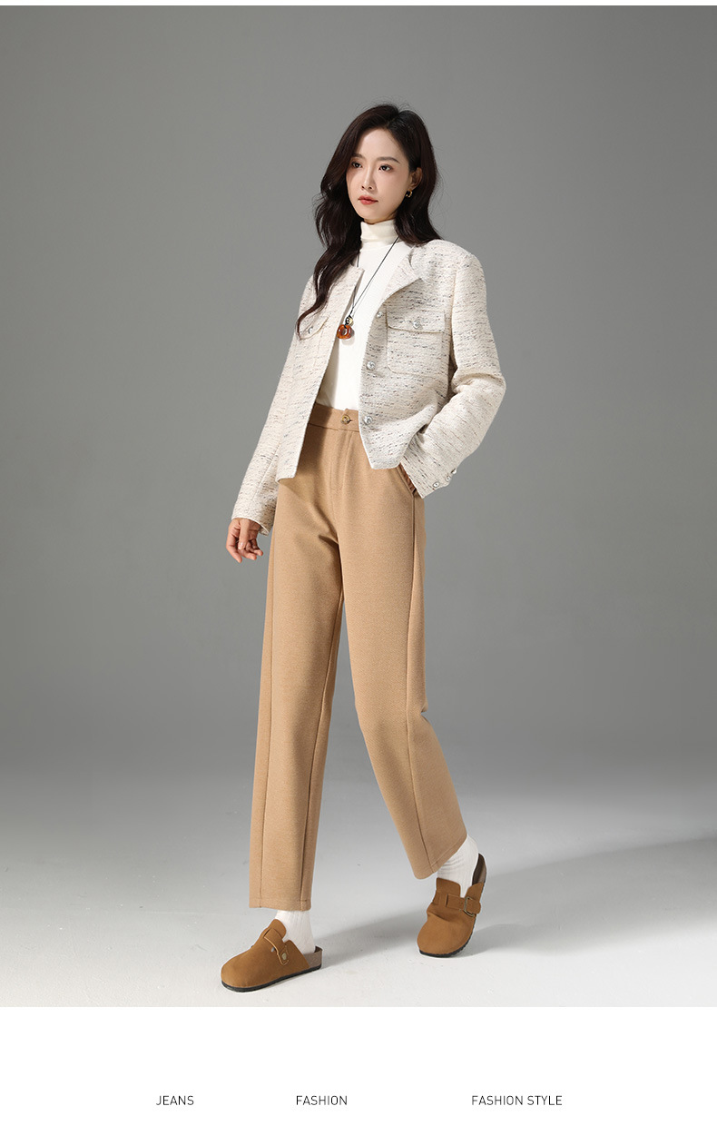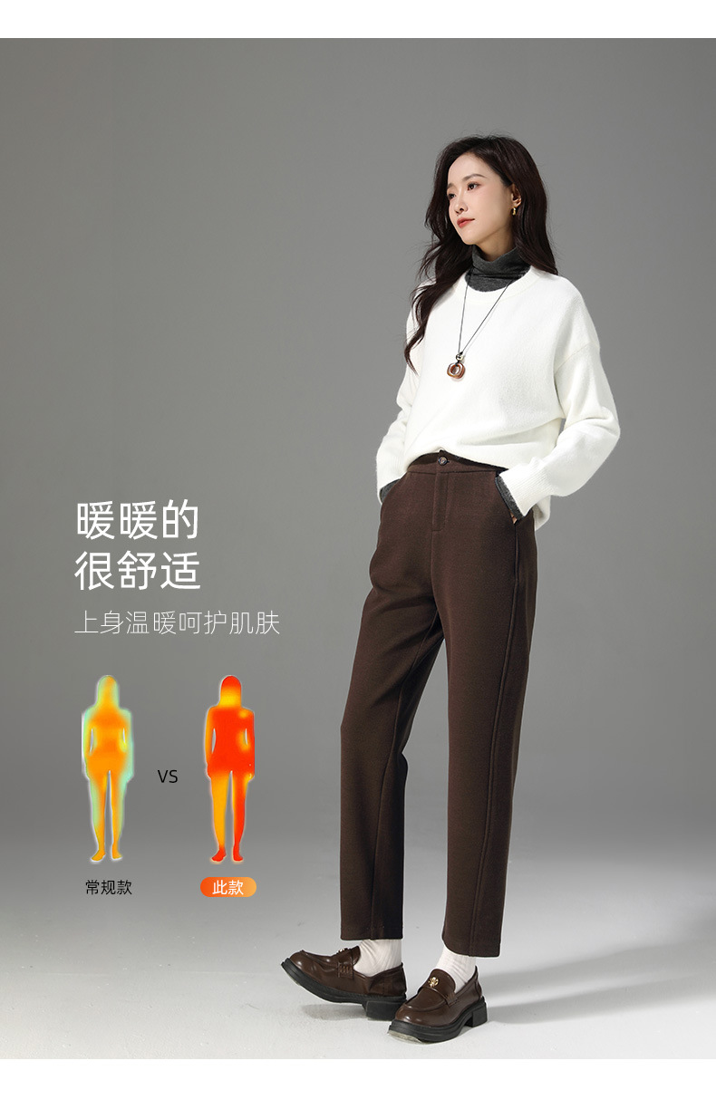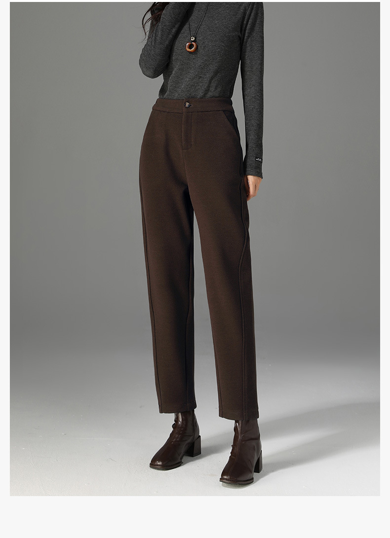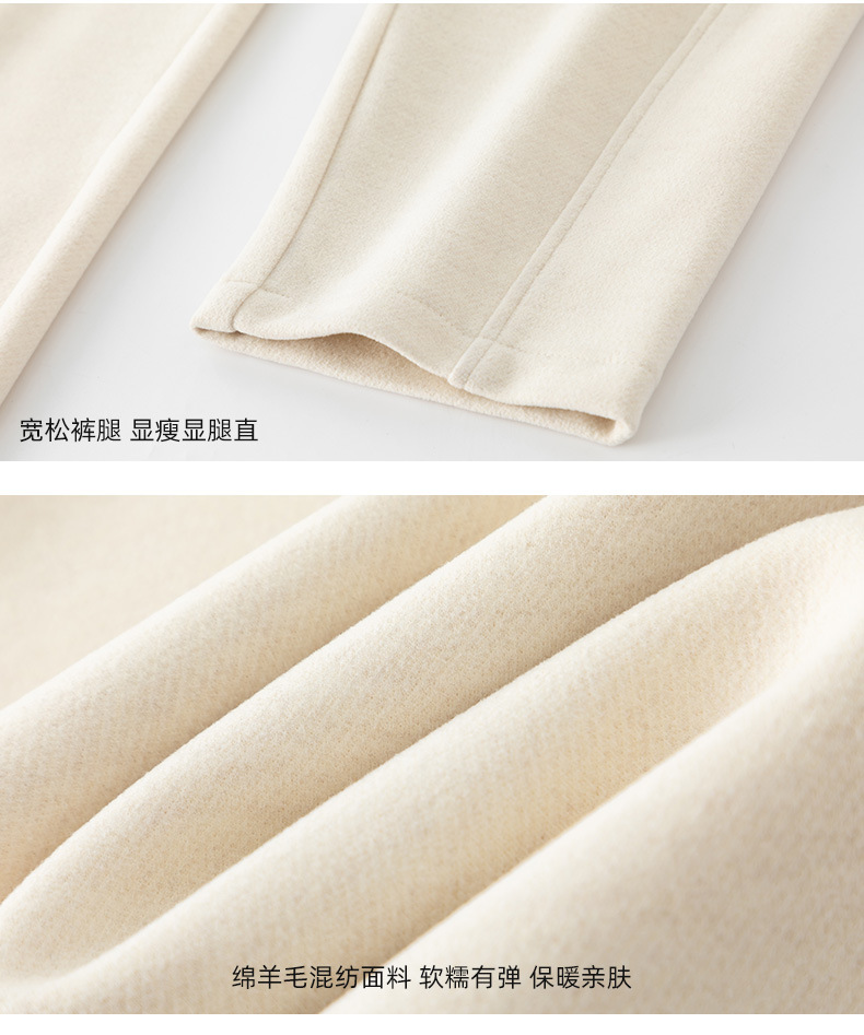 【高货xg】全新升级【铂金会员165/天猫219/差价54】(14954) 洛诗琳九分羊毛裤女2024冬季新款休闲百搭时髦宽腿镰刀裤