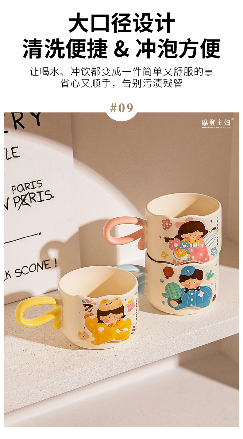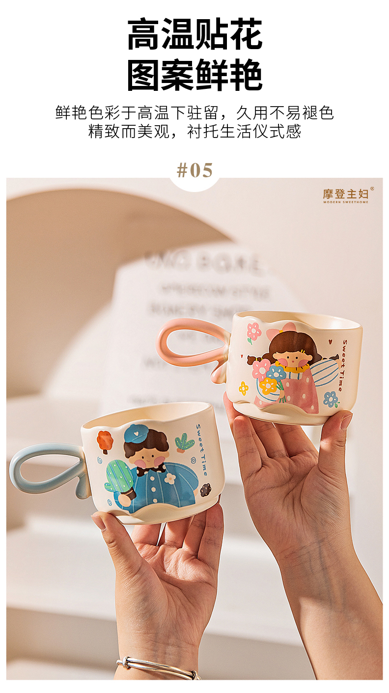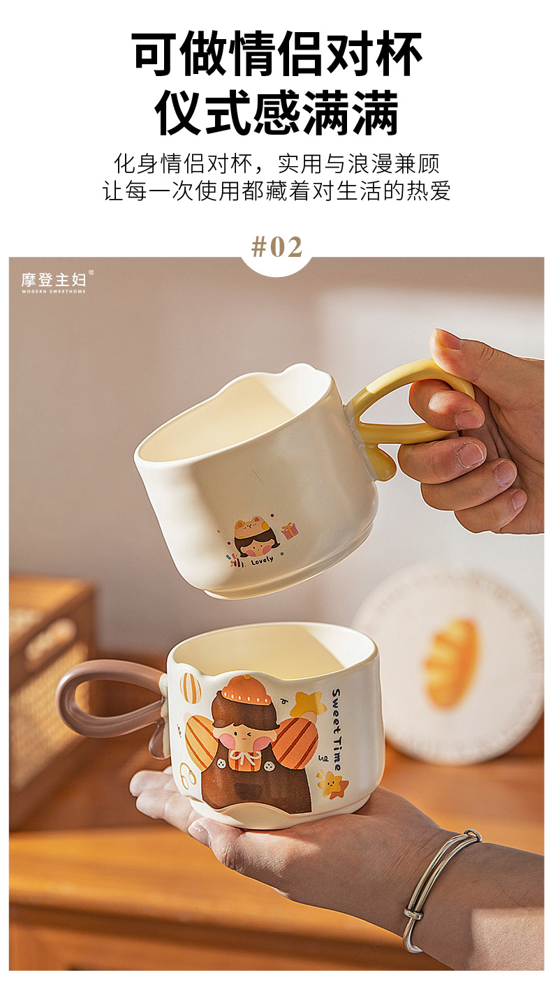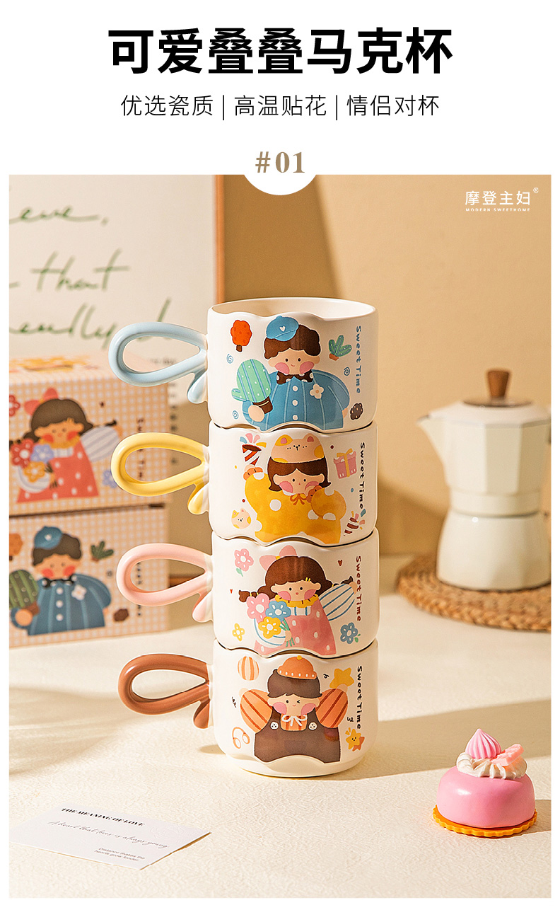 摩登主妇马克杯家用喝水杯陶瓷杯高颜值早餐杯情侣咖啡杯叠叠杯子