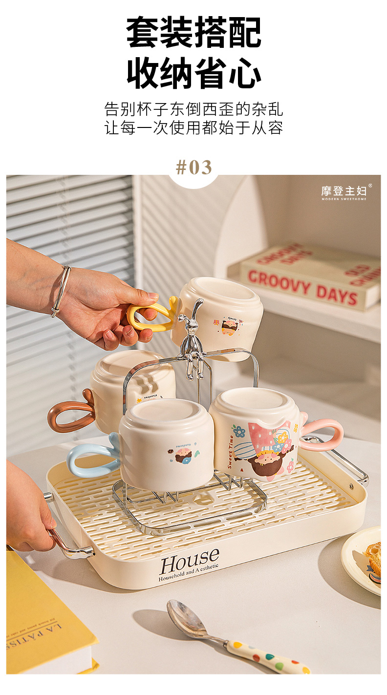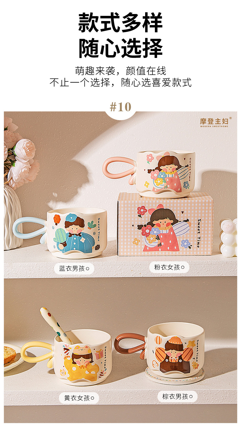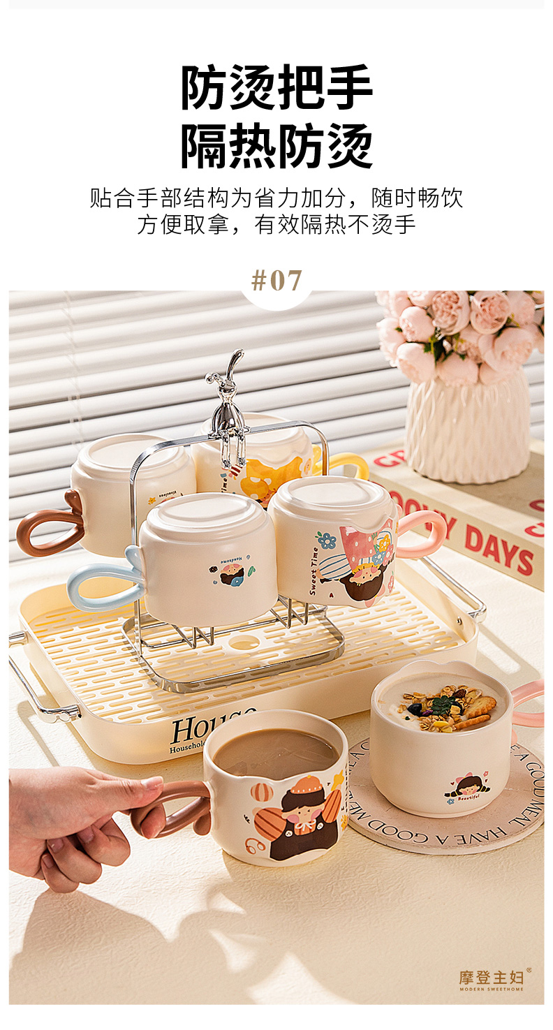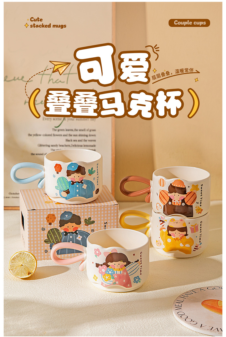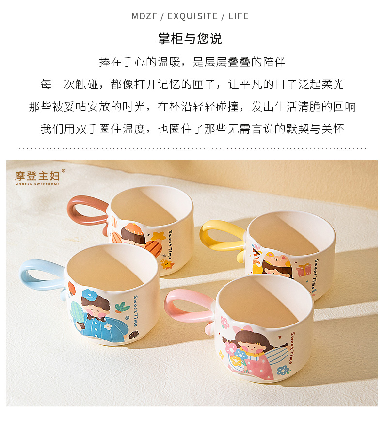 摩登主妇马克杯家用喝水杯陶瓷杯高颜值早餐杯情侣咖啡杯叠叠杯子