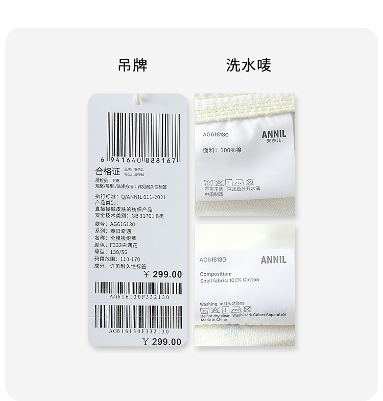 【实体店同款】女童全腰梭织裤春季新款安奈儿童装AG616130