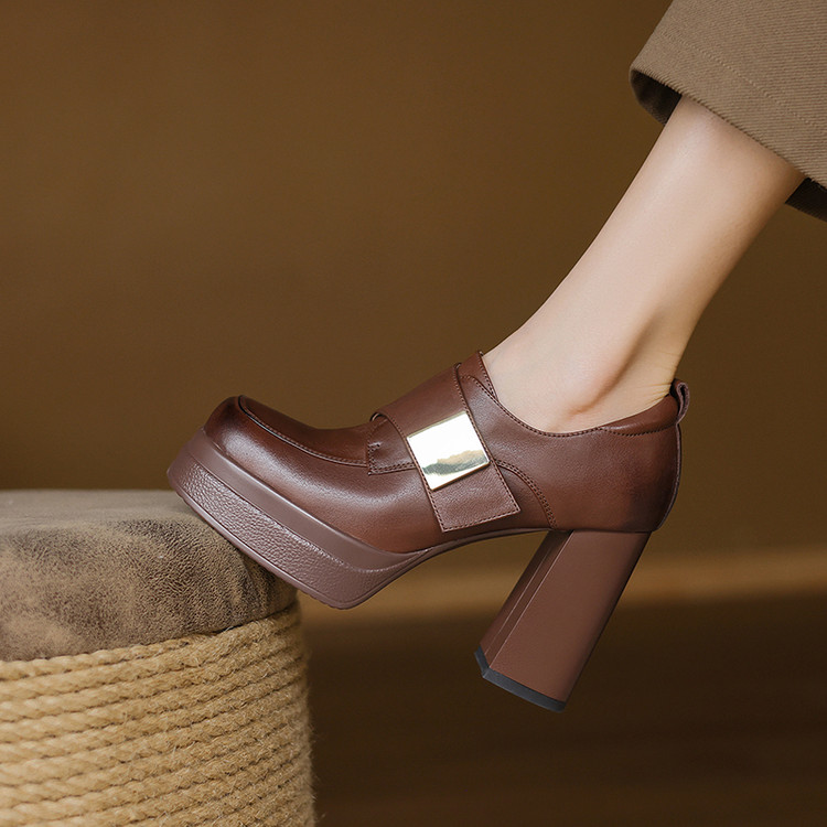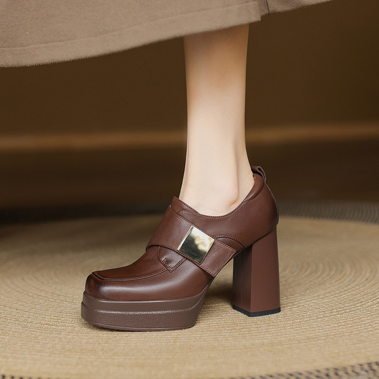 货号:N9706颜色:黑色 棕色跟高:10CM水台:3.5CM鞋码:34-39鞋面材质:头层牛皮鞋 垫:头层牛皮内里材质:头层猪皮鞋底材质:聚氨酯