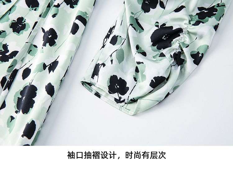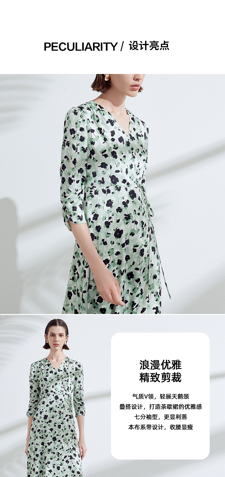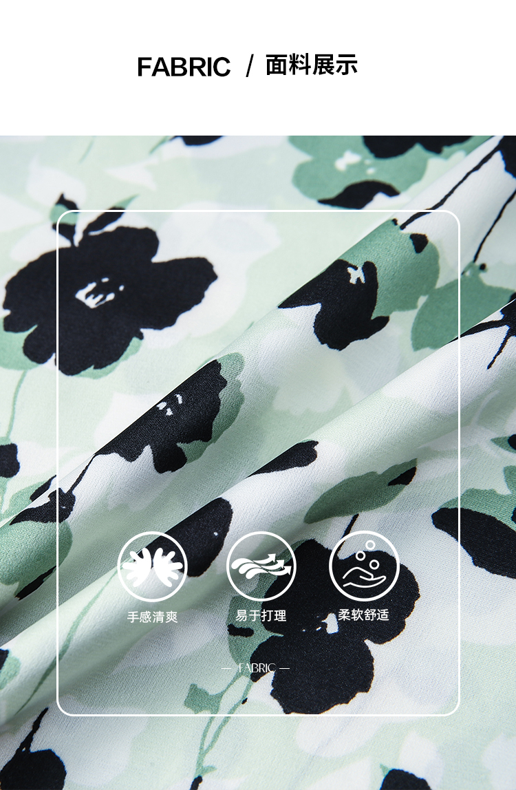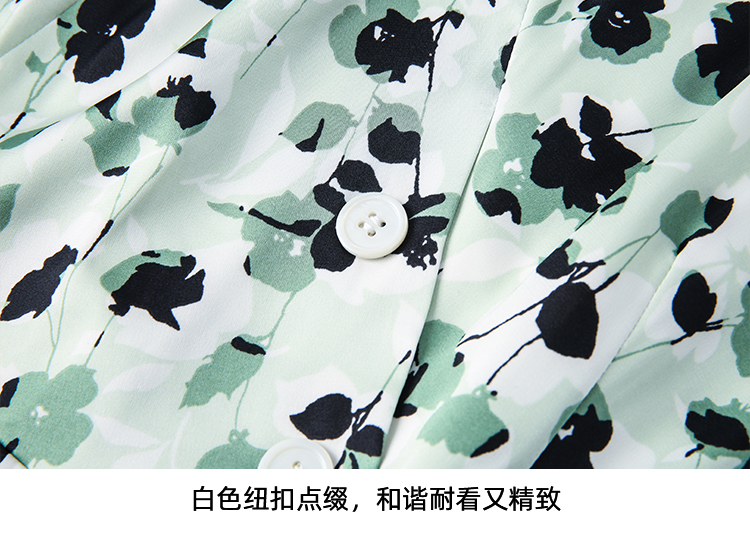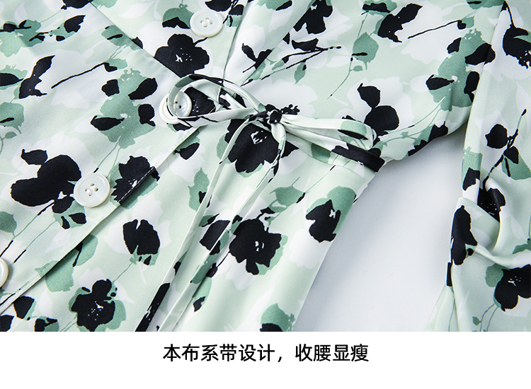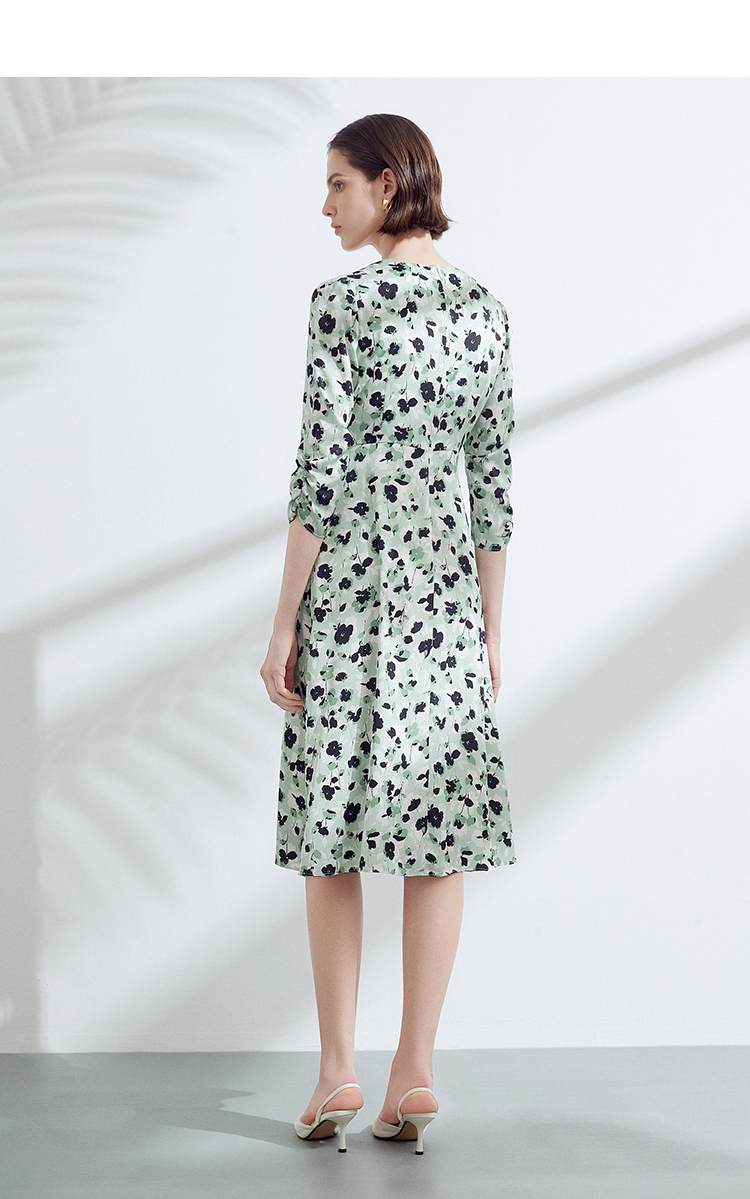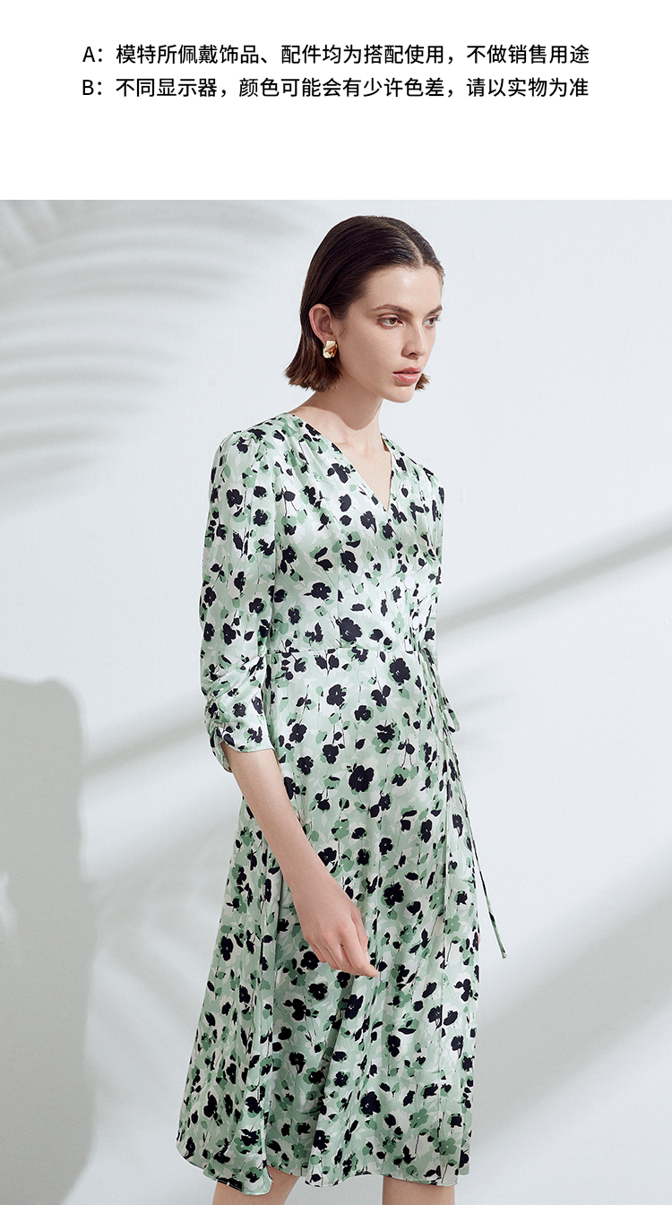 EITIE爱特爱夏季新款优雅法式V领收腰气质中袖印花连衣裙7807529