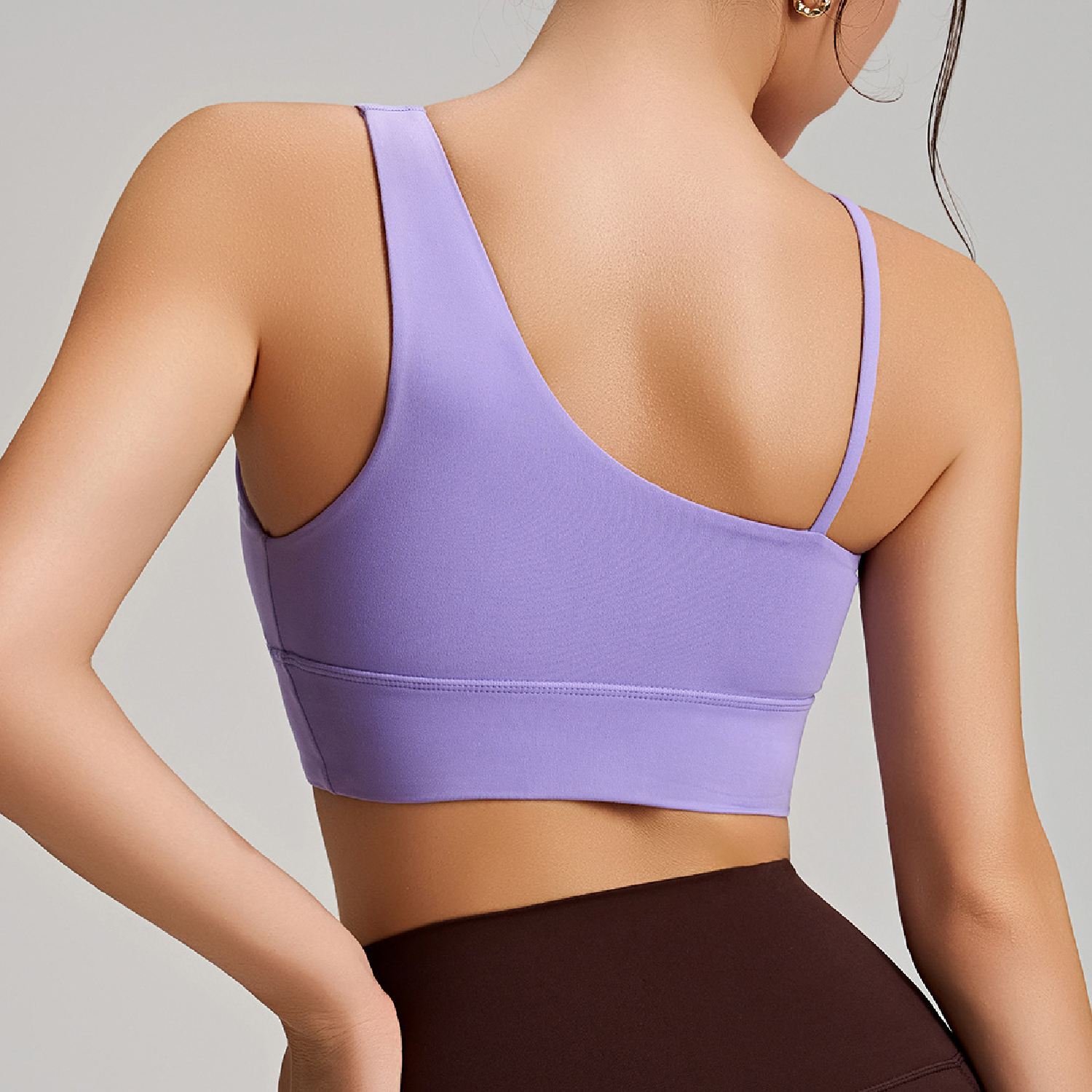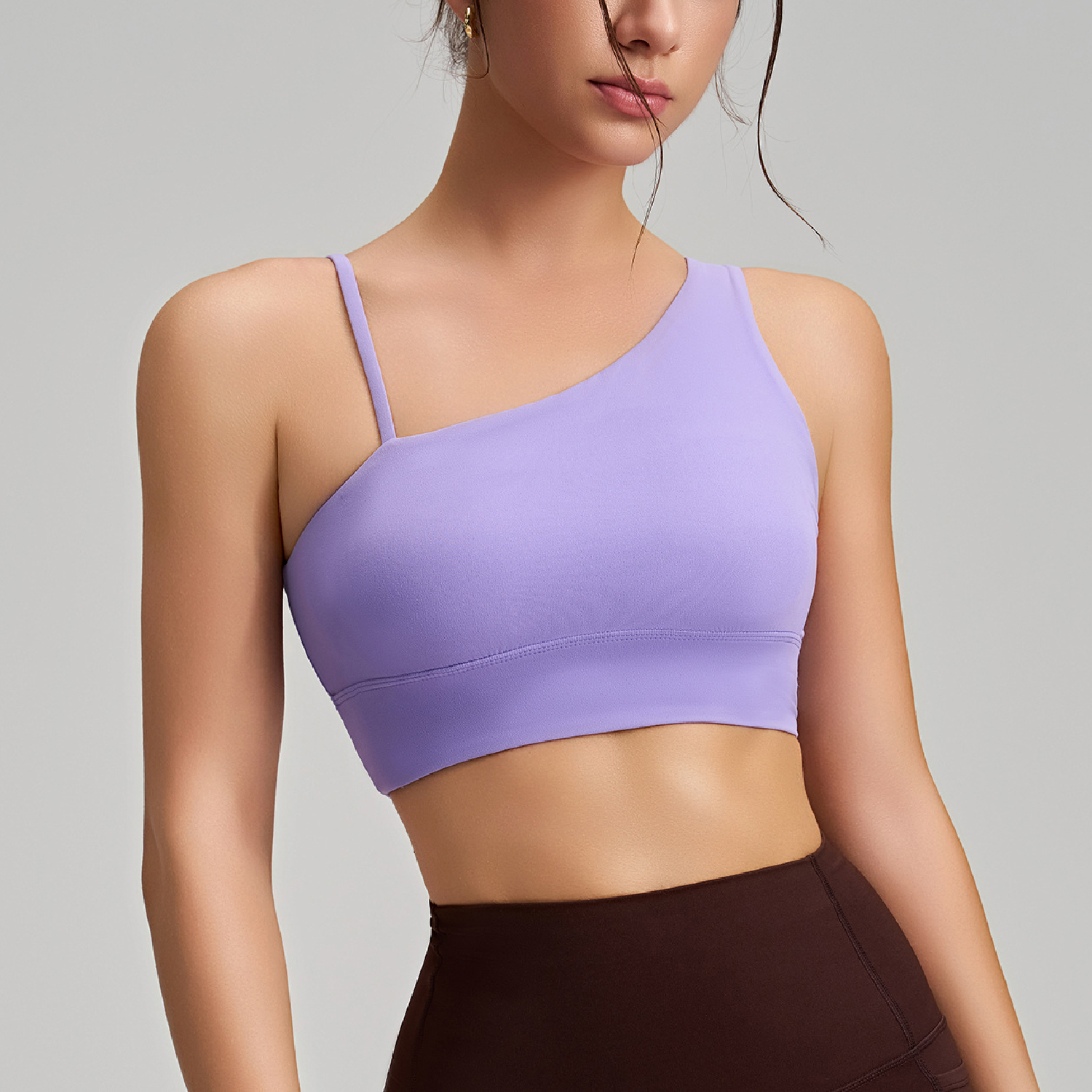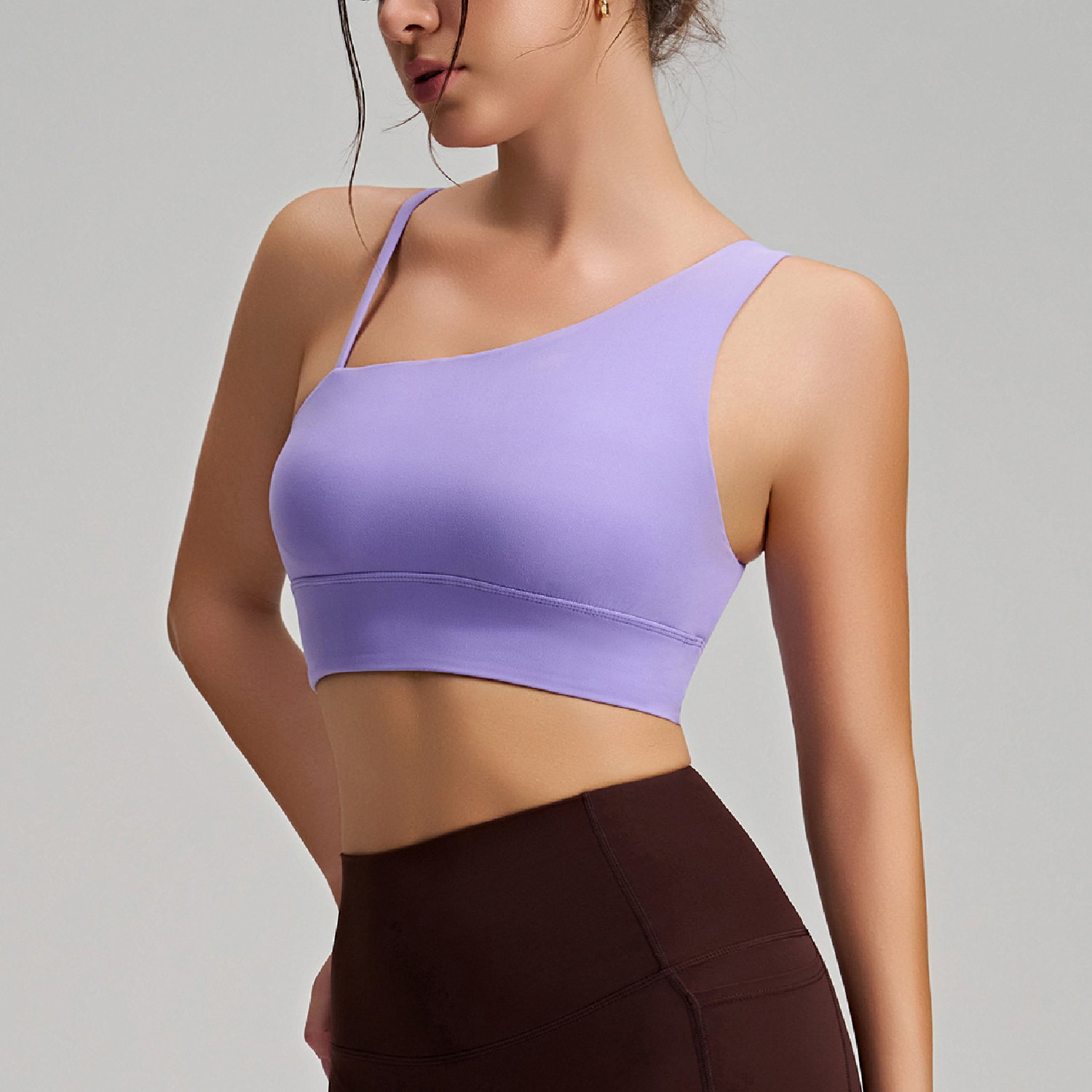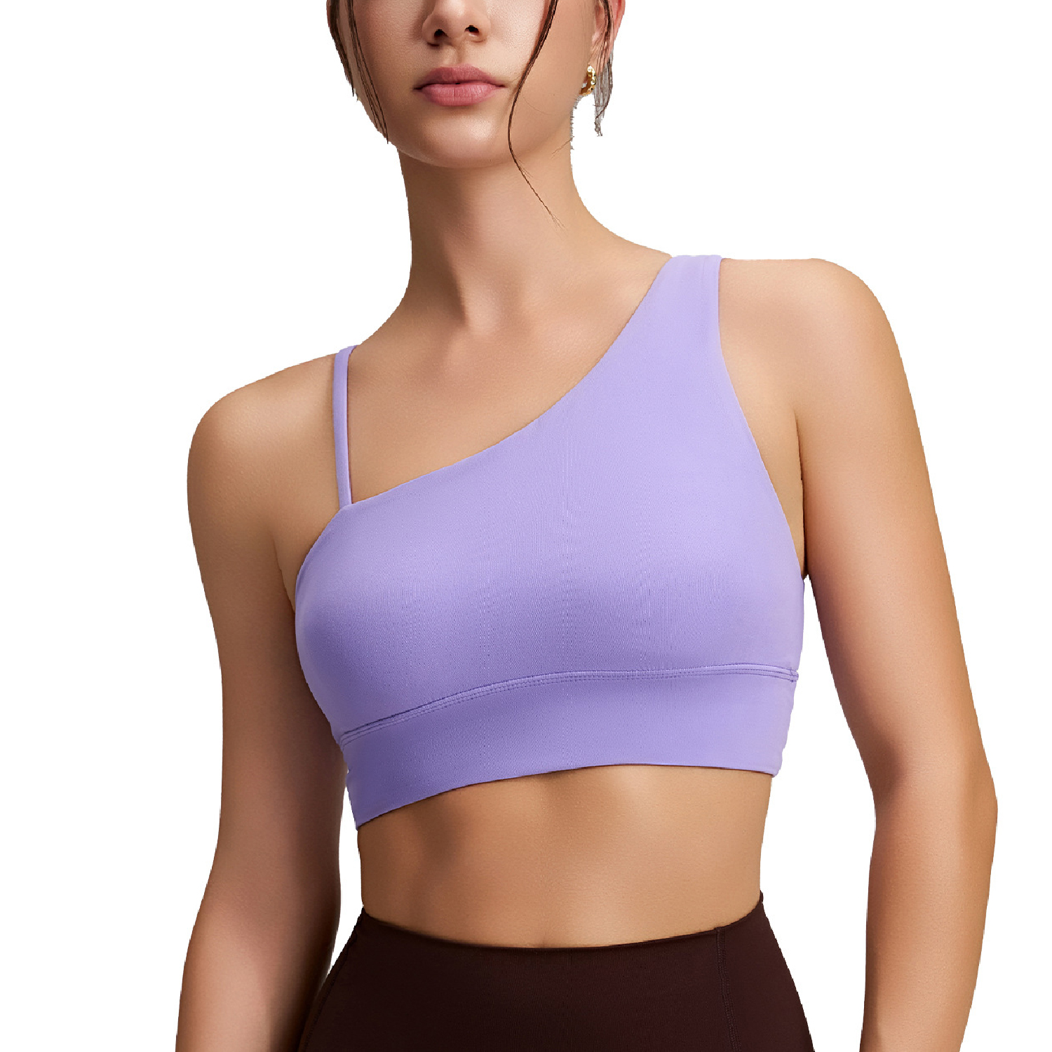 跃牌【安琪拉系列】新款斜单肩不规则美背瑜伽文胸速干运动弹力内衣跑步健身背心WX60321