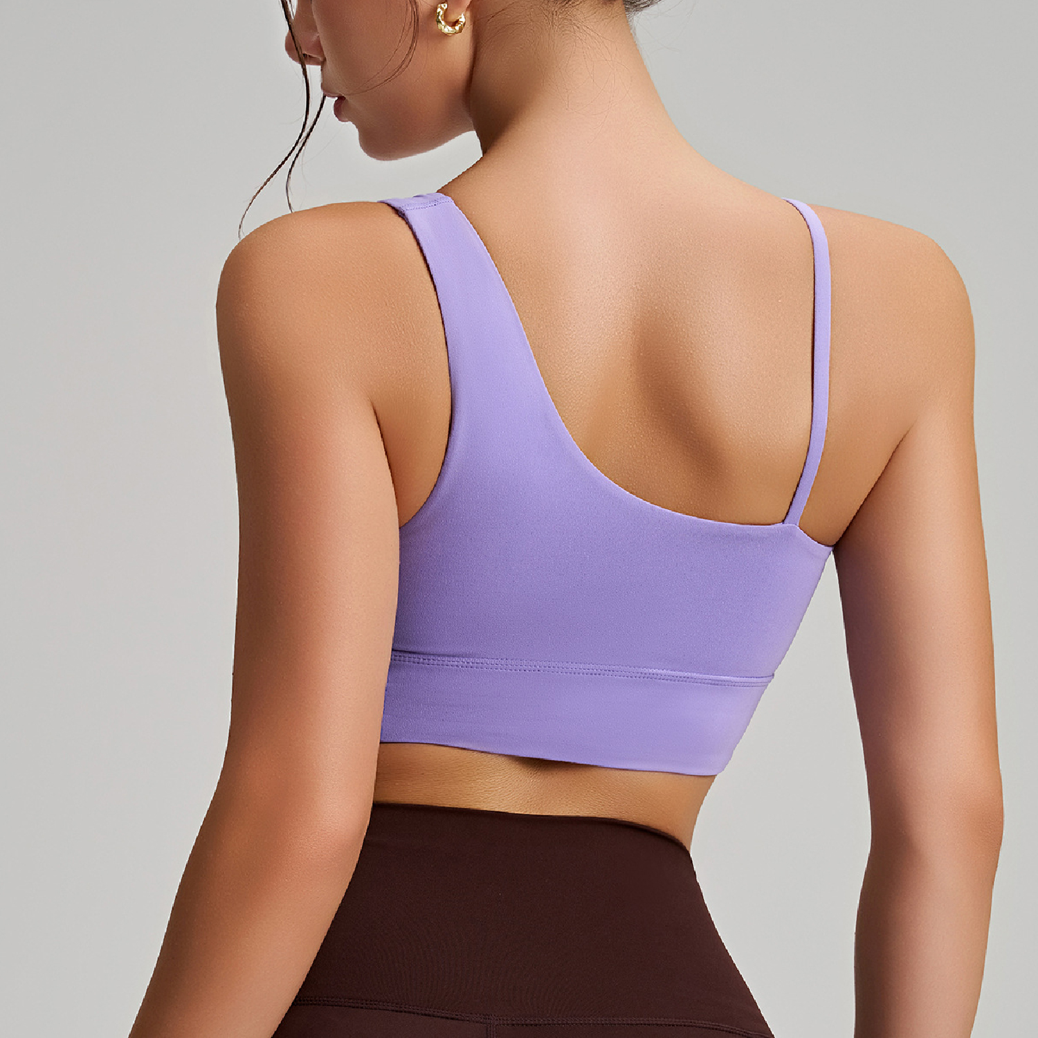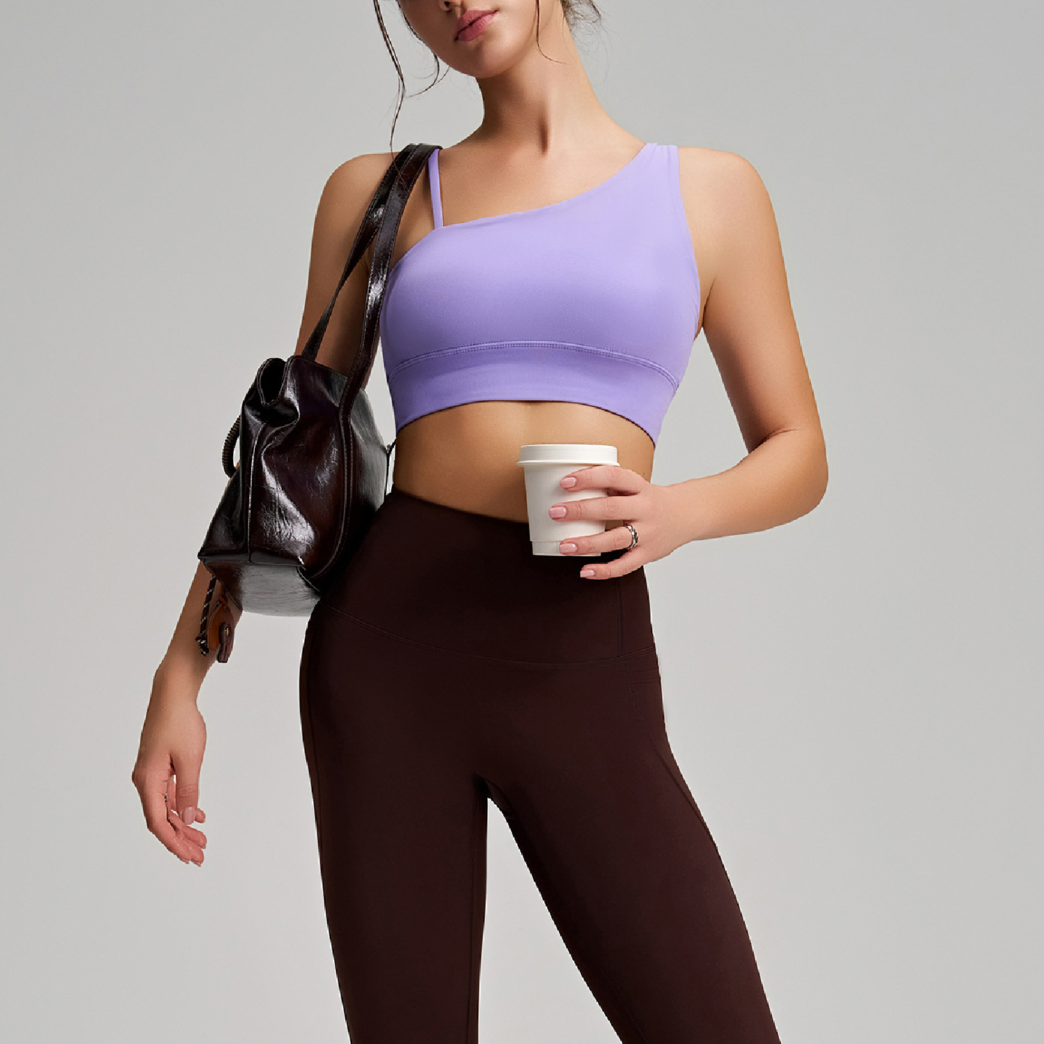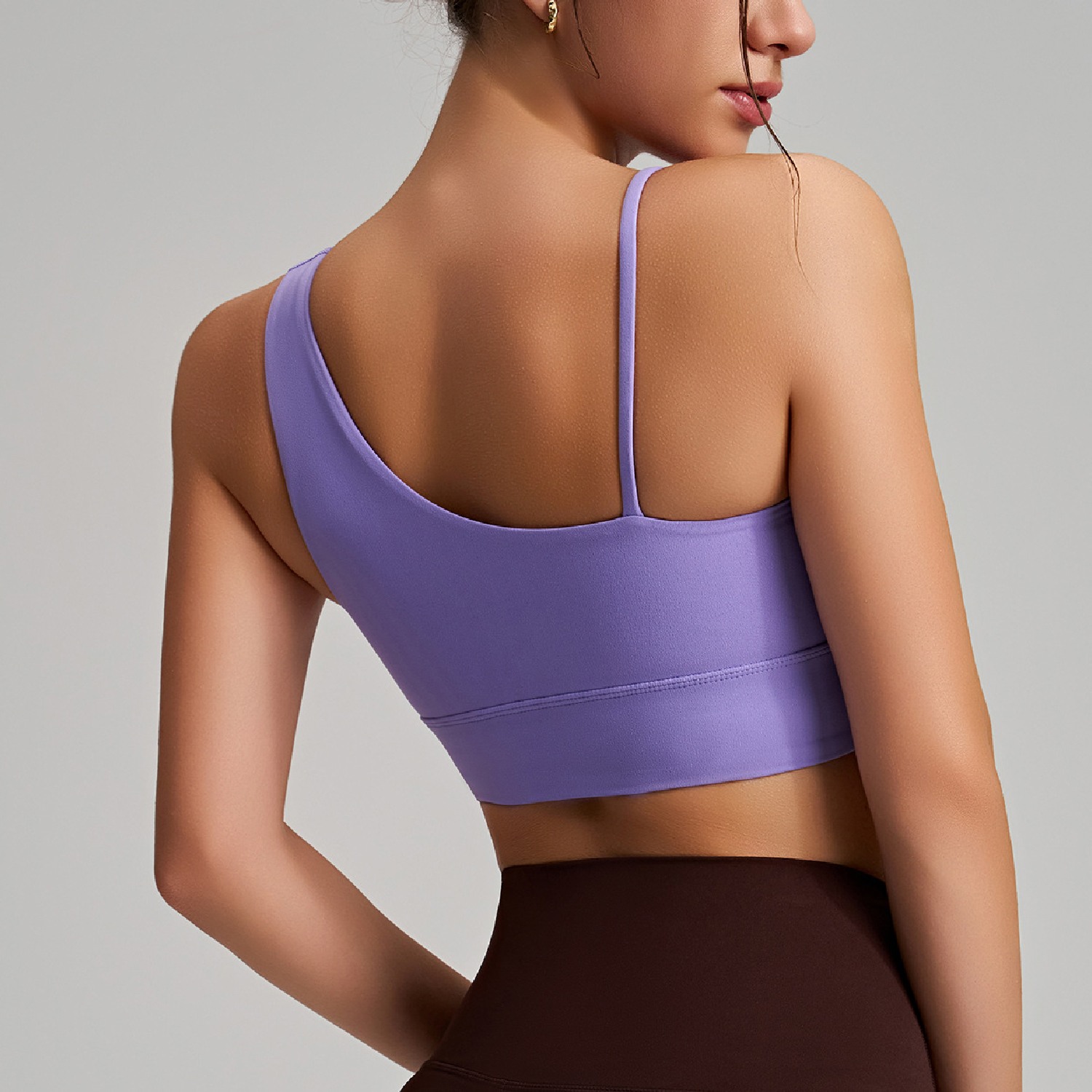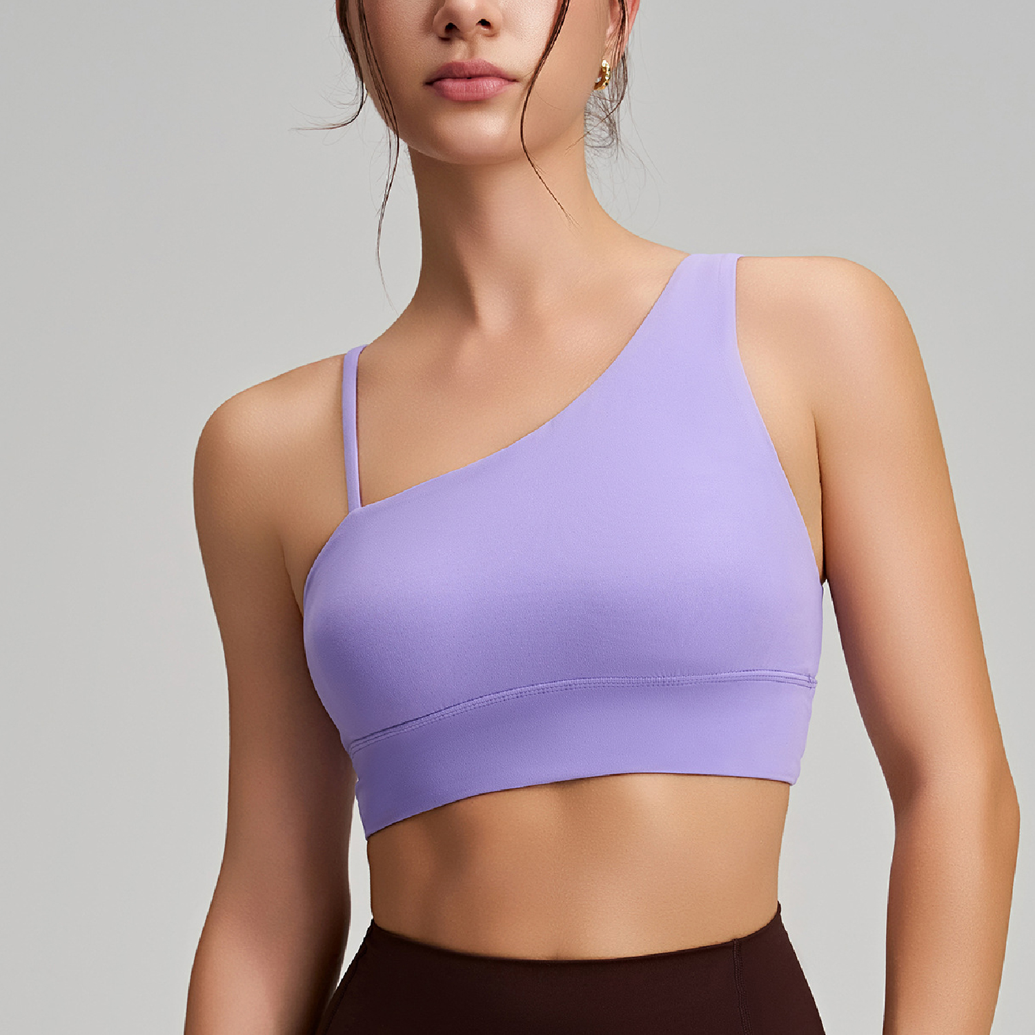 跃牌【安琪拉系列】新款斜单肩不规则美背瑜伽文胸速干运动弹力内衣跑步健身背心WX60321