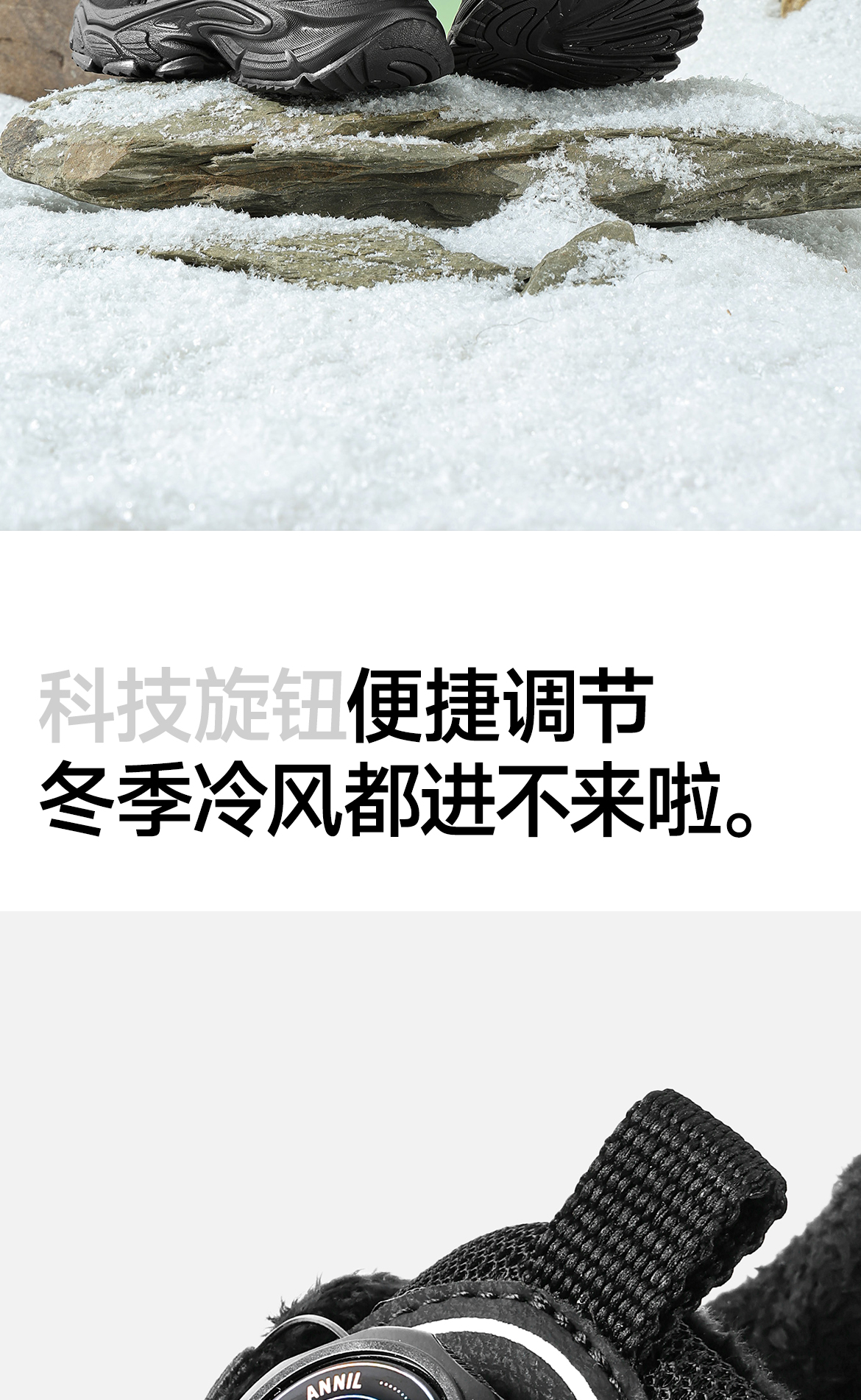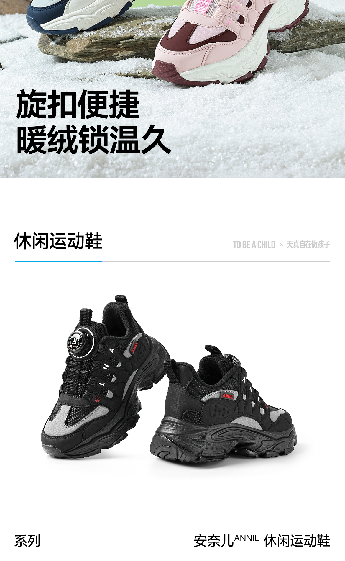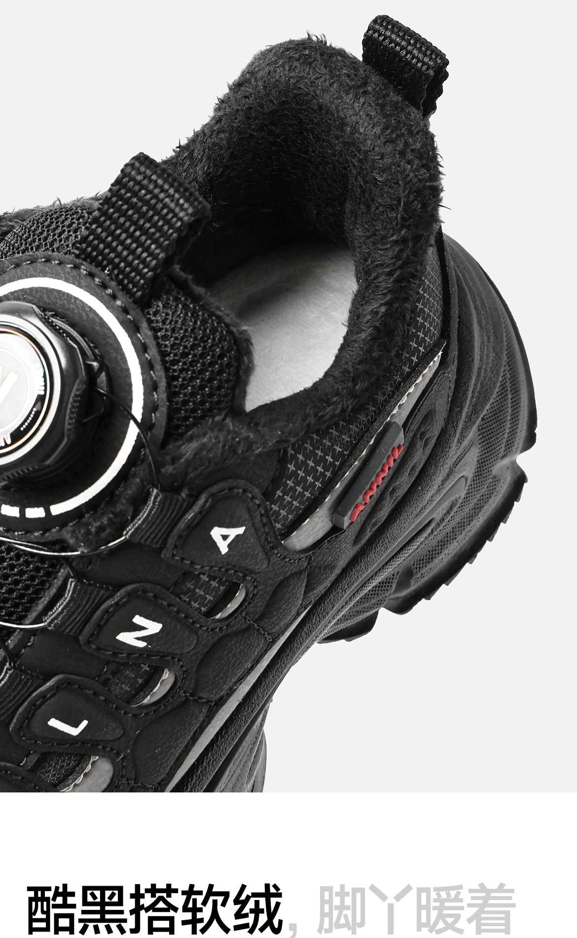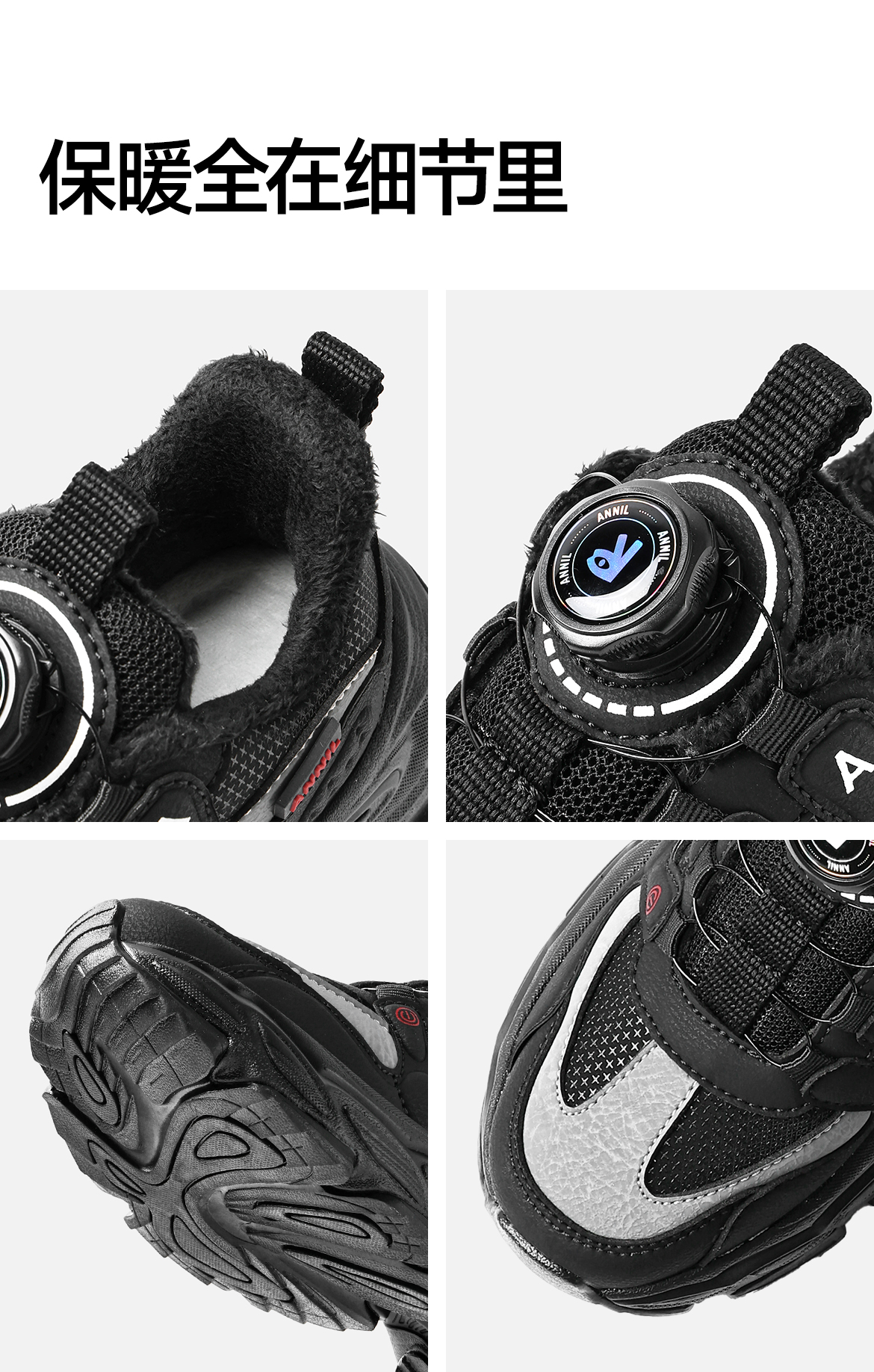 ANNIL/安奈儿童鞋男女童冬季加绒加厚休闲鞋秋冬防滑旋钮运动鞋儿童登山鞋HM5405577
