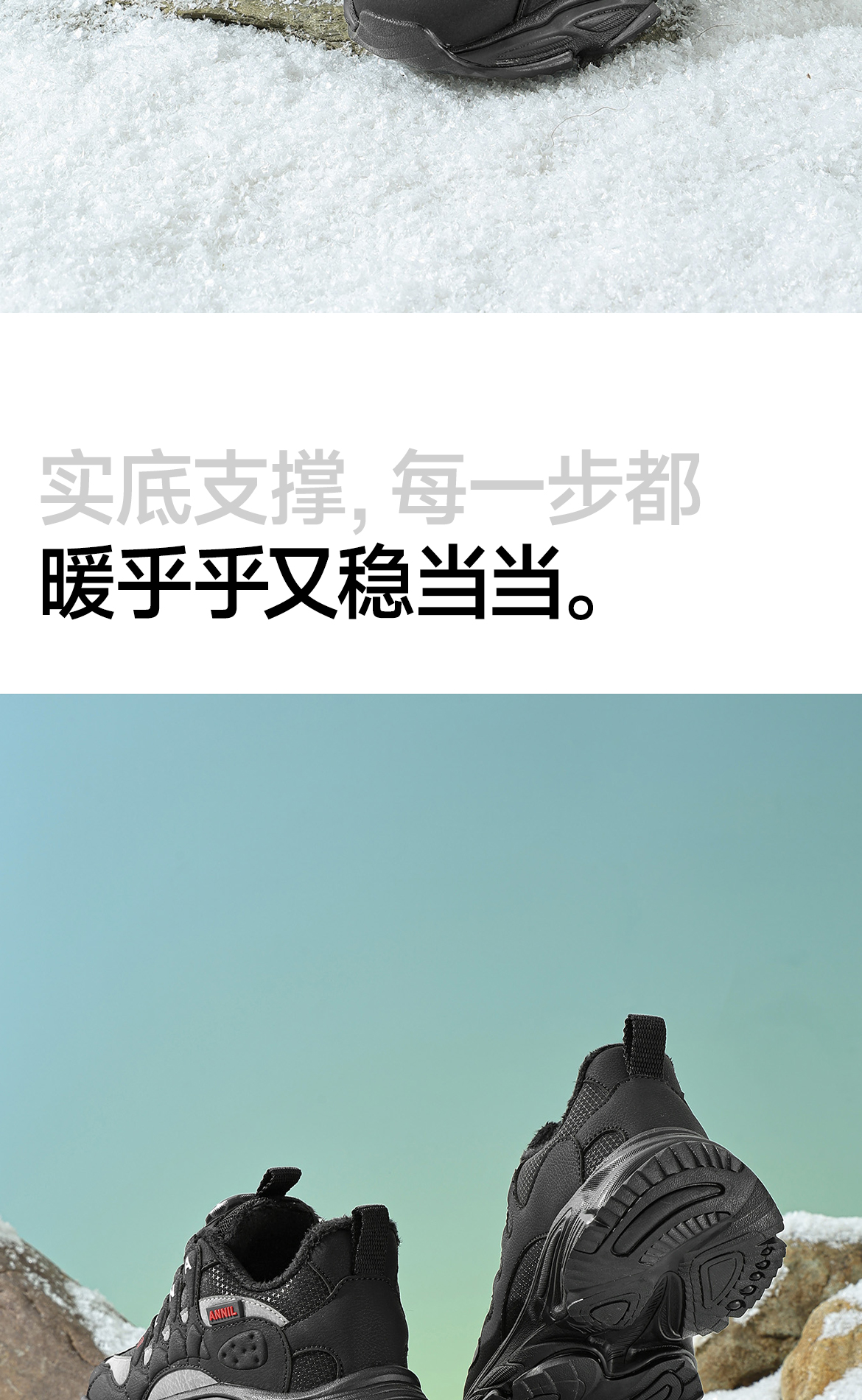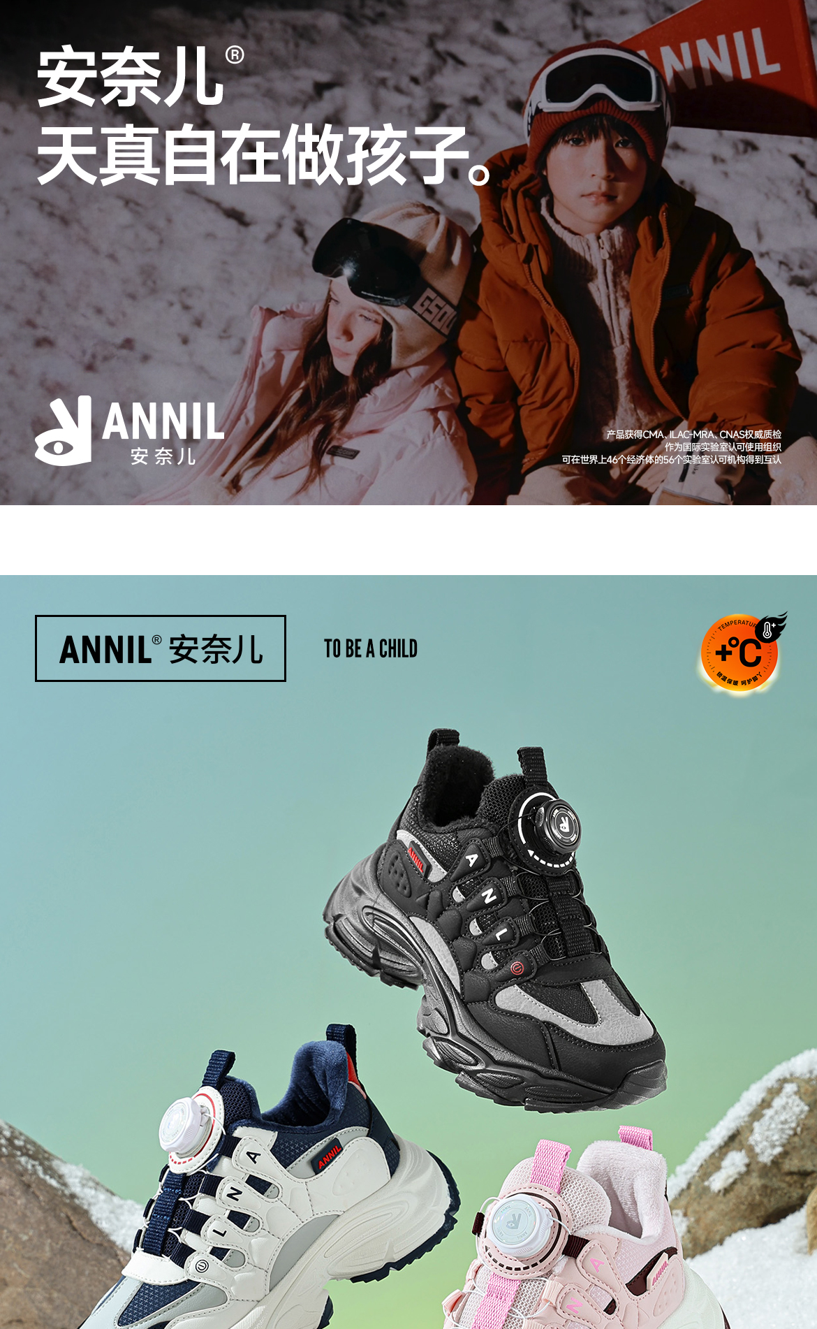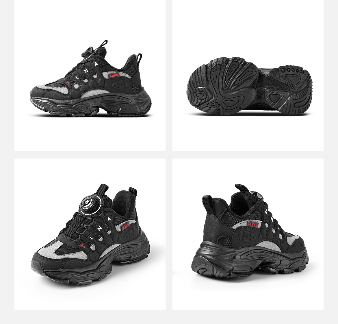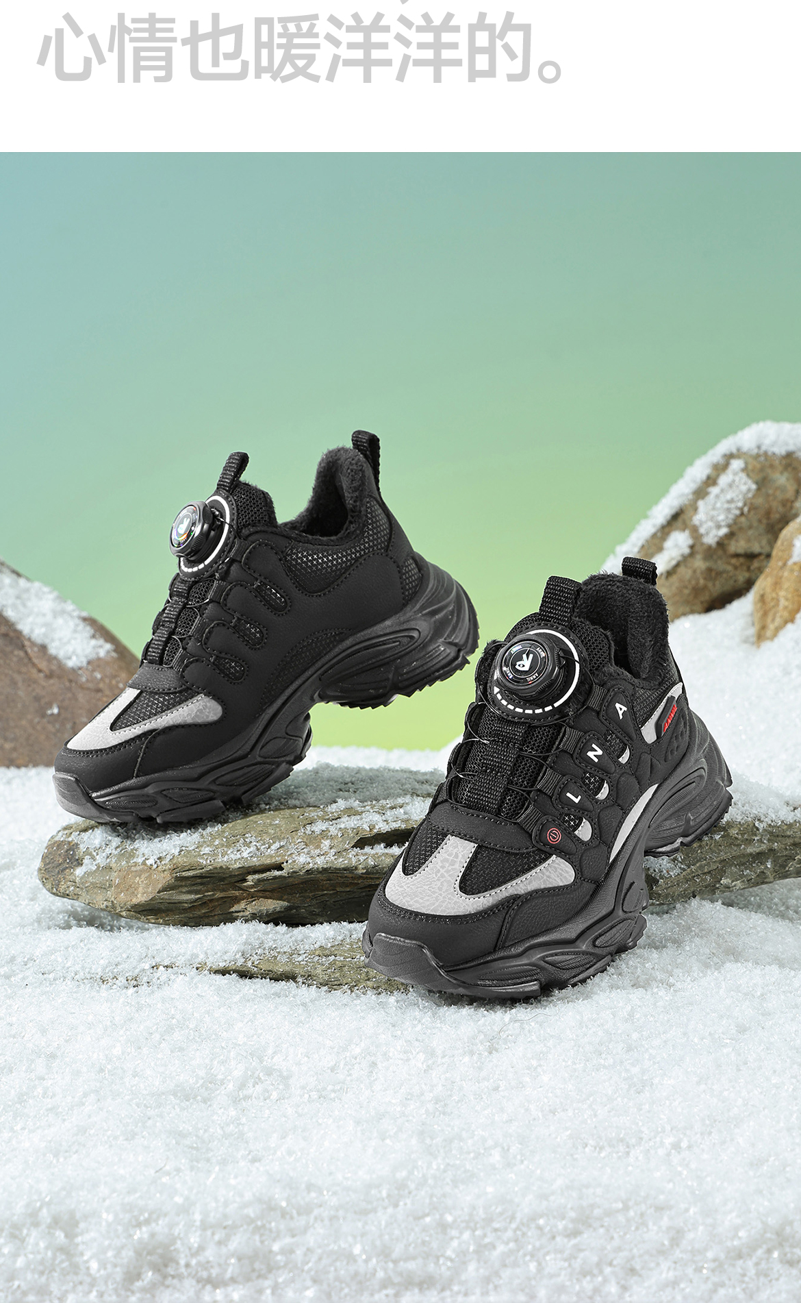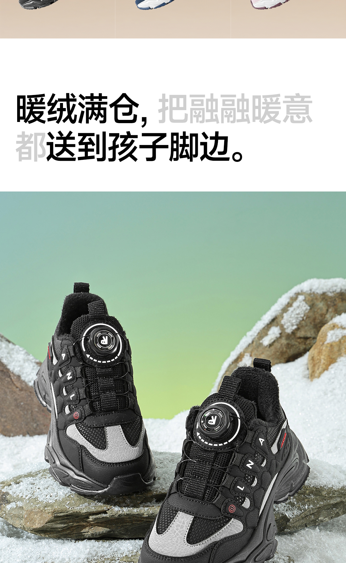 ANNIL/安奈儿童鞋男女童冬季加绒加厚休闲鞋秋冬防滑旋钮运动鞋儿童登山鞋HM5405577