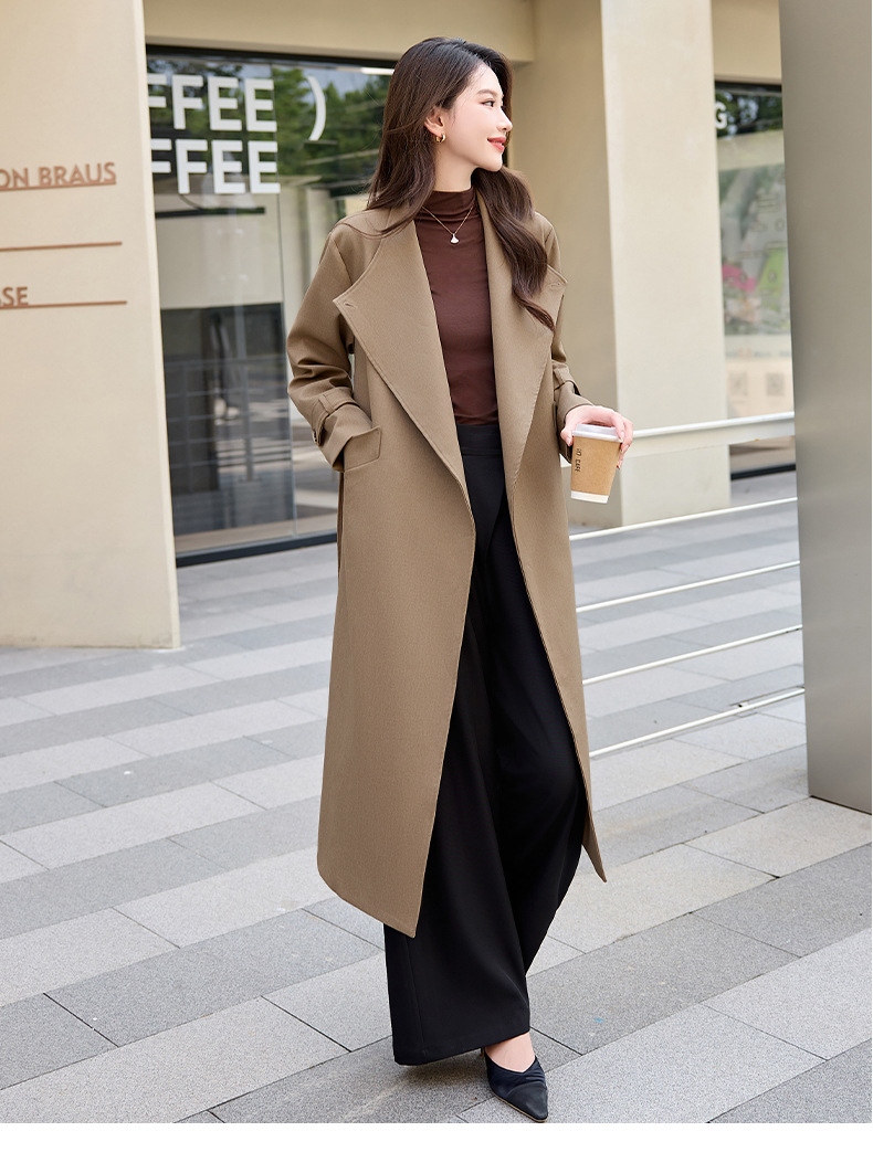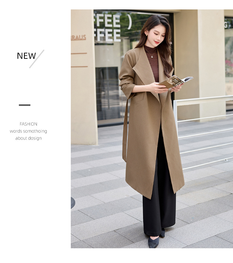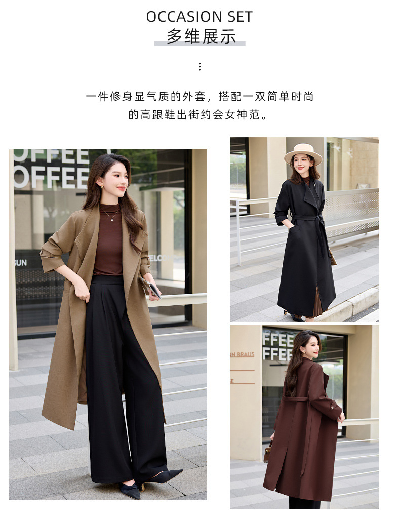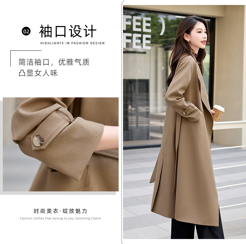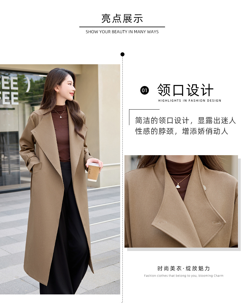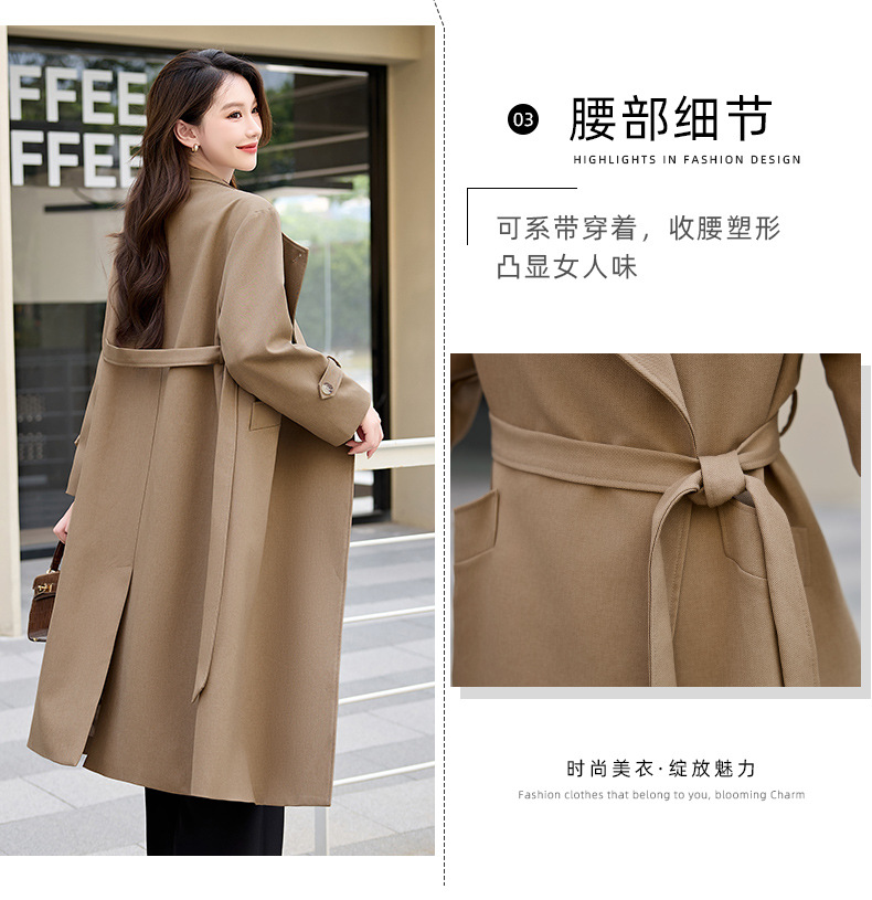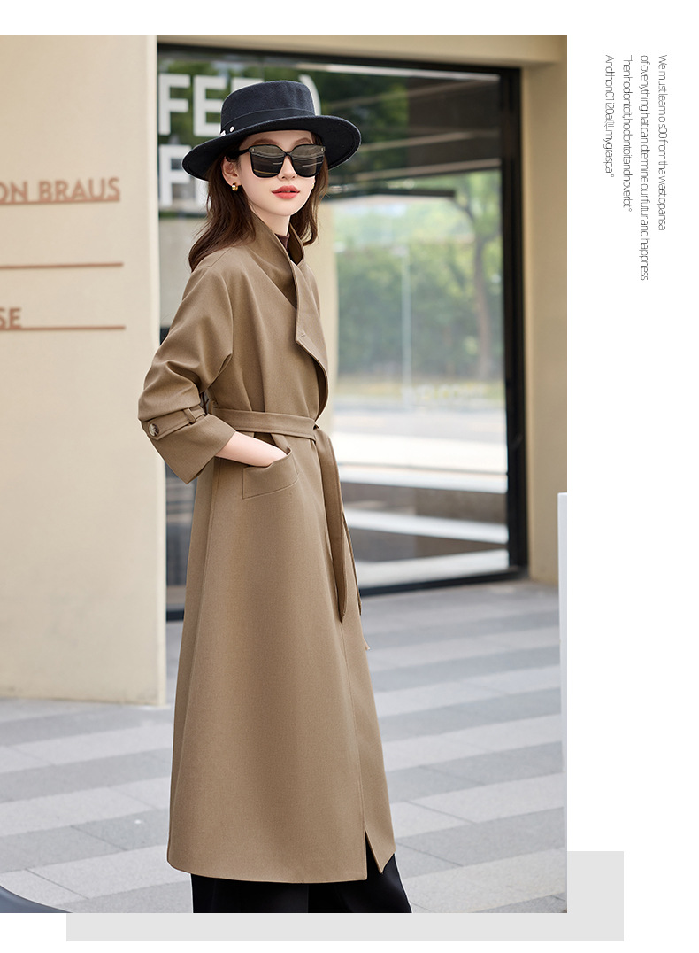 新款潮流气质英伦风中长款,高级感宽松百搭收腰系带翻领风衣KJFA1000-1