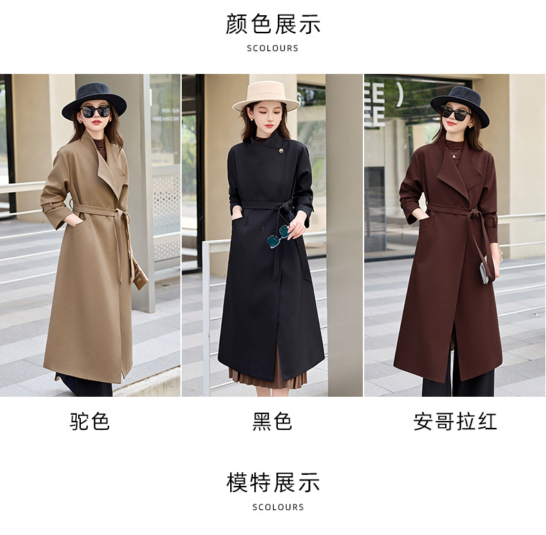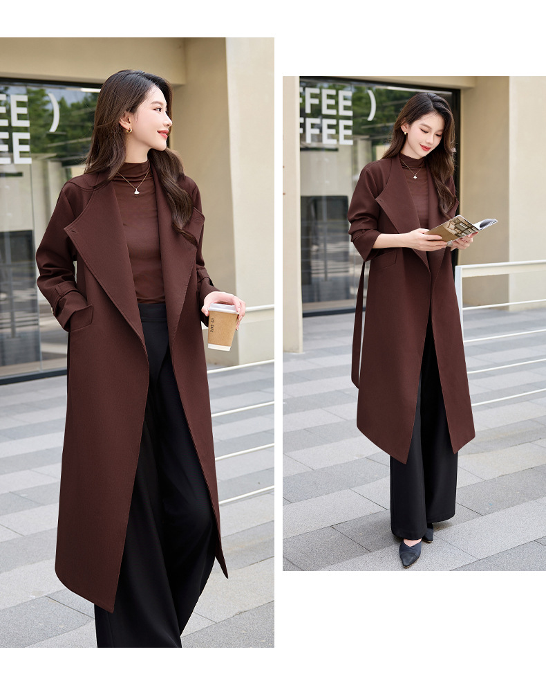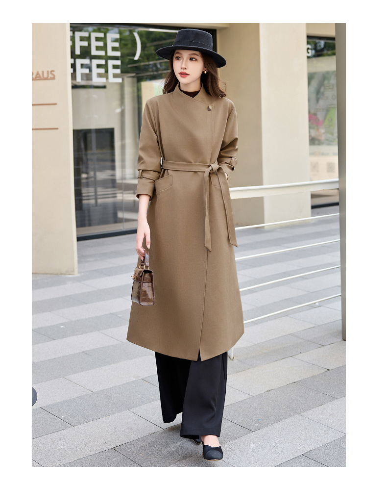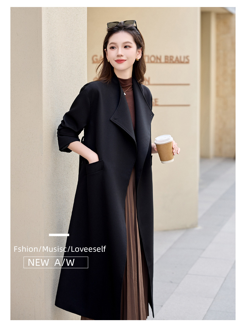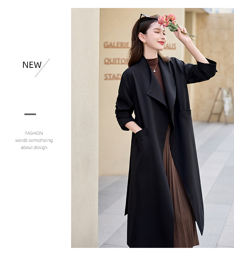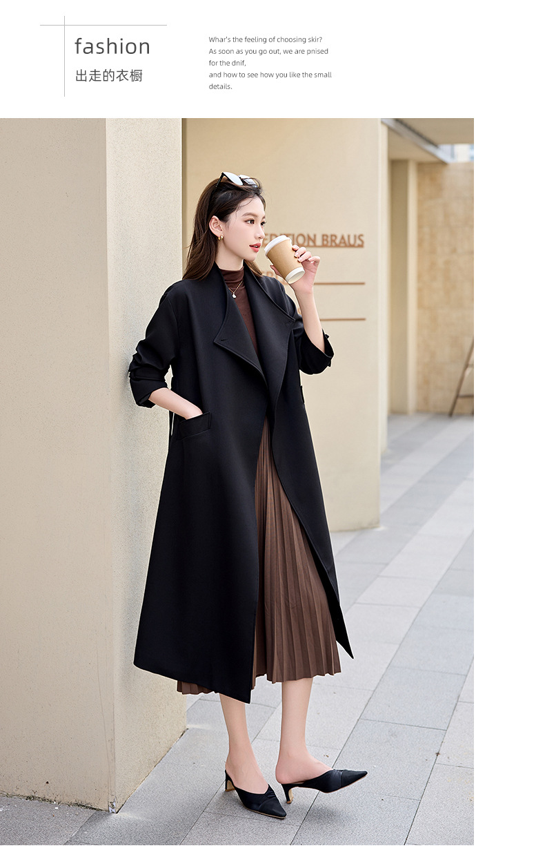 新款潮流气质英伦风中长款,高级感宽松百搭收腰系带翻领风衣KJFA1000-1