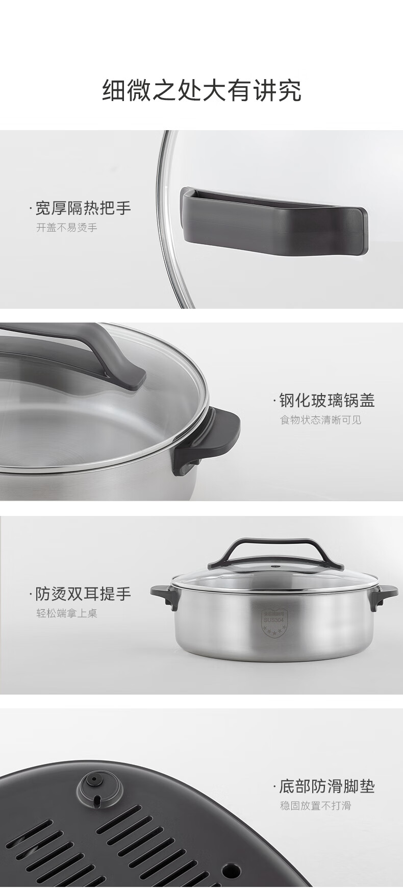 GLASSLOCK盖朗3D仿真碳火0涂层不锈钢电火锅6L
