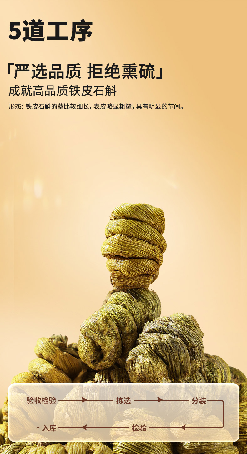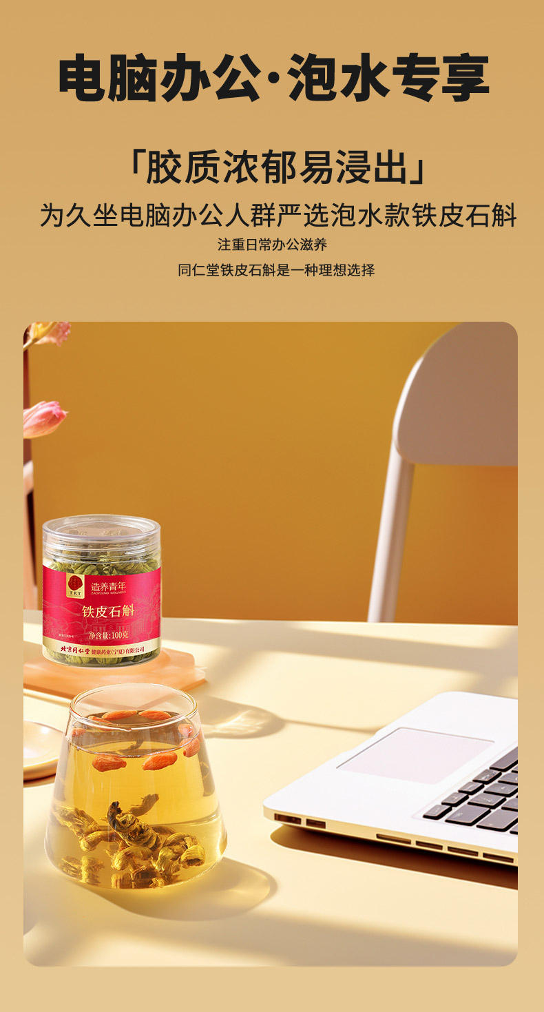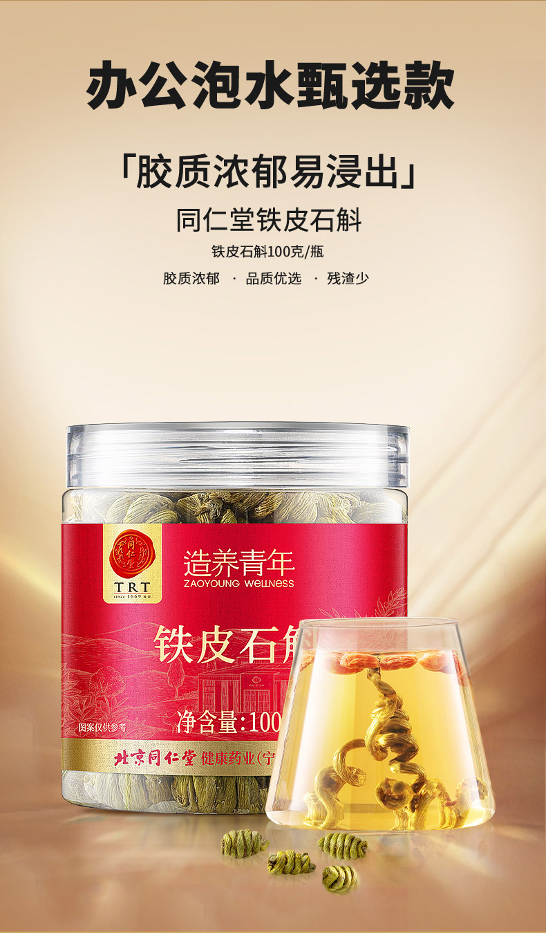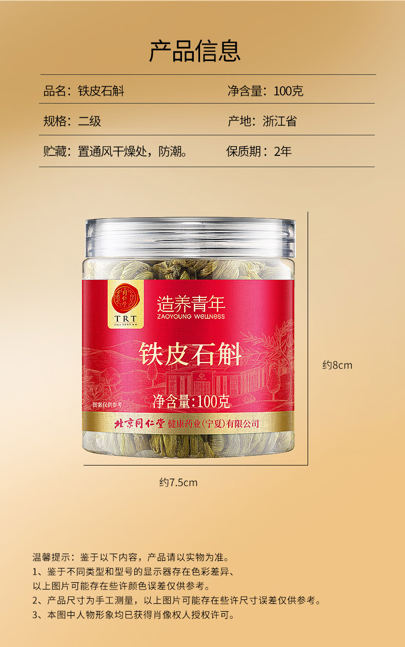 【正宗同仁堂品牌】北京同仁堂铁皮石斛100克 浙江原产 胶质浓郁 纹理清晰 色泽金黄SY