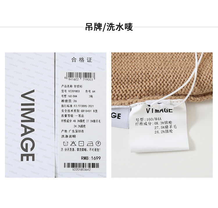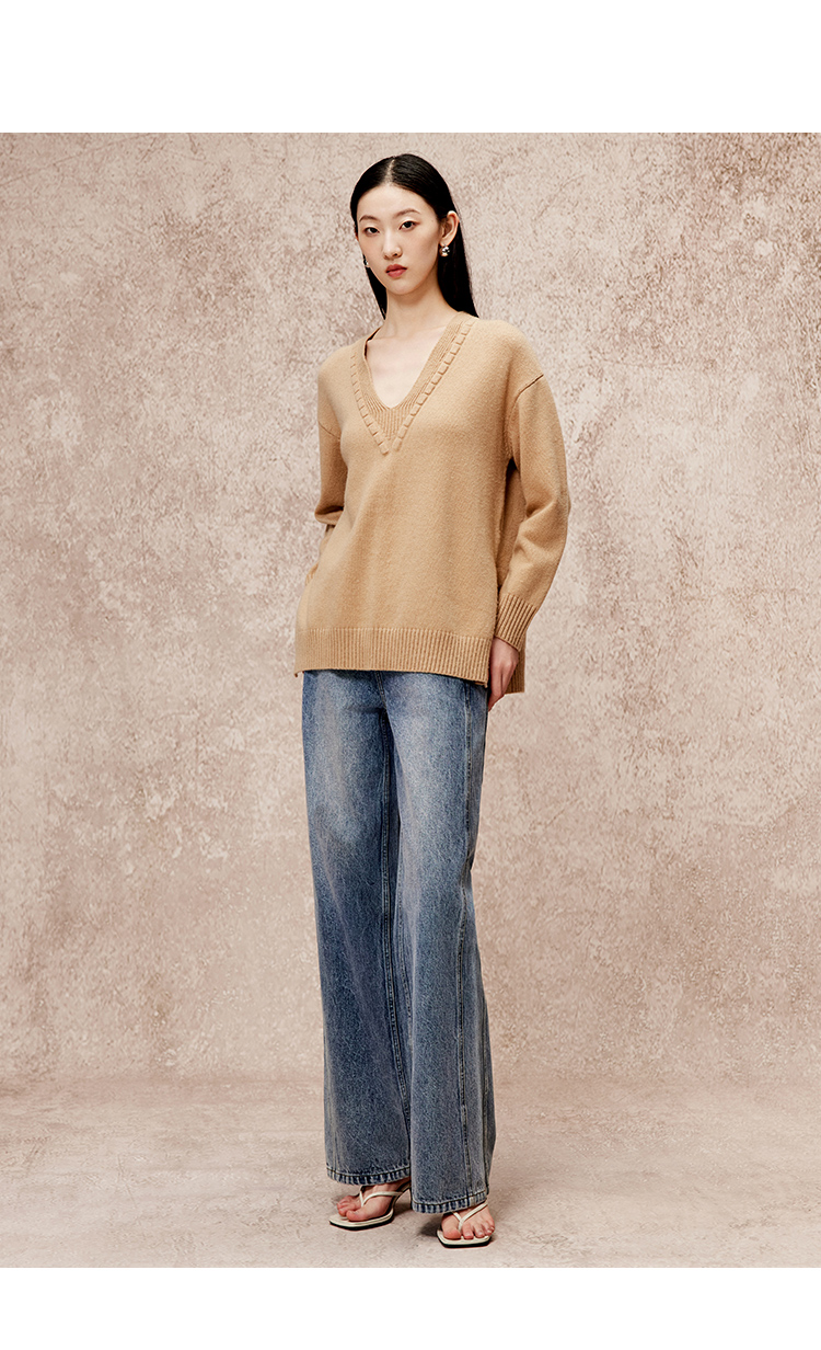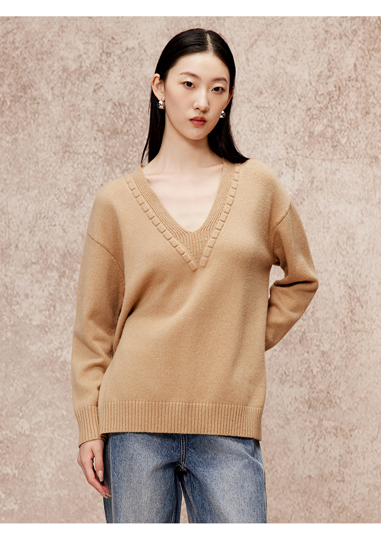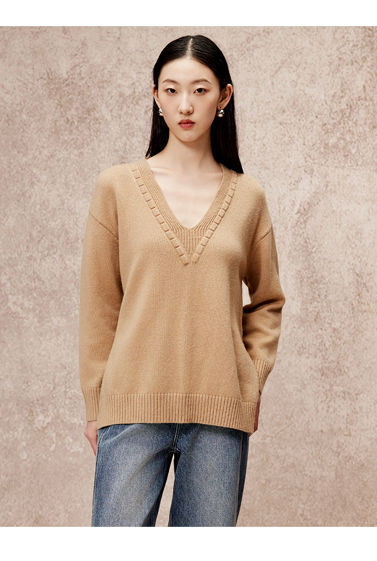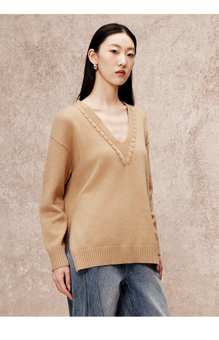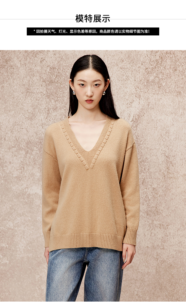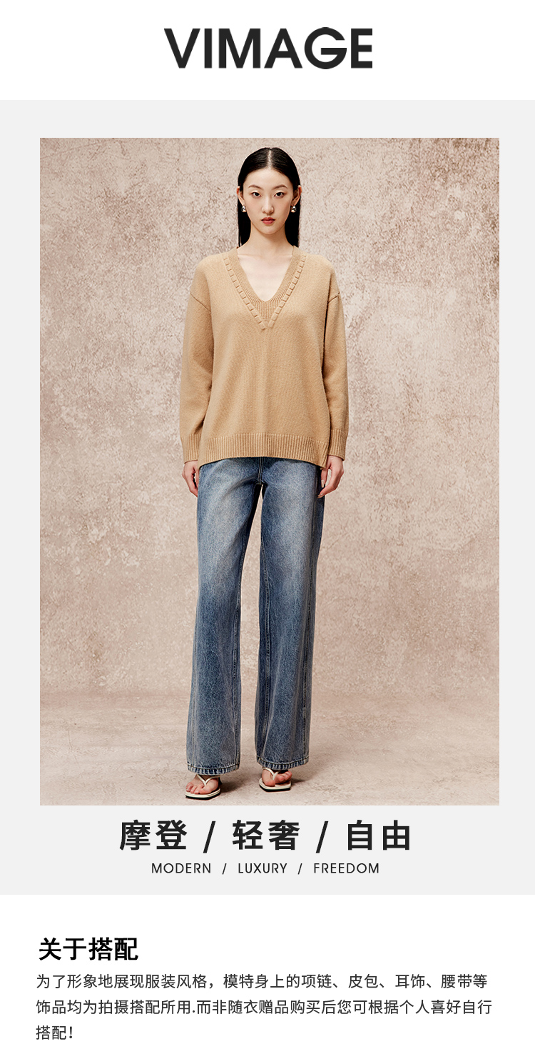 VIMAGE纬漫纪冬季新款V领慵懒风温柔宽松时尚显瘦针织衫V2201803