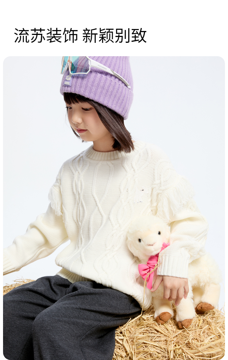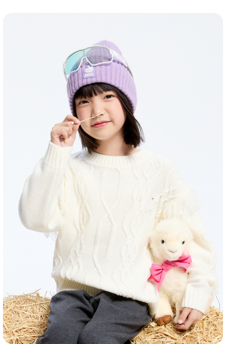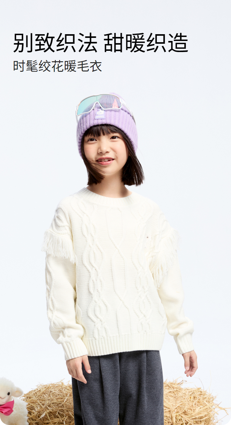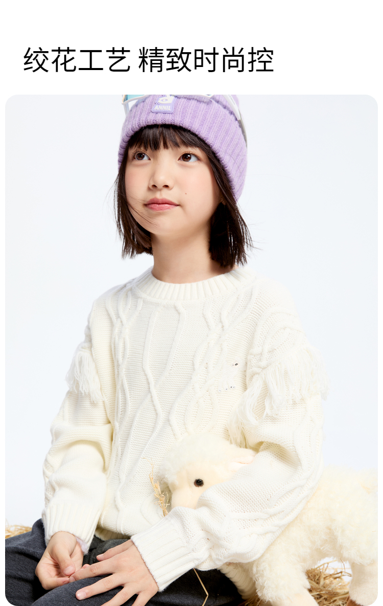 女童时髦绞花保暖毛衣冬季新款安奈儿童装实体店同款AG444626