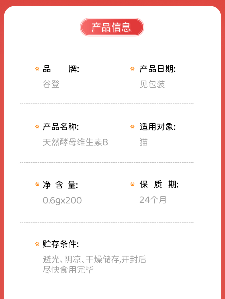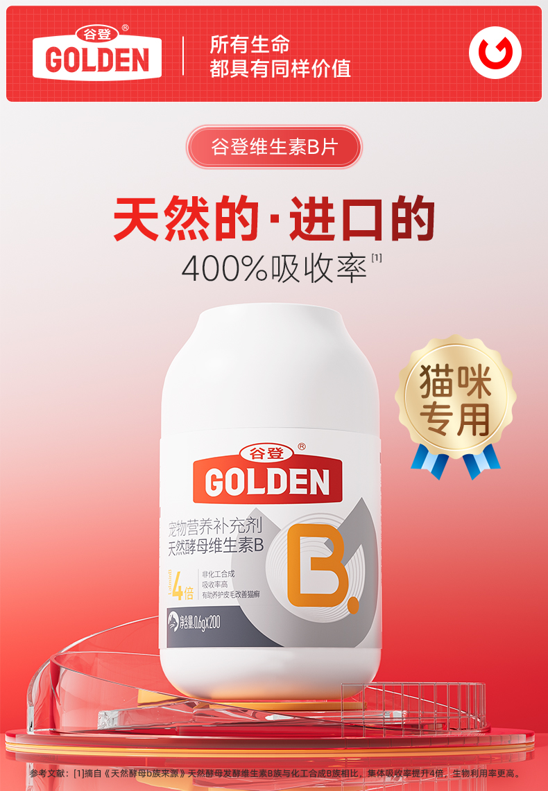 【买就送羊奶肉包1袋】谷登天然酵母维生素B片0.6g*200片(猫用)