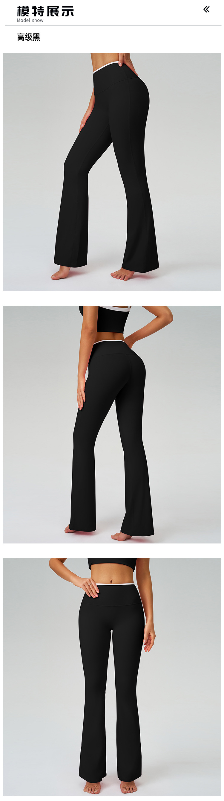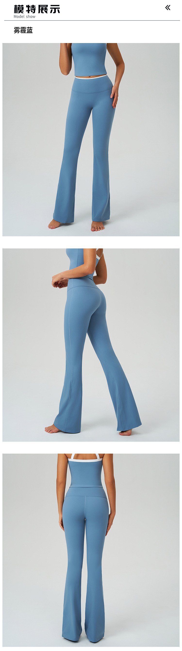 跃牌【轻匀系列】裸感运动喇叭裤撞色高腰速干阔腿长裤运动跑步健身微喇裤CK9123