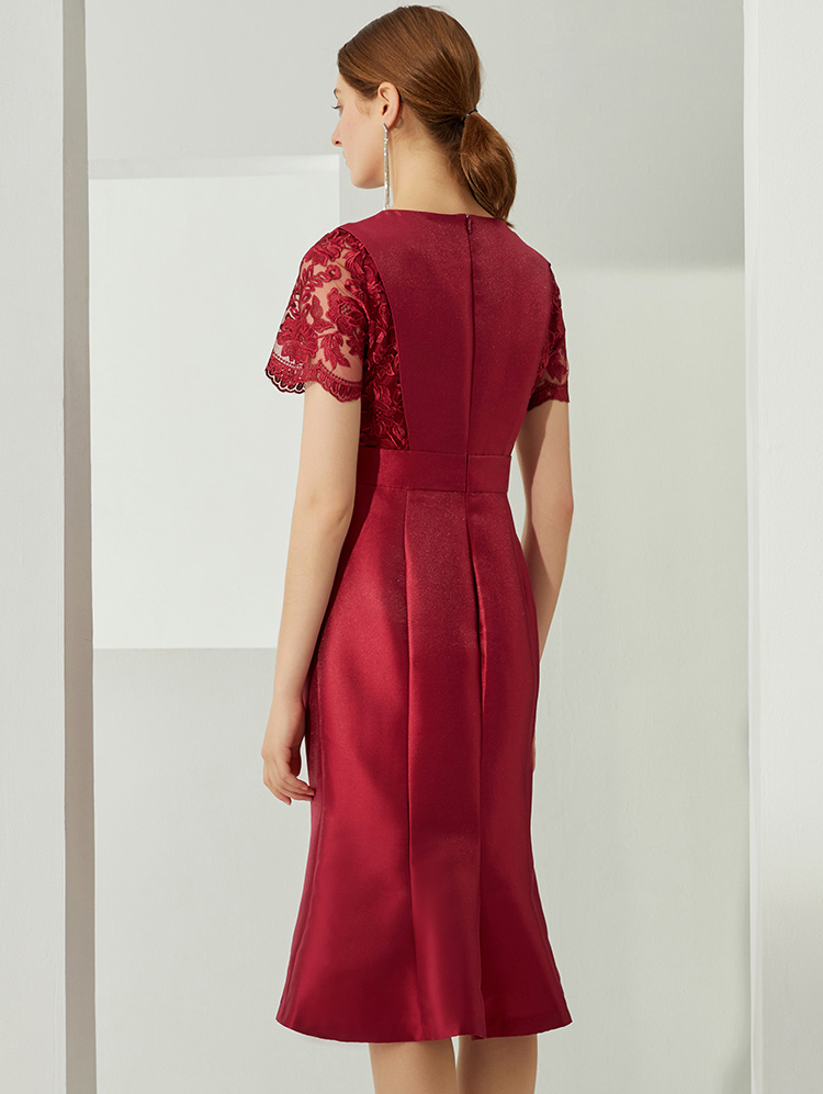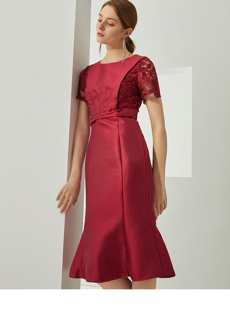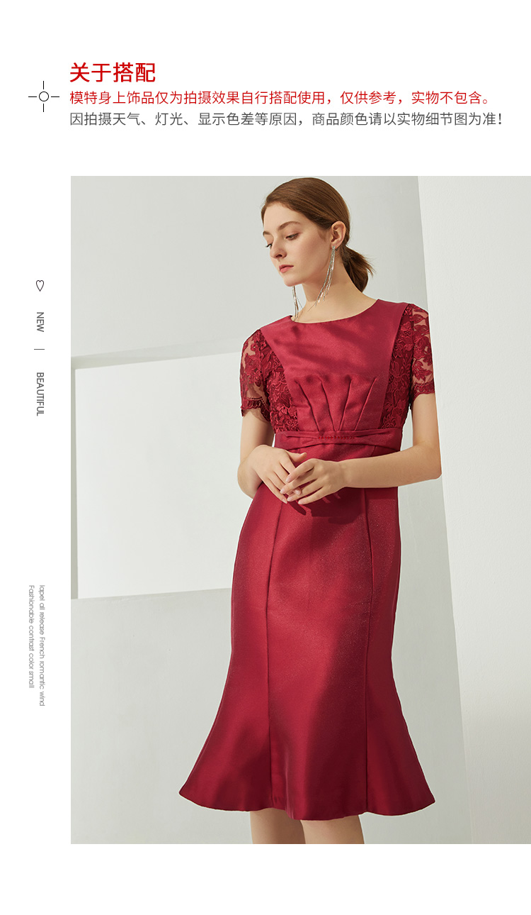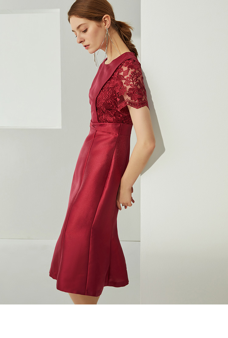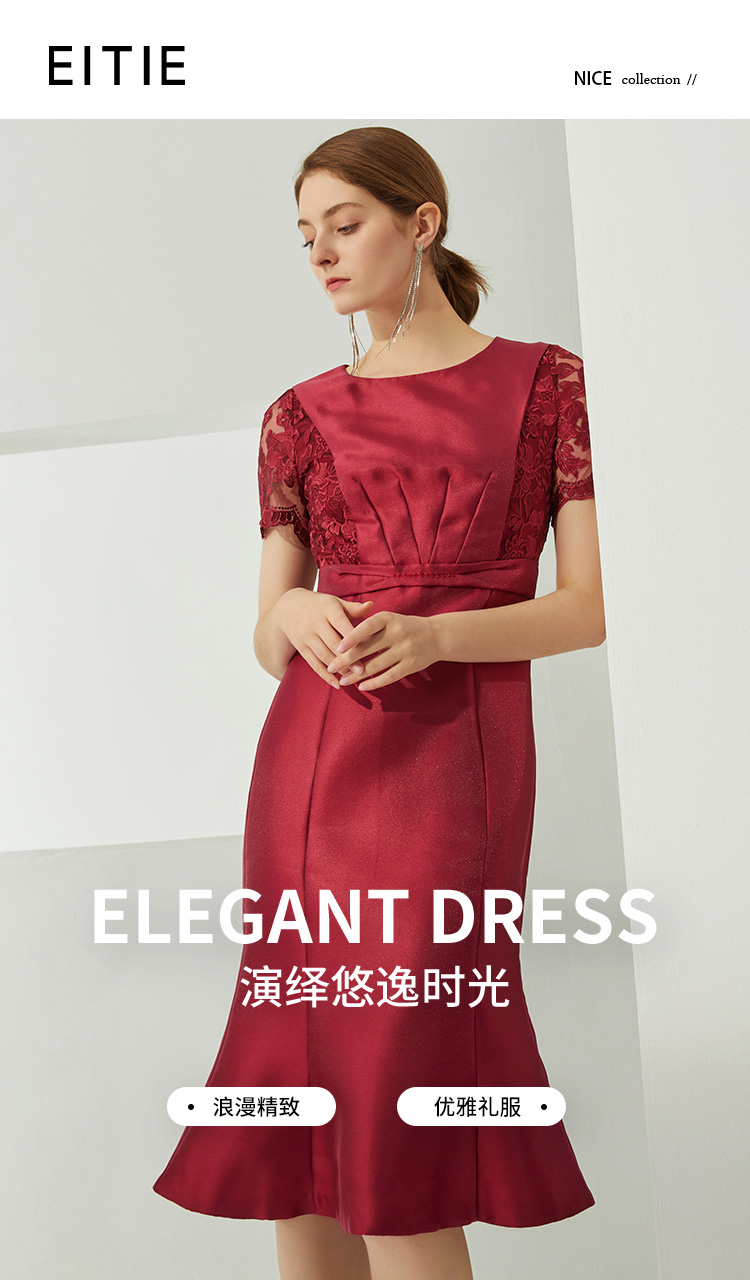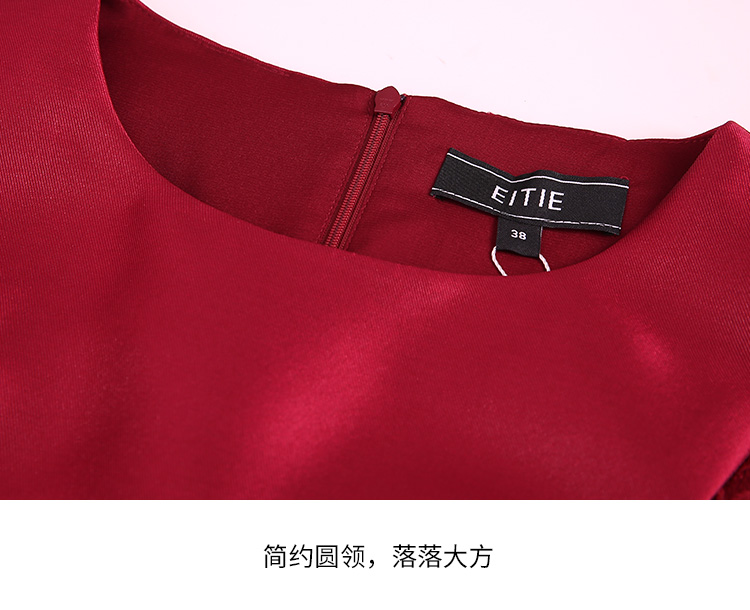 EITIE爱特爱品牌女装修身显瘦喇叭袖立领印花连衣裙中裙5807516