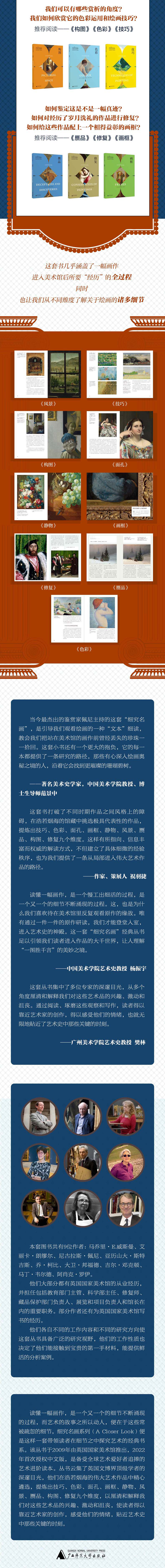 本书从罗马壁画装饰讲起,到文艺复兴时期将风景转变为传达情感和思想的媒介,再到印象派革命及之后的发展。讲述了“风景”从被当做背景,发展为一种重要的绘画主题的历程,通过馆藏名作举例说明了不同时期、不同画家、不同流派风景画的创作特点,此外还阐明了真实风景中的“光学”效应及其表现形式。