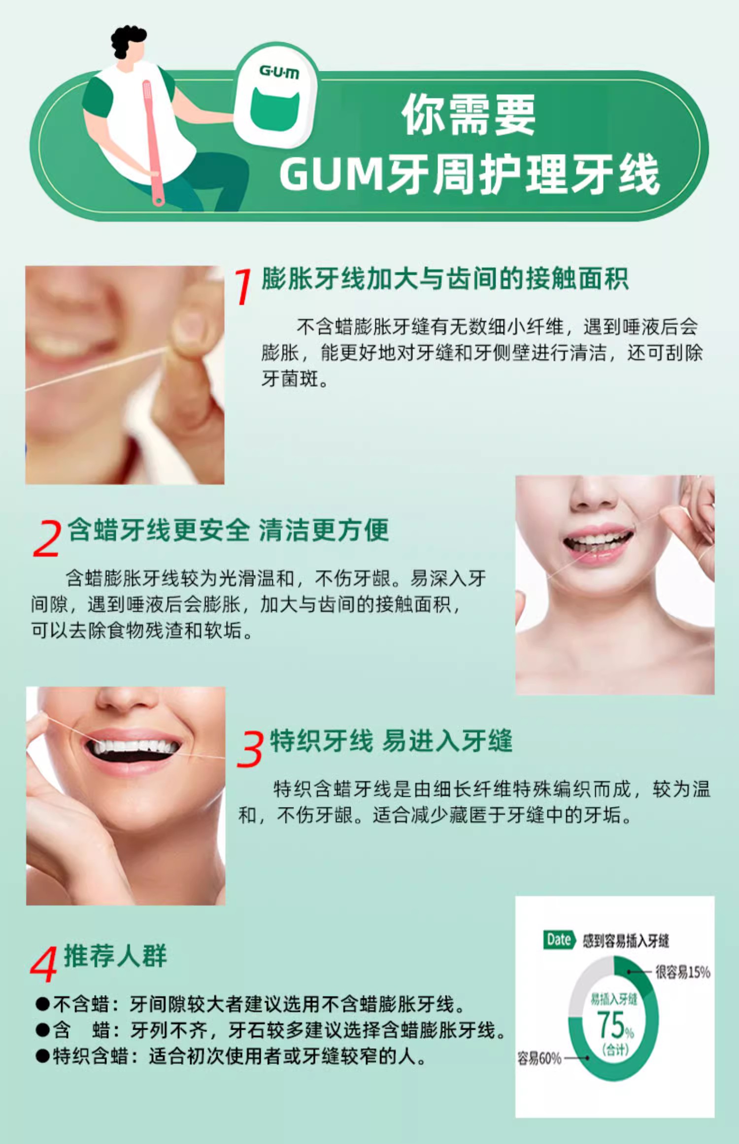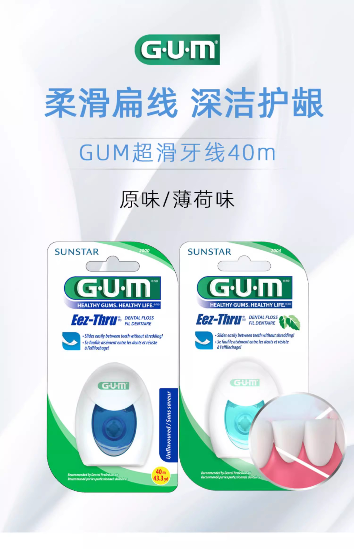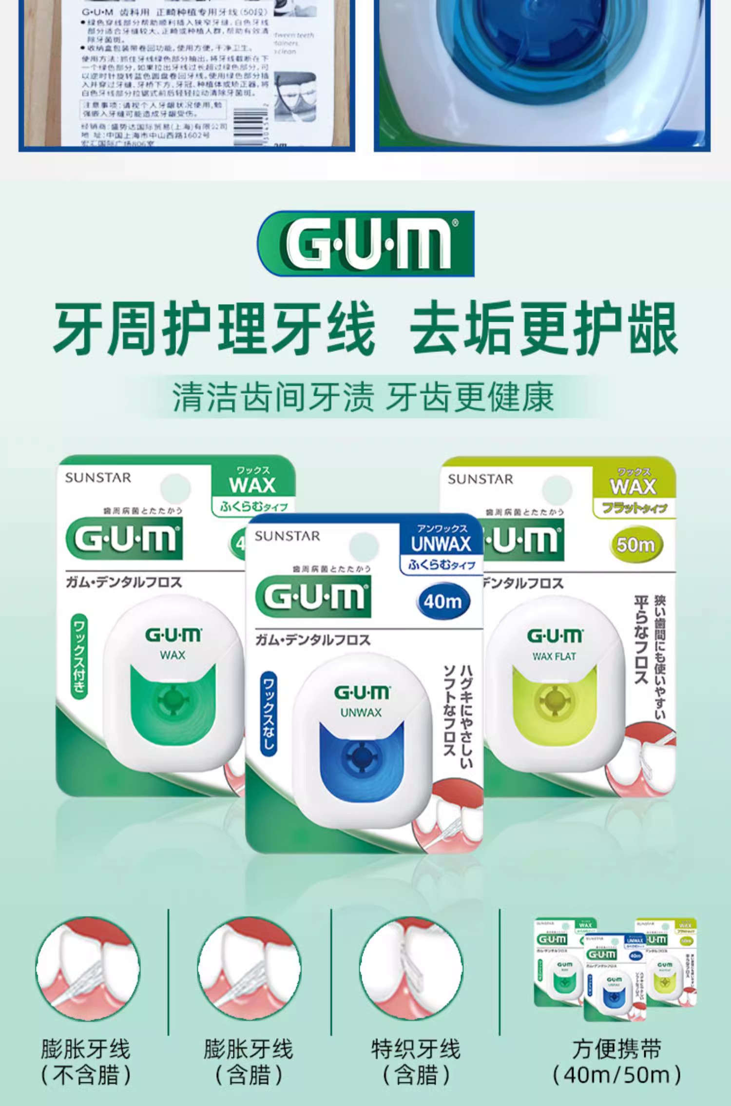 【品牌直发】进口GUM康齿家牙线含蜡/无蜡超滑牙线-膨胀牙线-齿科正畸牙线/桥体种植牙线