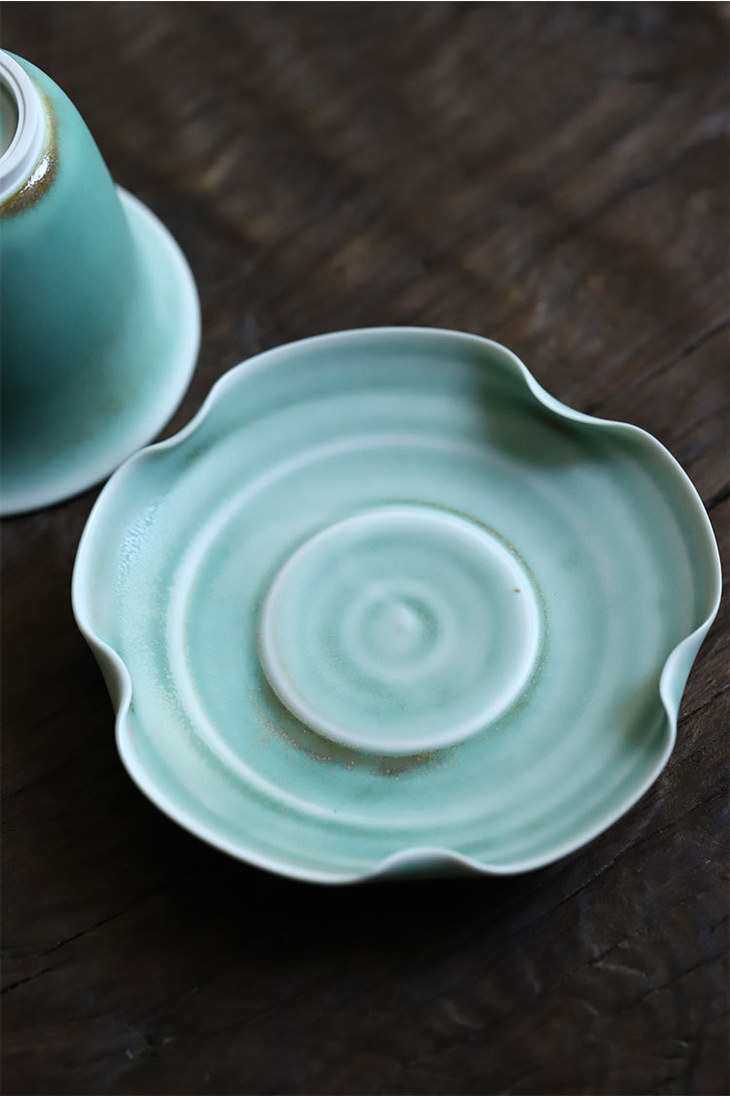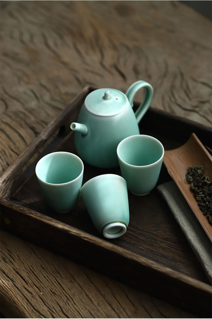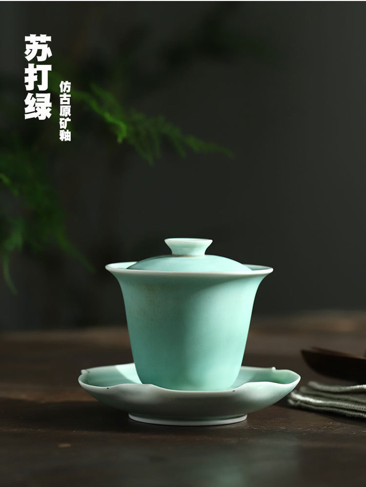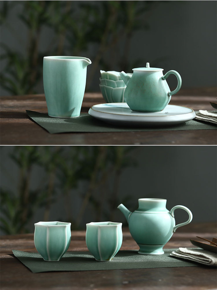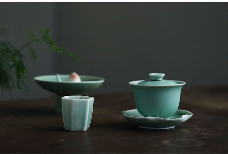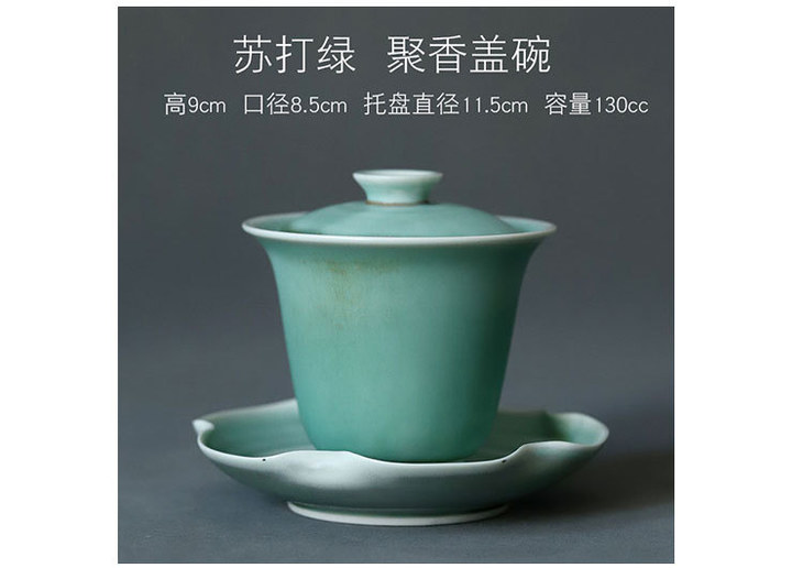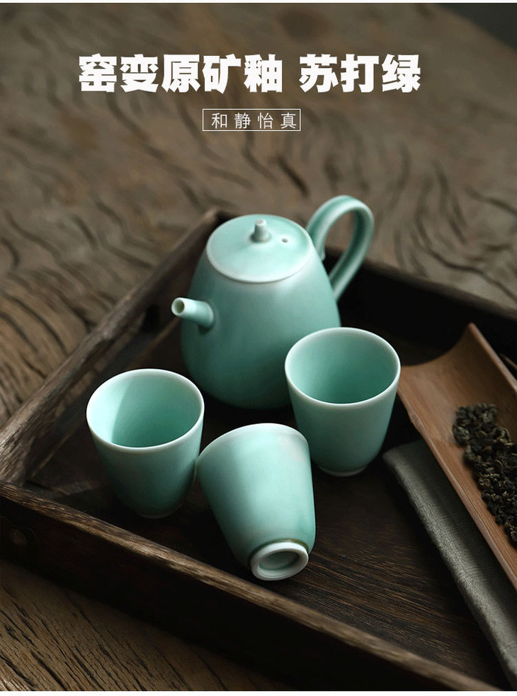 「景德镇窑变釉苏打绿」闲叙聚香盖碗 僧帽公道杯 主人杯 汉驿壶 秦权壶 薄胎白瓷盖碗开片可养