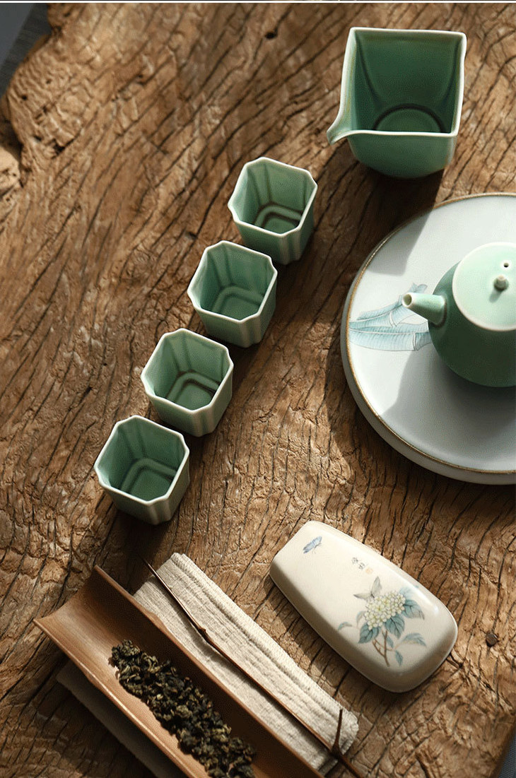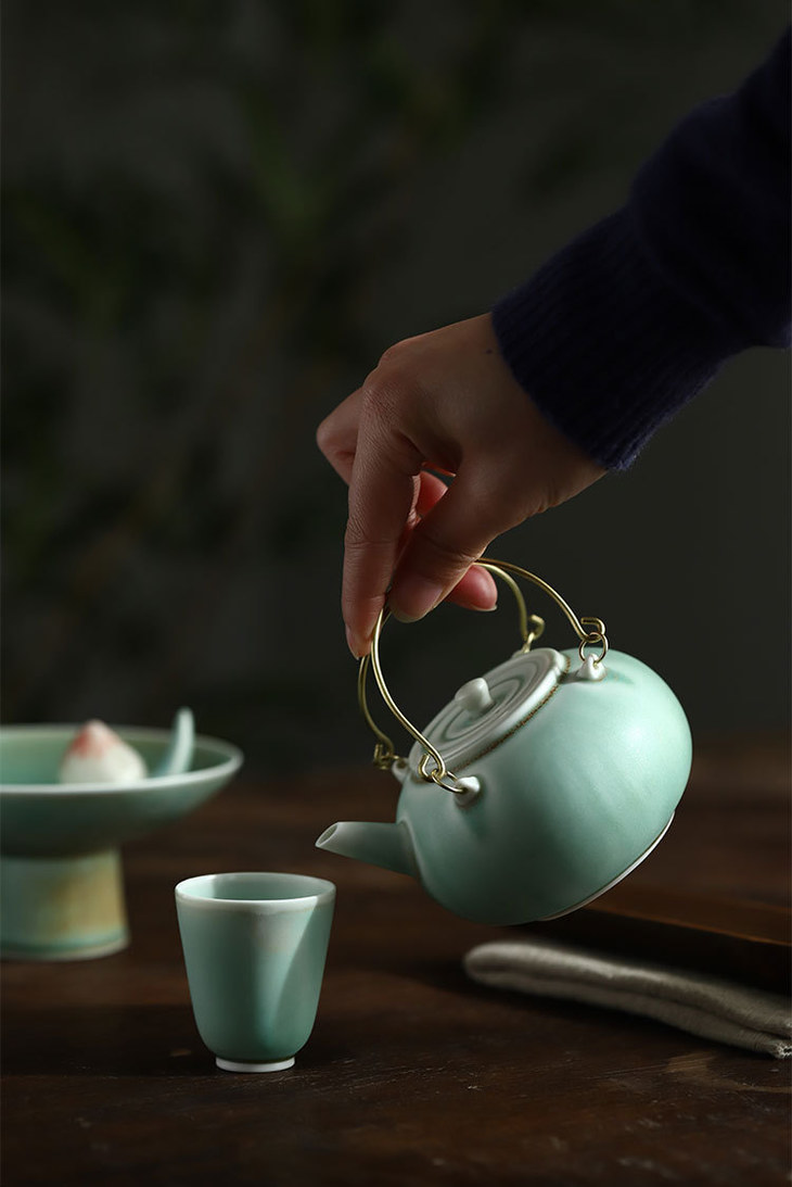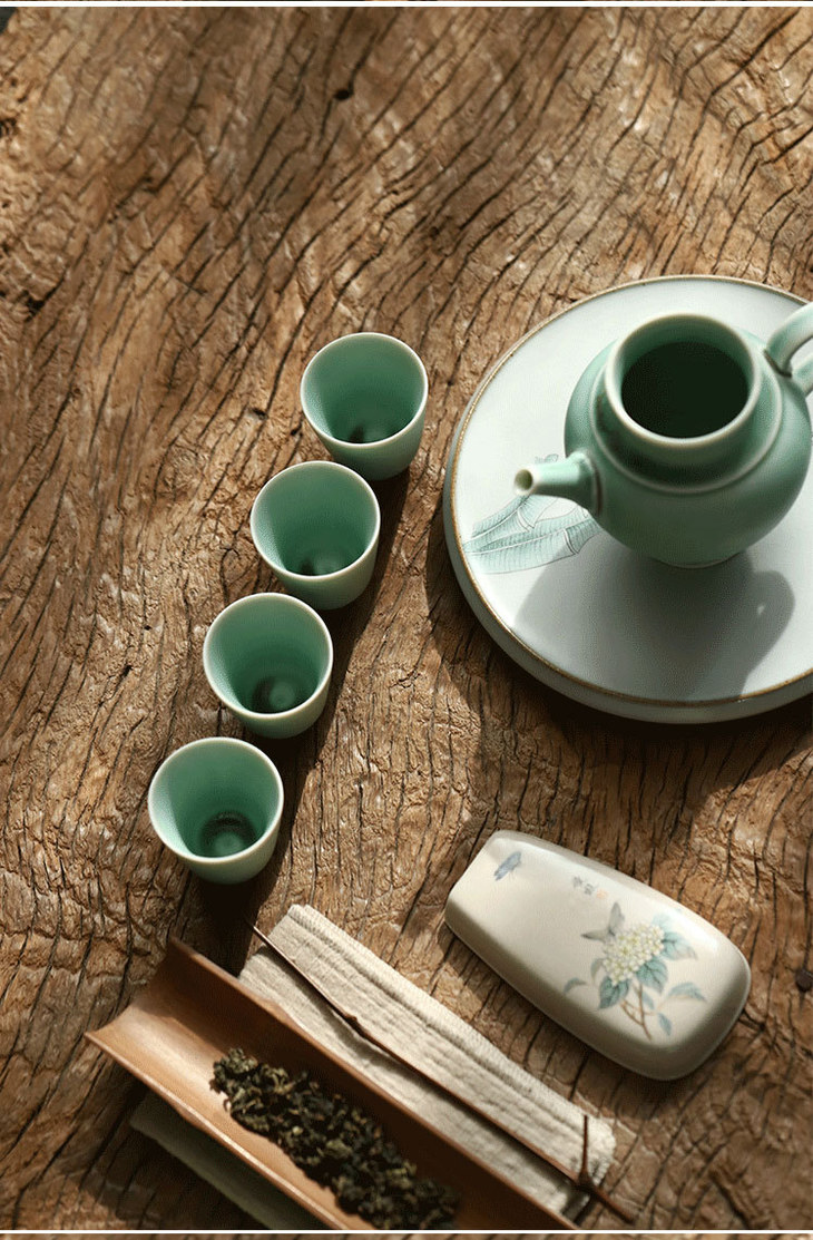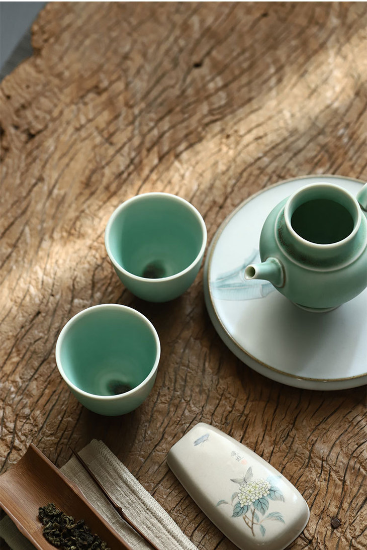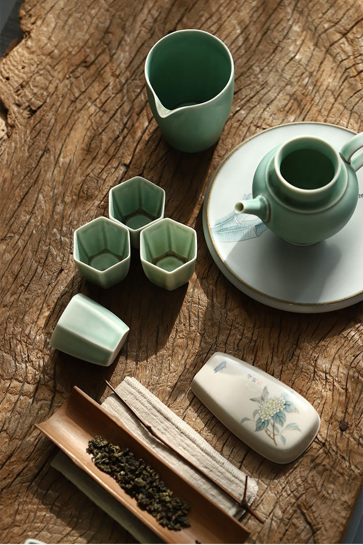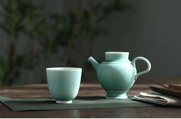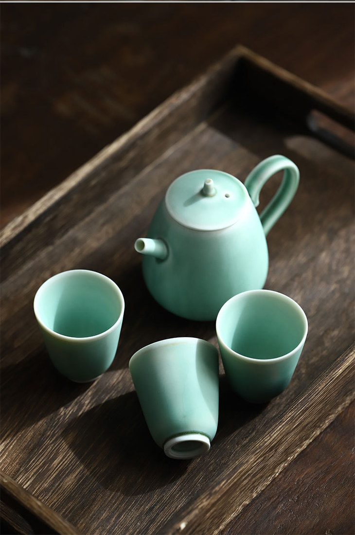 「景德镇窑变釉苏打绿」闲叙聚香盖碗 僧帽公道杯 主人杯 汉驿壶 秦权壶 薄胎白瓷盖碗开片可养