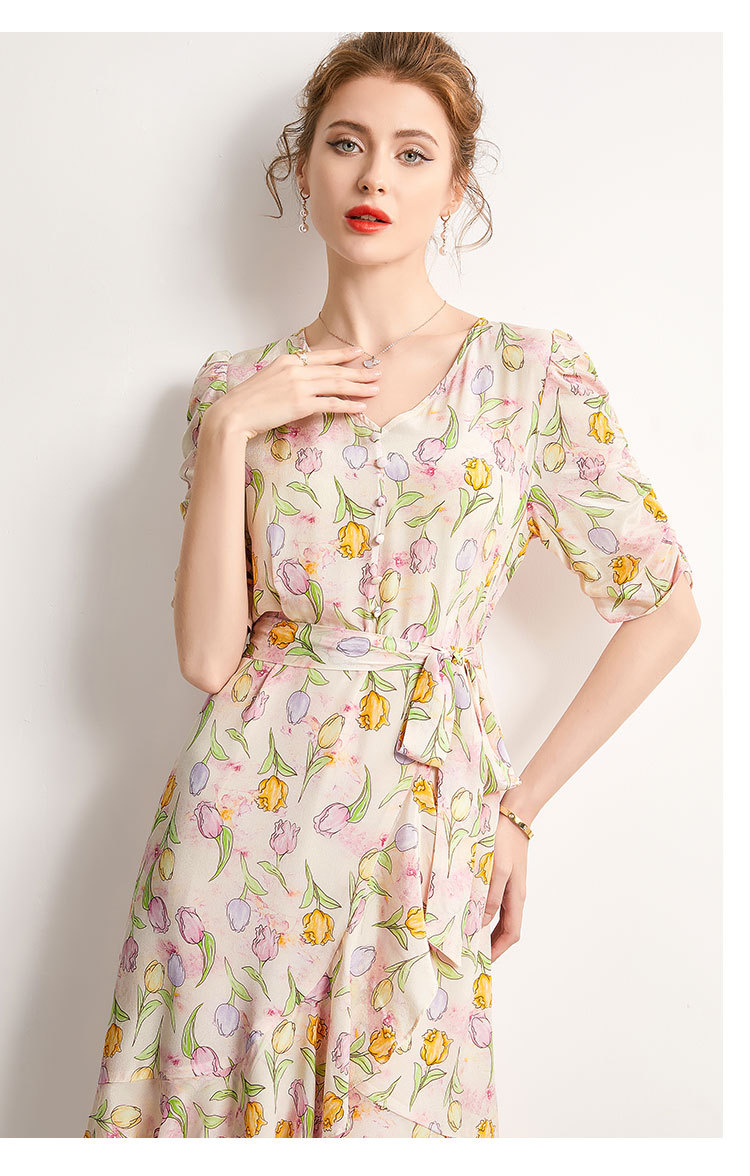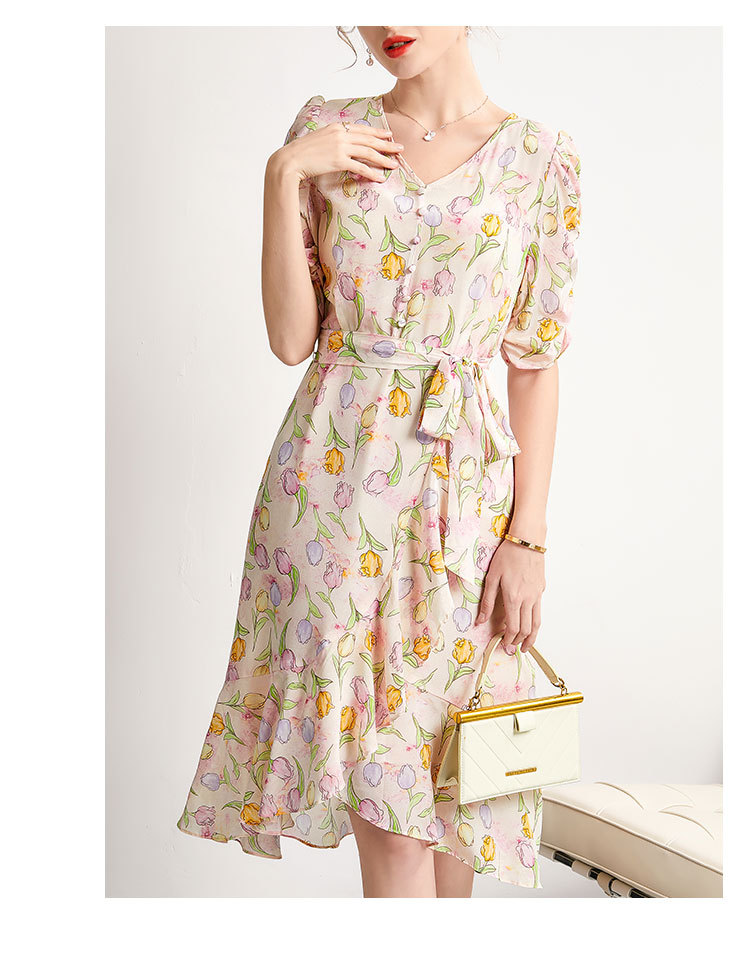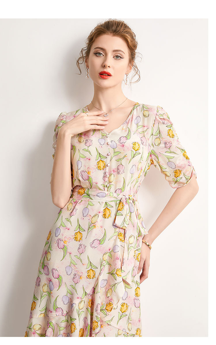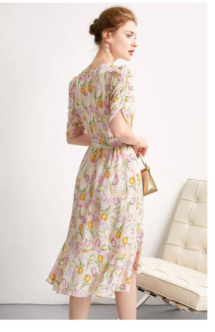 「高货kbnq」全新升级【铂金会员441/天猫599/差价158】(14324)洛诗琳新款法式优雅印花真丝裙2025夏季收腰显瘦连衣裙