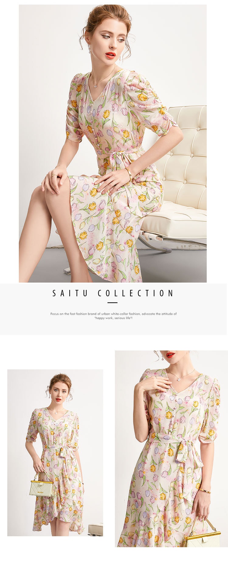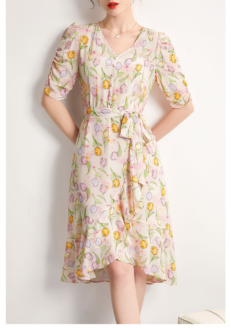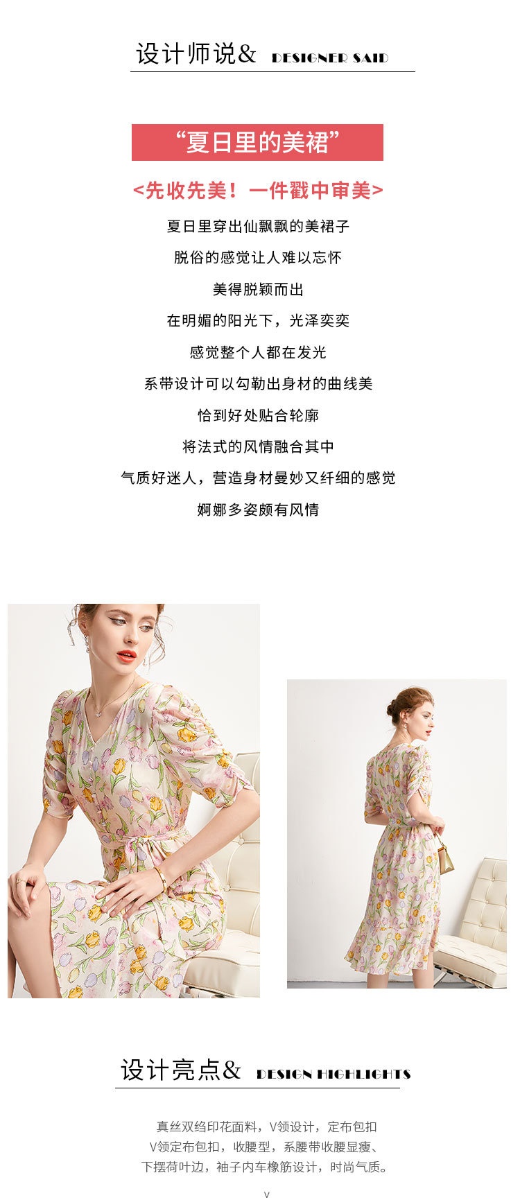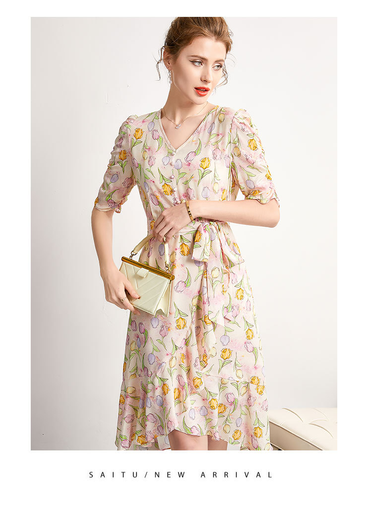 「高货kbnq」全新升级【铂金会员441/天猫599/差价158】(14324)洛诗琳新款法式优雅印花真丝裙2025夏季收腰显瘦连衣裙