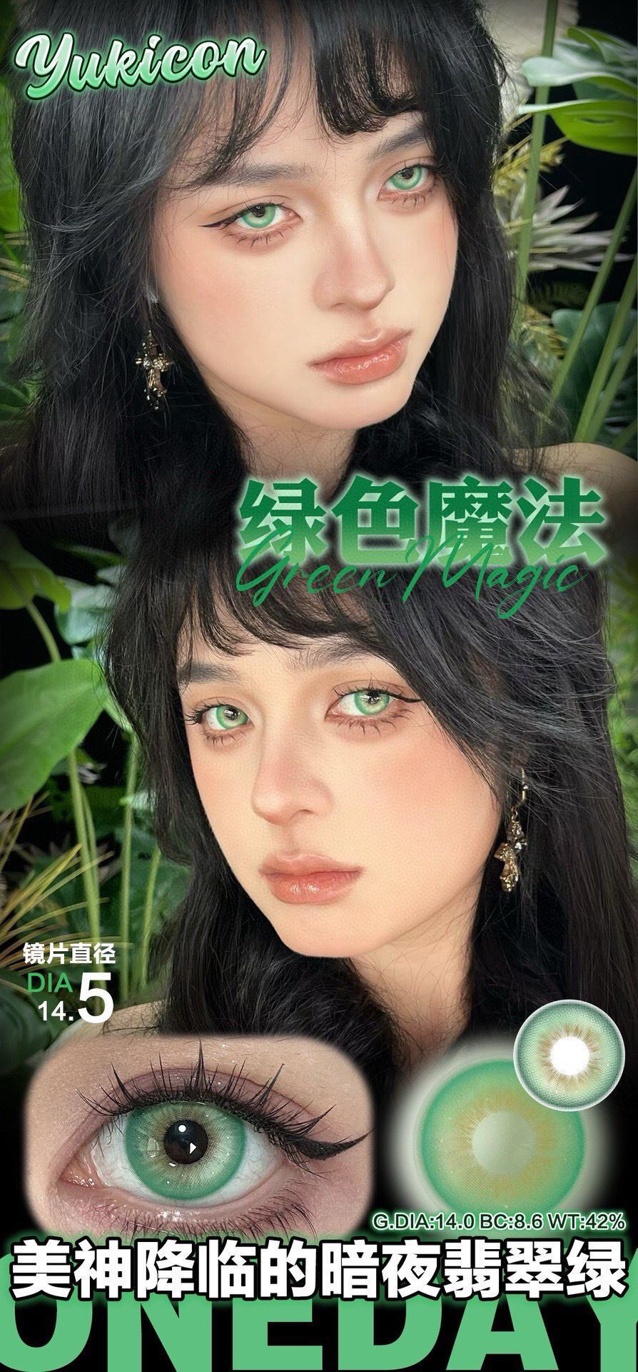 Yukicon日抛隐形眼镜 血腥玛丽/冰蓝梦境/绿色魔法 1盒/2片