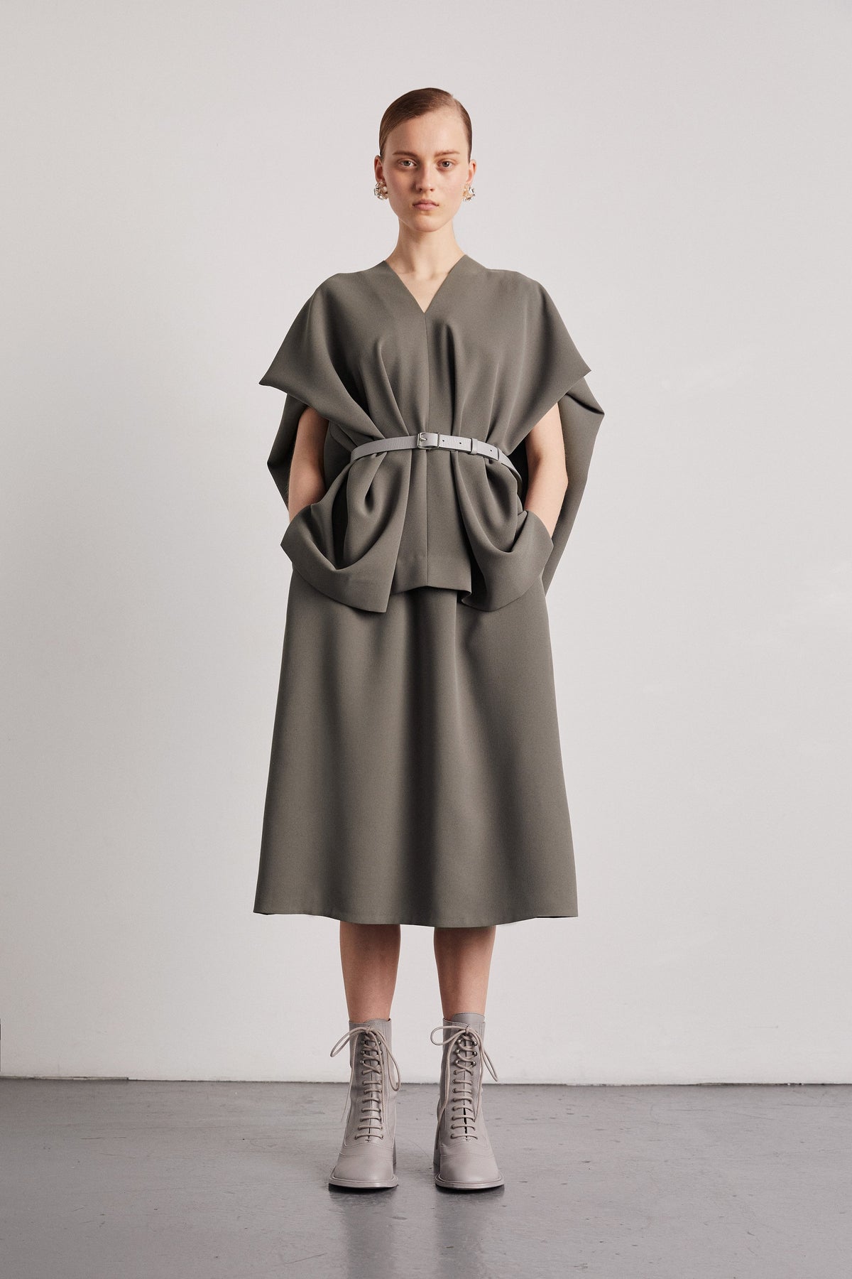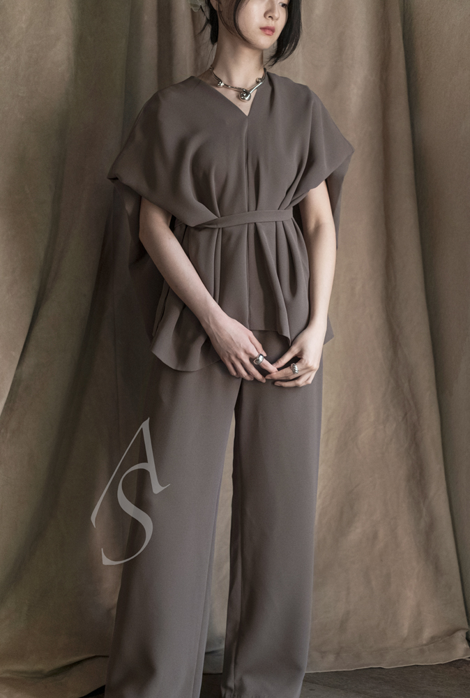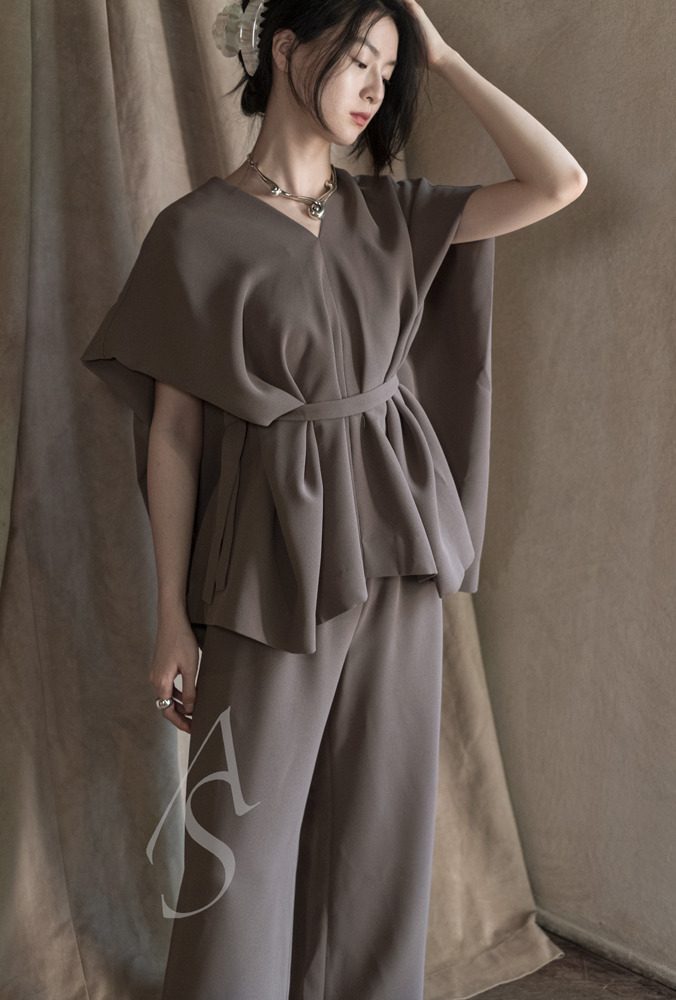 Mark Kenly Domino Tan 冷灰色/黑色BESS V领无袖宽松系带上衣