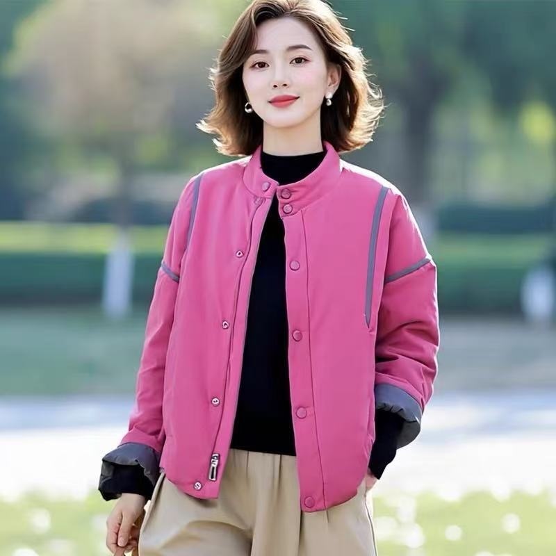 2025秋冬季时尚百搭休闲宽松立领女韩版小棉袄时尚百搭加绒棉服