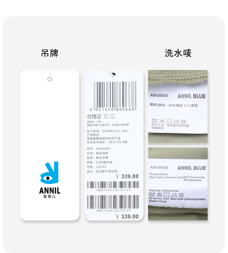 男童弹力运动裤中裤BLUE新款安奈儿童装实体店同款AB426665
