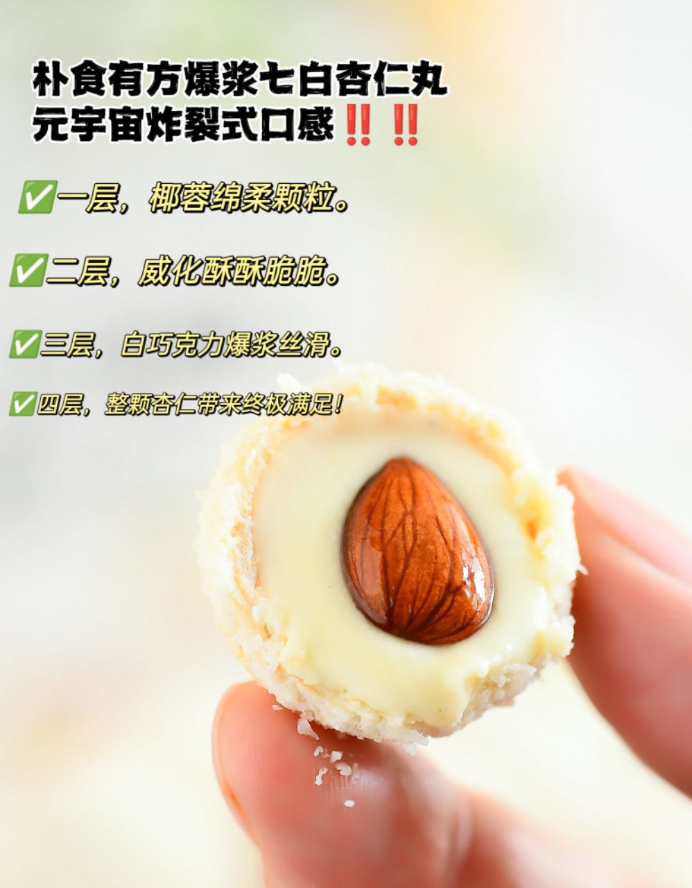 七白爆浆杏仁丸,元宇宙炸裂的口感!