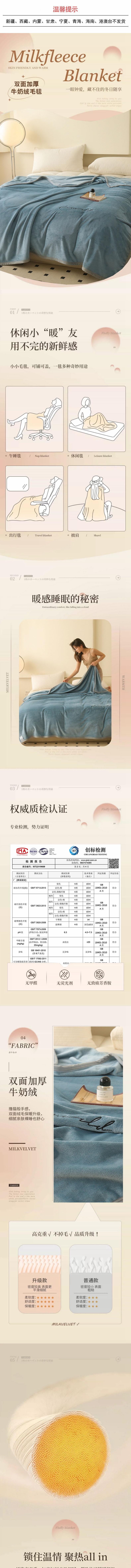 俞兆林 纯色绣花牛奶绒毛毯2米灰蓝 YZL-24099