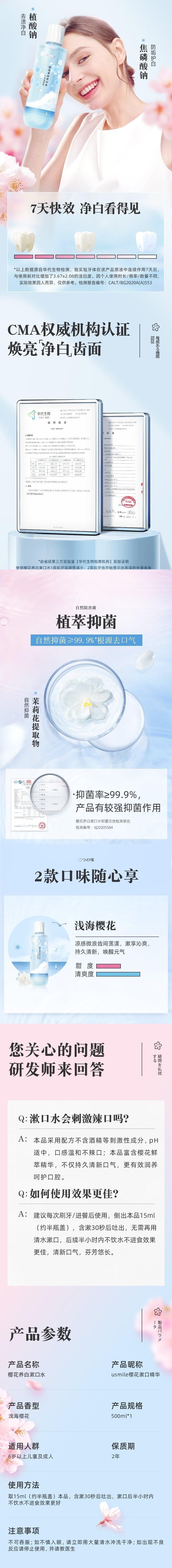 usmile 樱花养白漱口水(浅海)500ml 6970411753311 (新疆,西藏、青海、甘肃、宁夏、内蒙等偏远地区不发货)