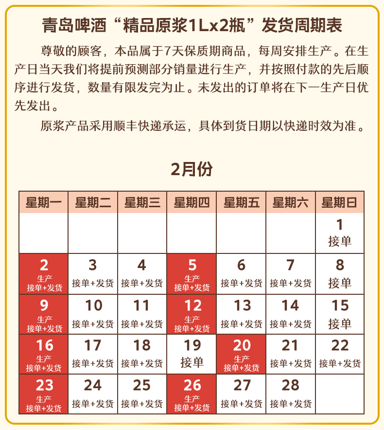 青岛啤酒7天精品原浆1L*2桶