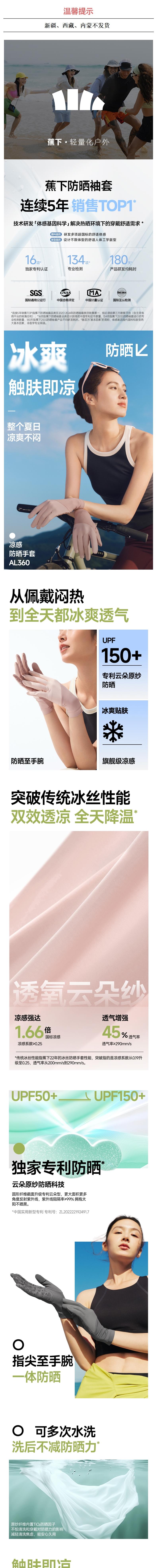 蕉下 凉感防晒手套 AL360