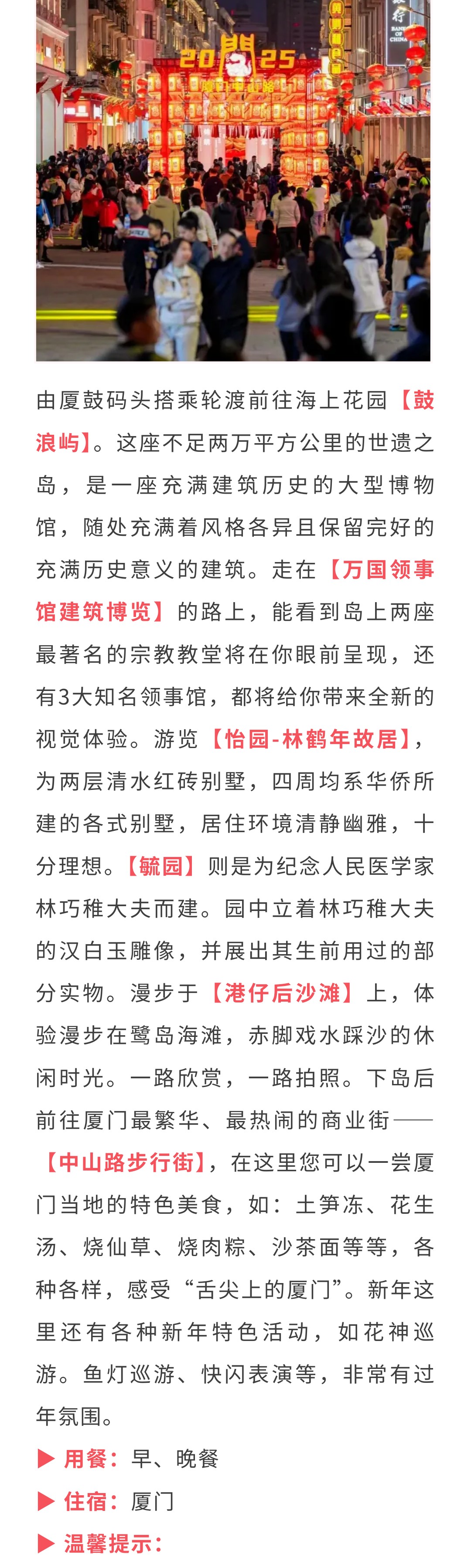 【春节团】相约厦门过大年,鼓浪屿寻琴韵,团圆迎新春!
