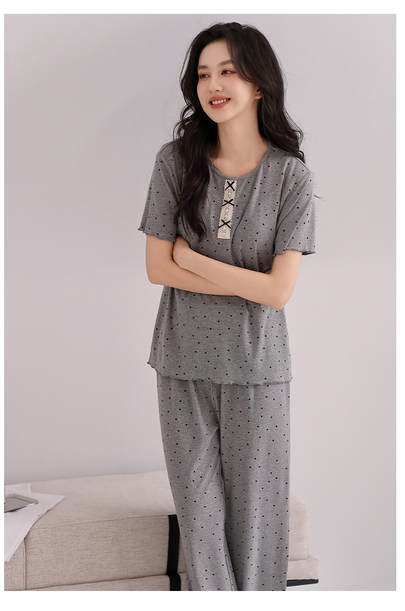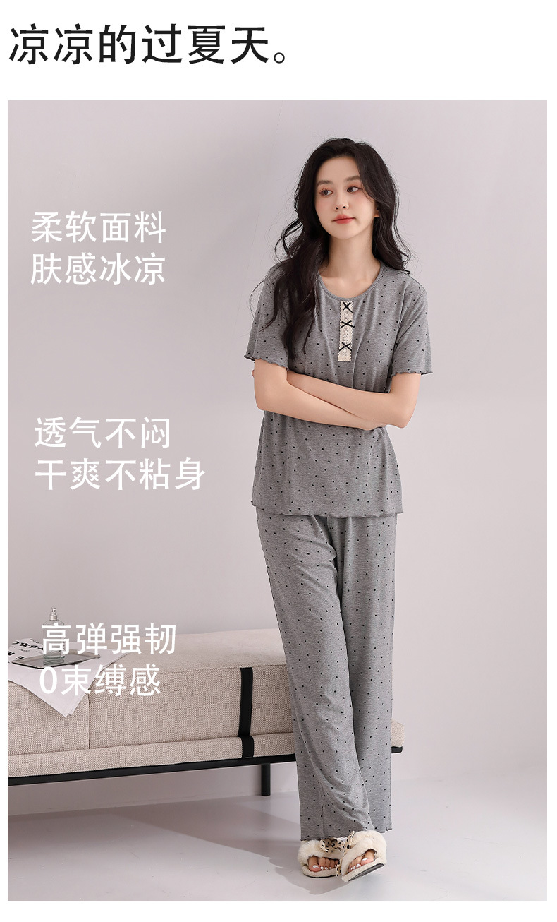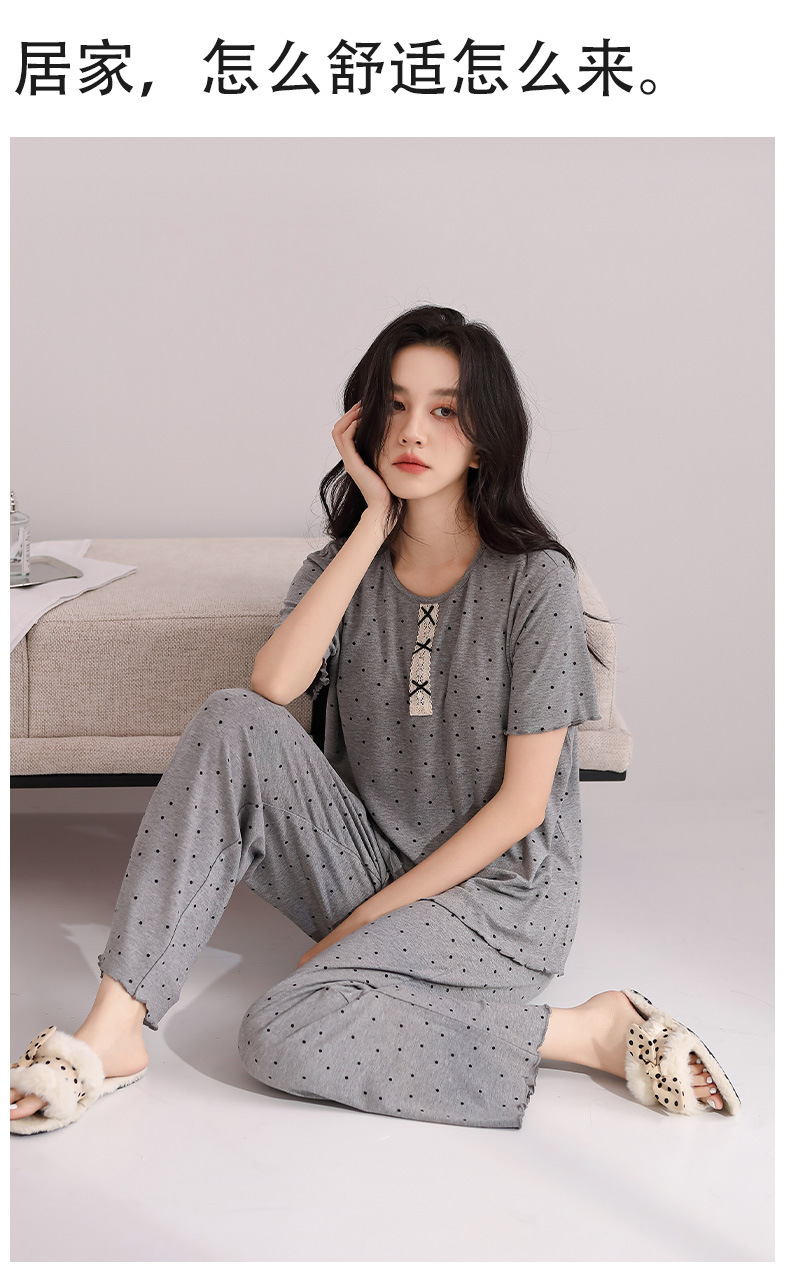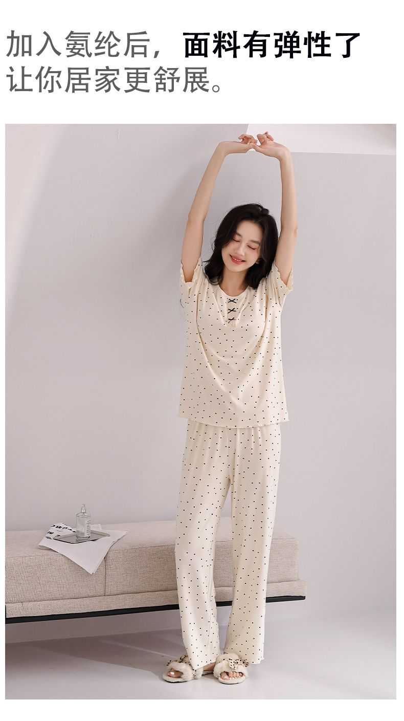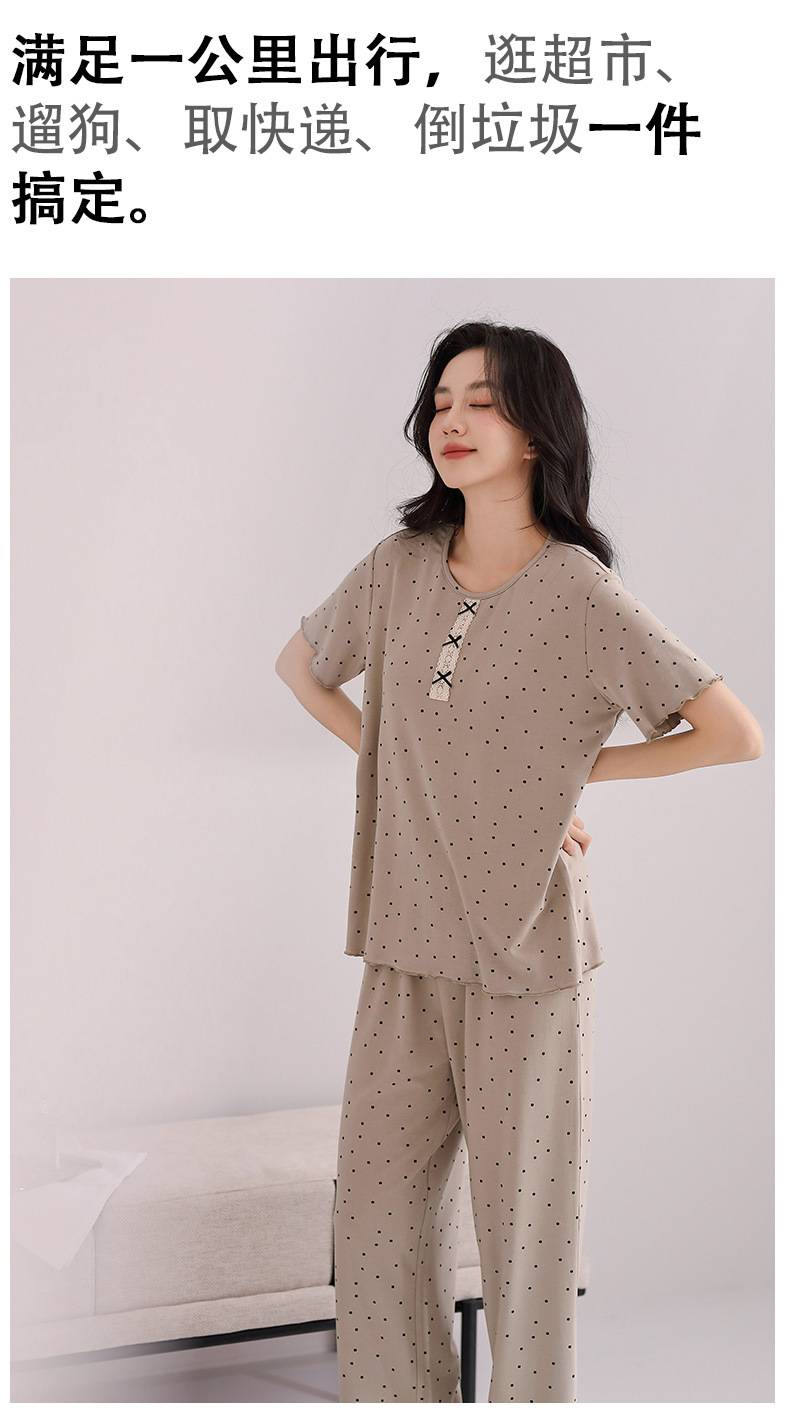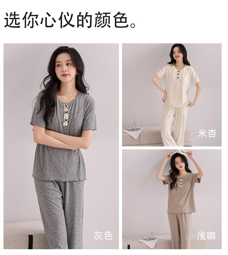 雀说睡衣女短袖长裤套装新款时尚波点套头睡衣女套装可外穿家居服女AL88610