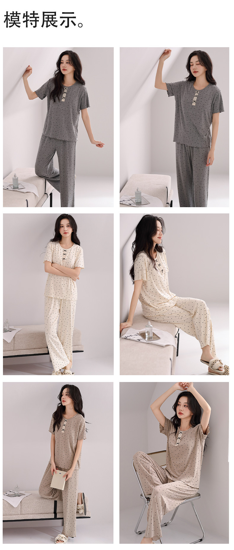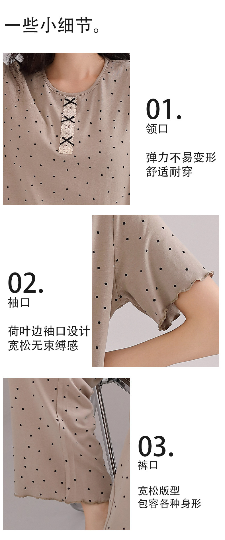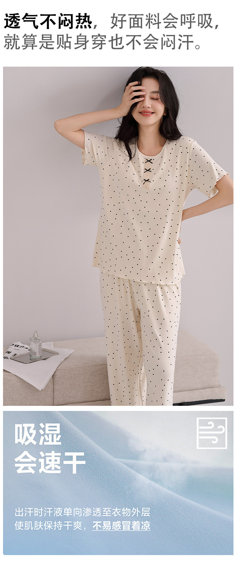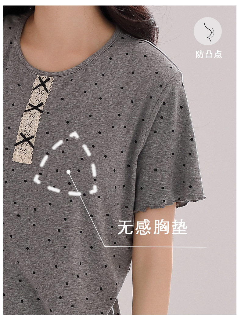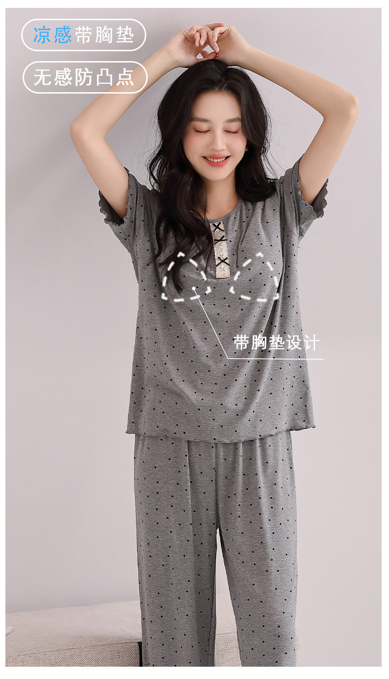 雀说睡衣女短袖长裤套装新款时尚波点套头睡衣女套装可外穿家居服女AL88610