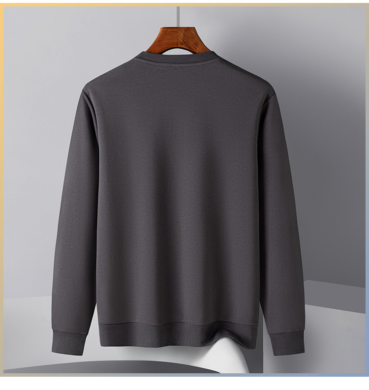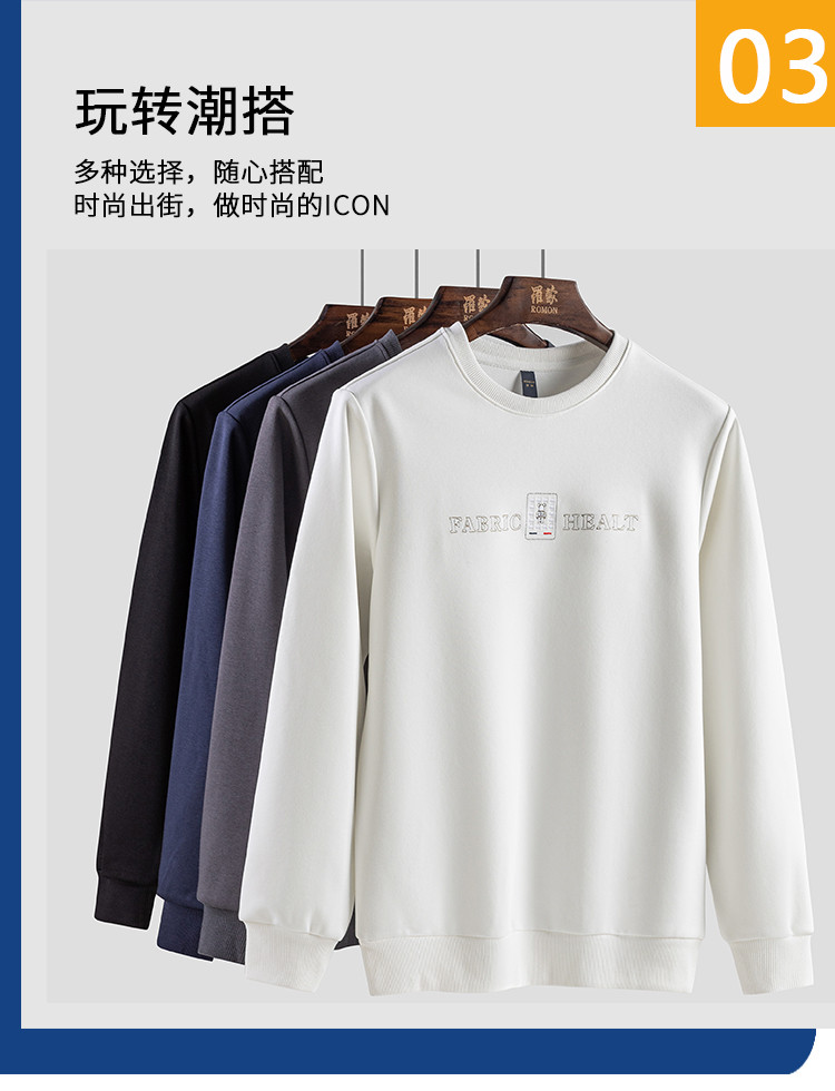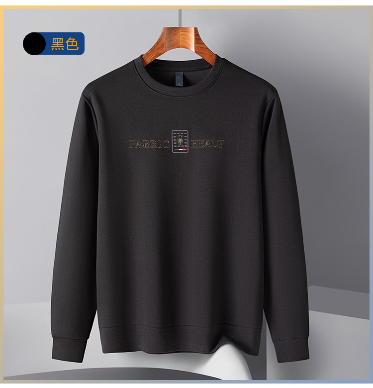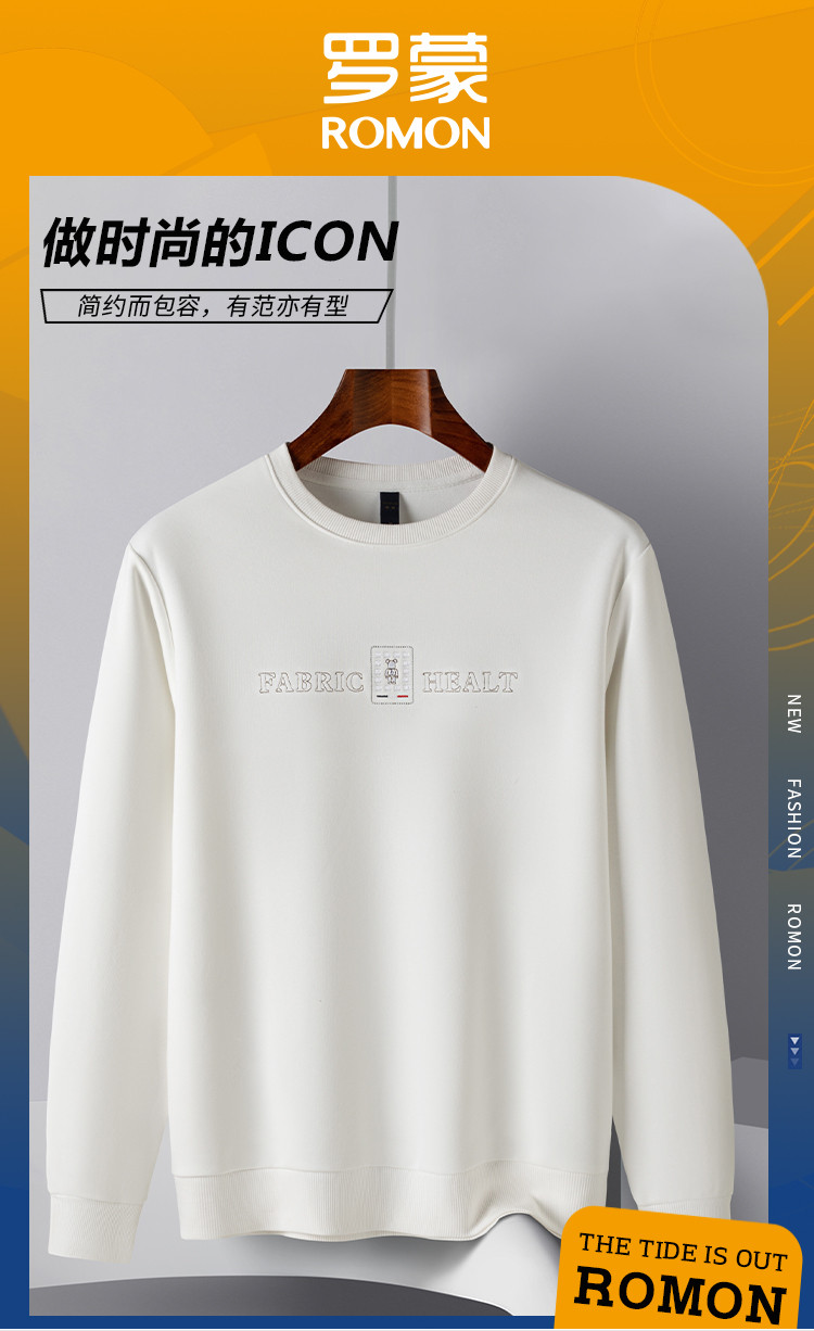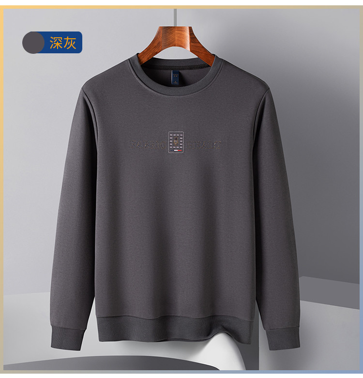 【桑蚕丝混纺】罗蒙春秋男装胸花字终绣花卫衣男士舒适休闲百搭圆领长袖T恤上衣男