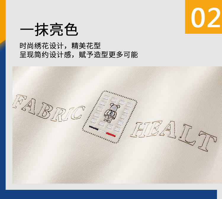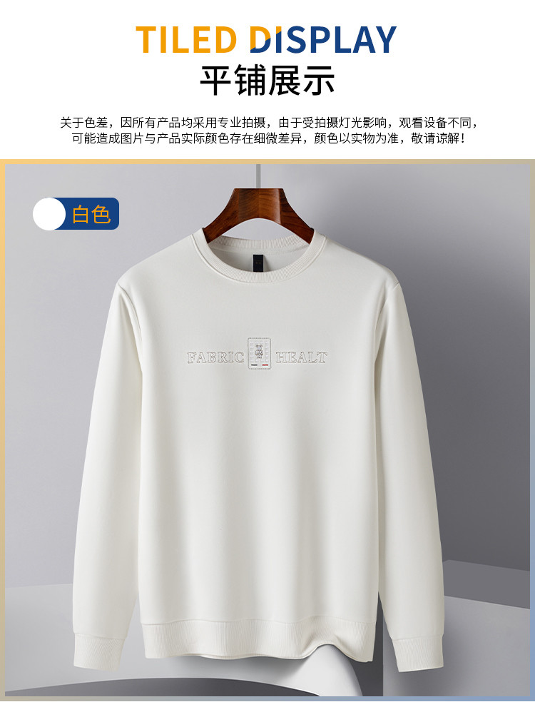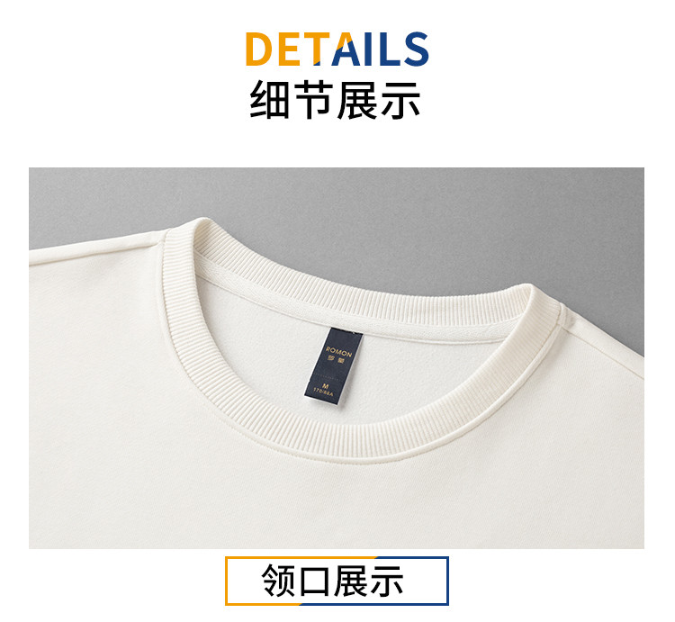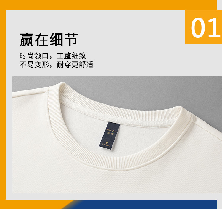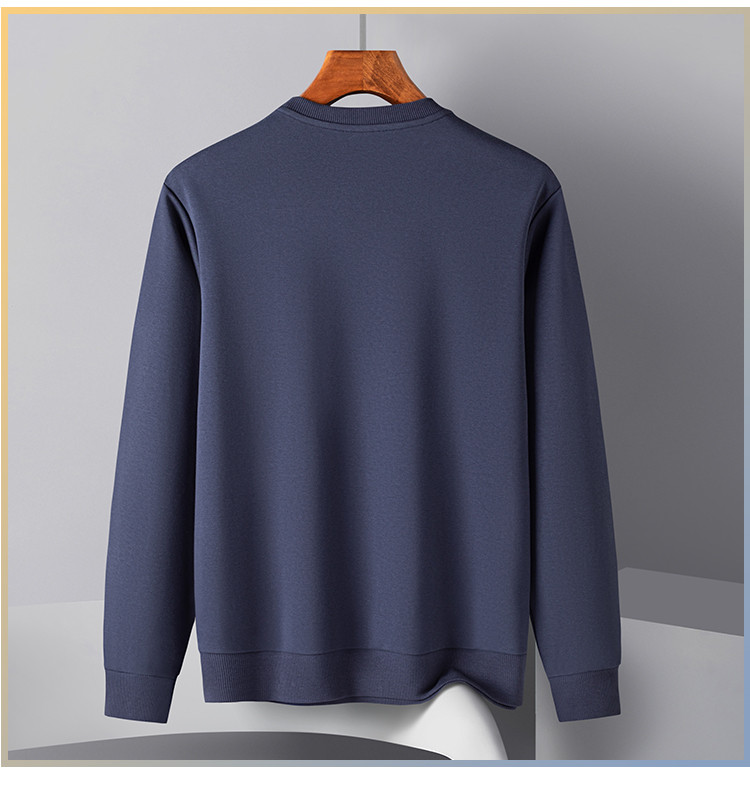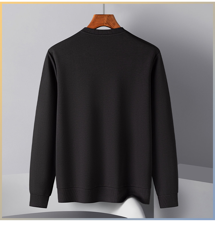 【桑蚕丝混纺】罗蒙春秋男装胸花字终绣花卫衣男士舒适休闲百搭圆领长袖T恤上衣男